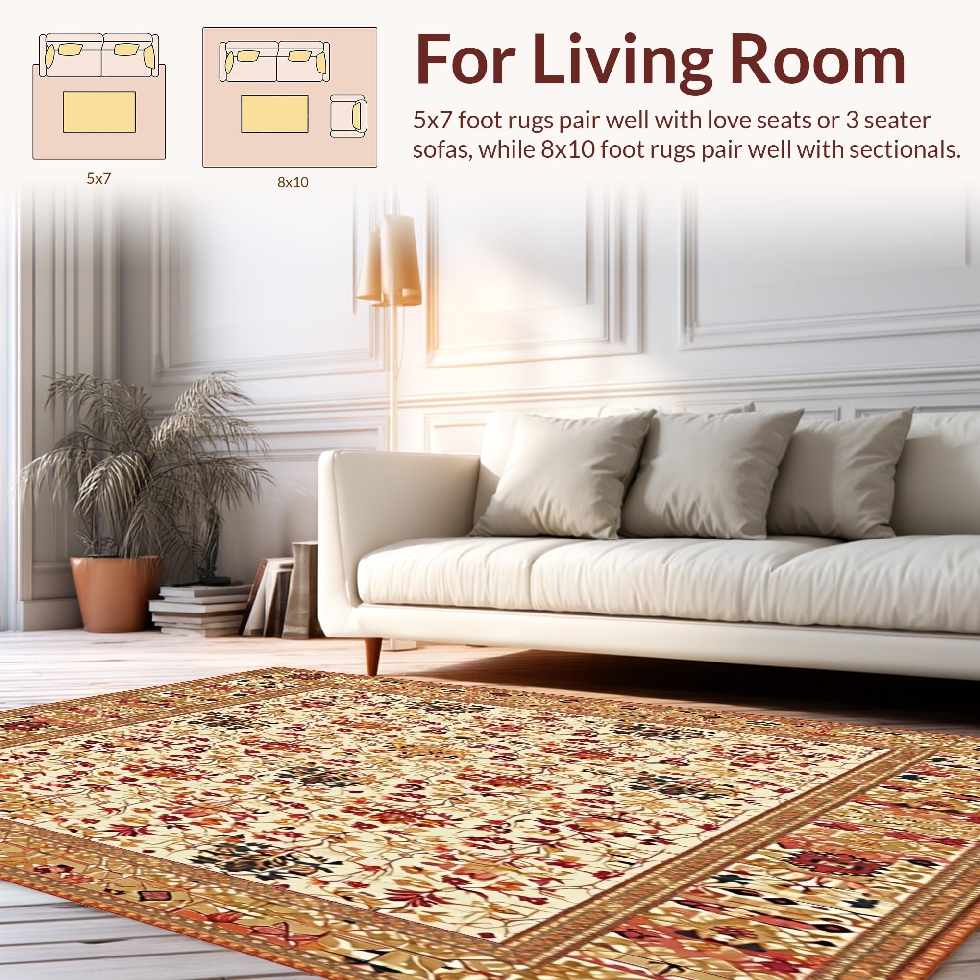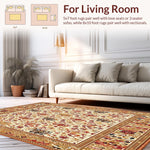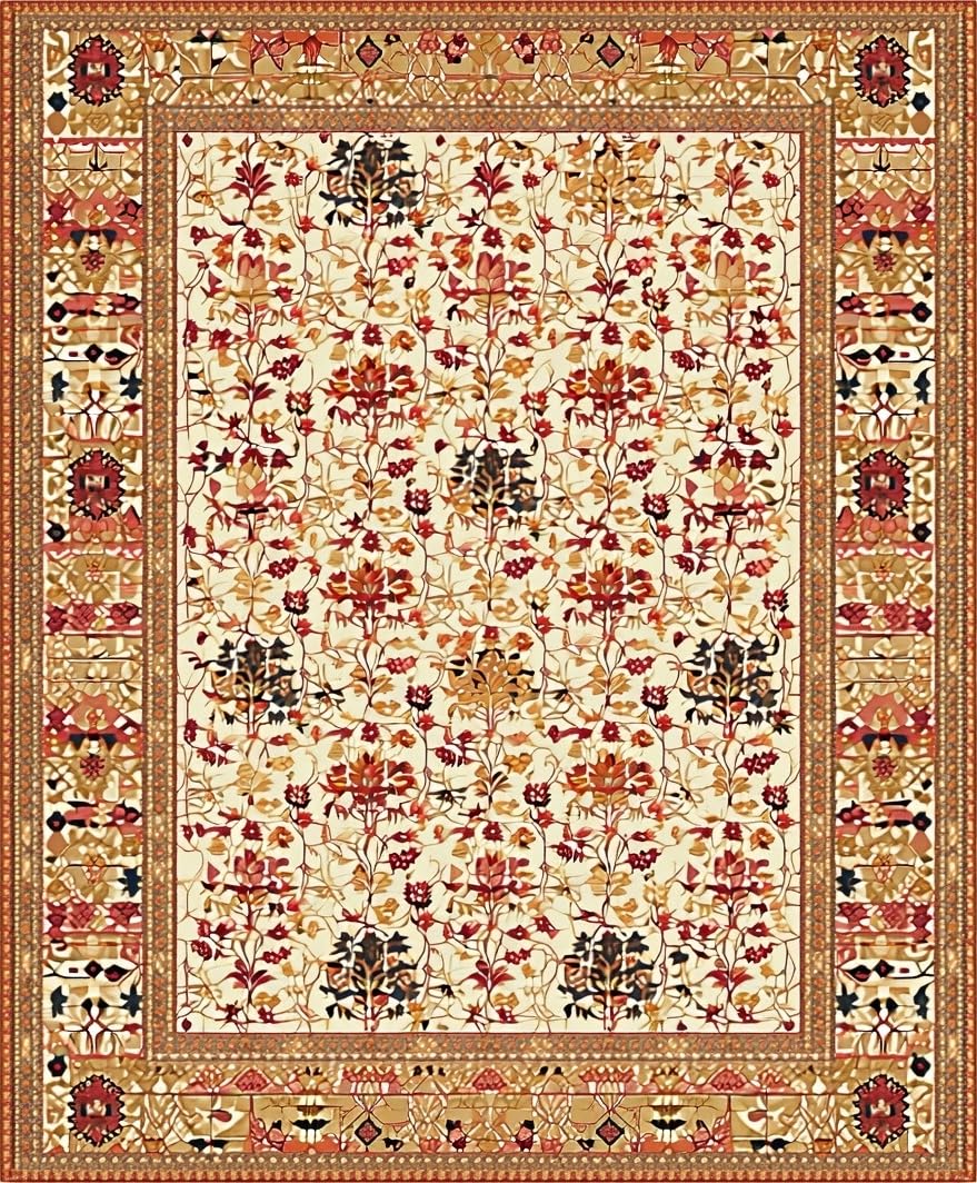 Ultra Soft Area Rug, Non Slip, Stain Resistant, Washable Area Rugs for Living Room, Bedroom, Rustic Charm Large Area with Earthy Floral and Geometric Fusion(Ivory) Overview: