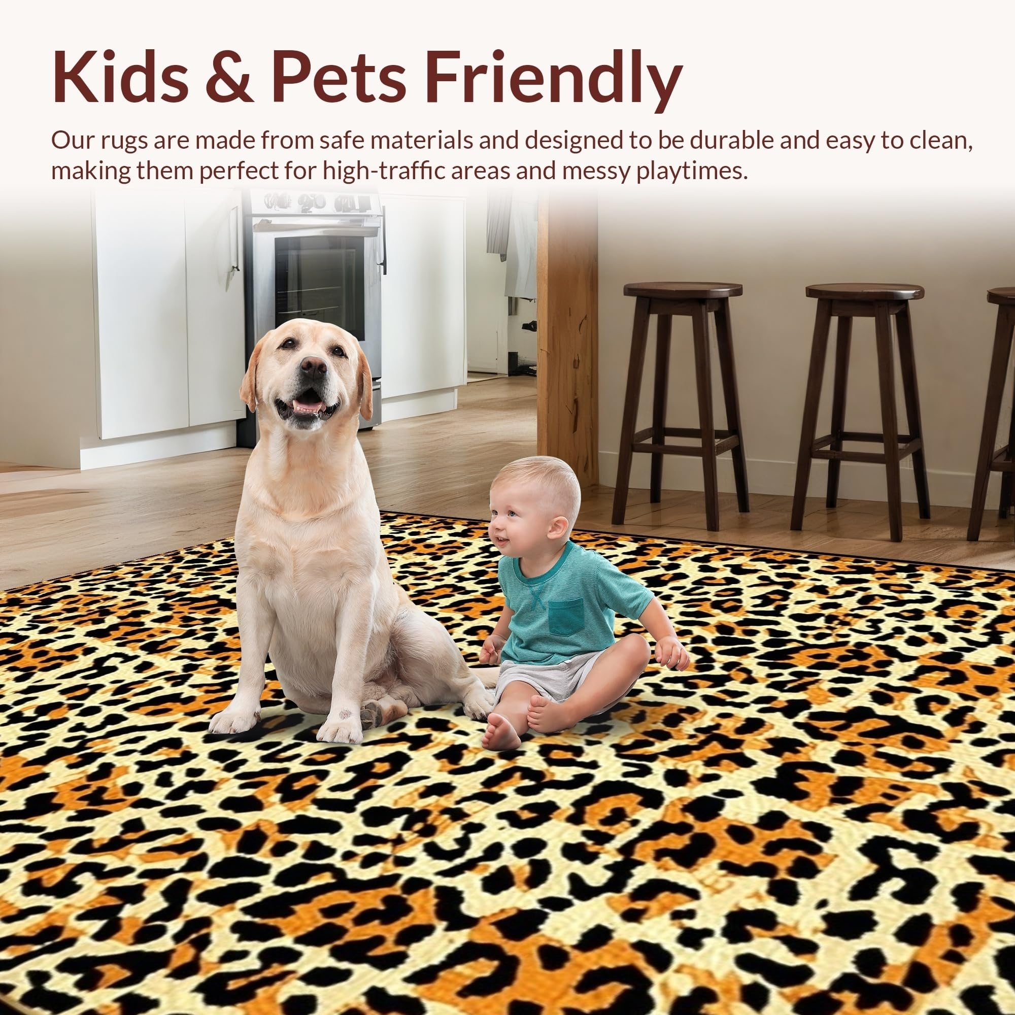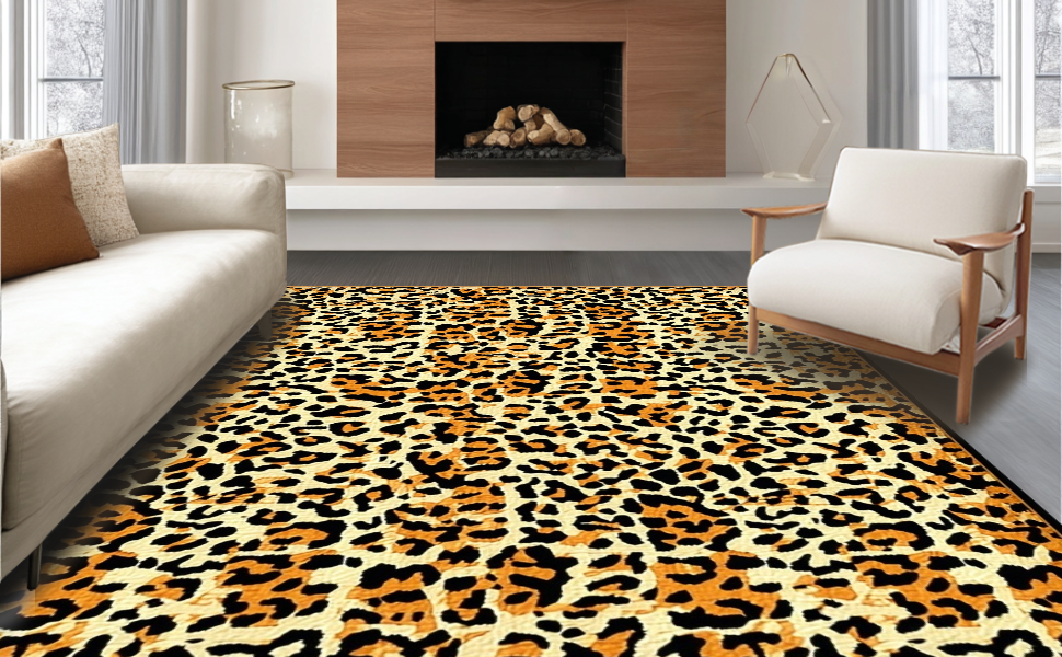 Ultra Soft Area Rug, Non Slip, Stain Resistant, Washable Area Rugs for Living Room, Bedroom, Rustic Cheetah Inspired Texture(Beige) Overview: