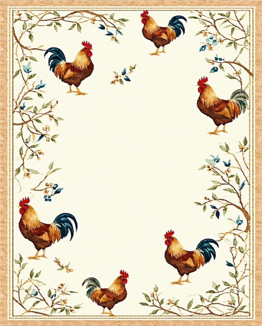 Rustic Chicken Theme Kitchen Contemporary Beige Multi Color Farm Animal Art(Beige)