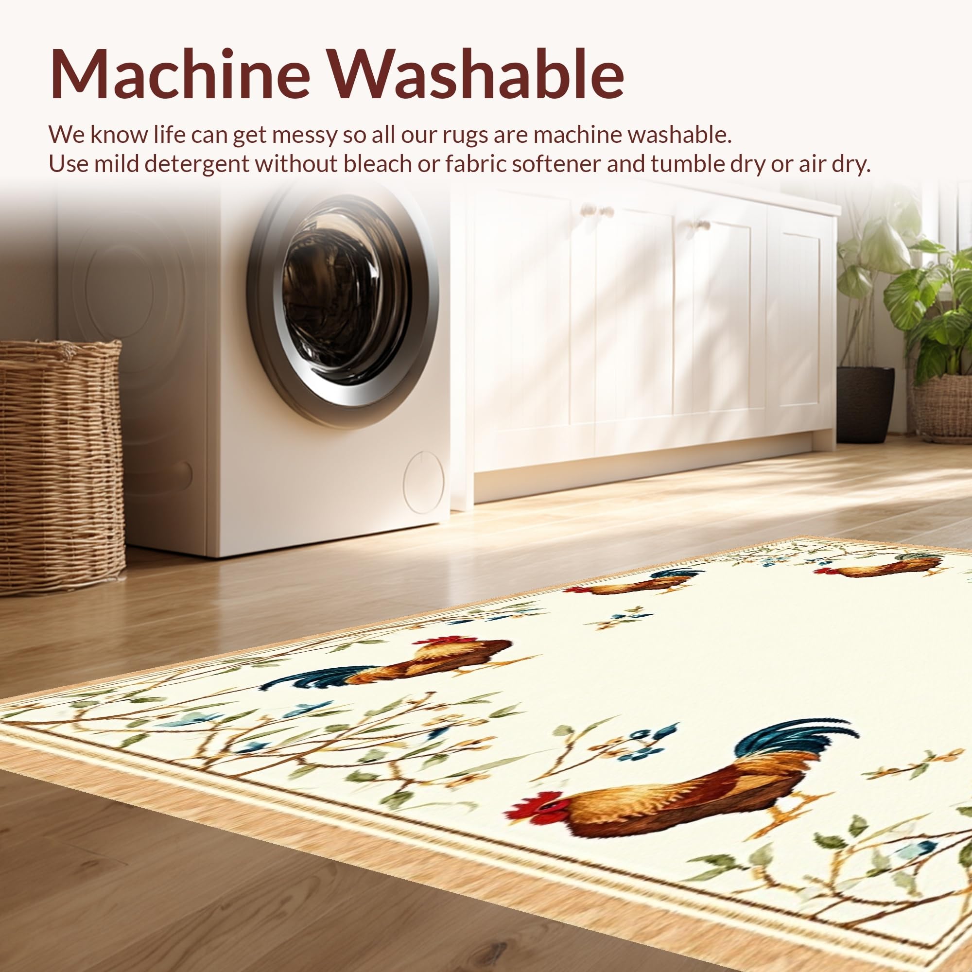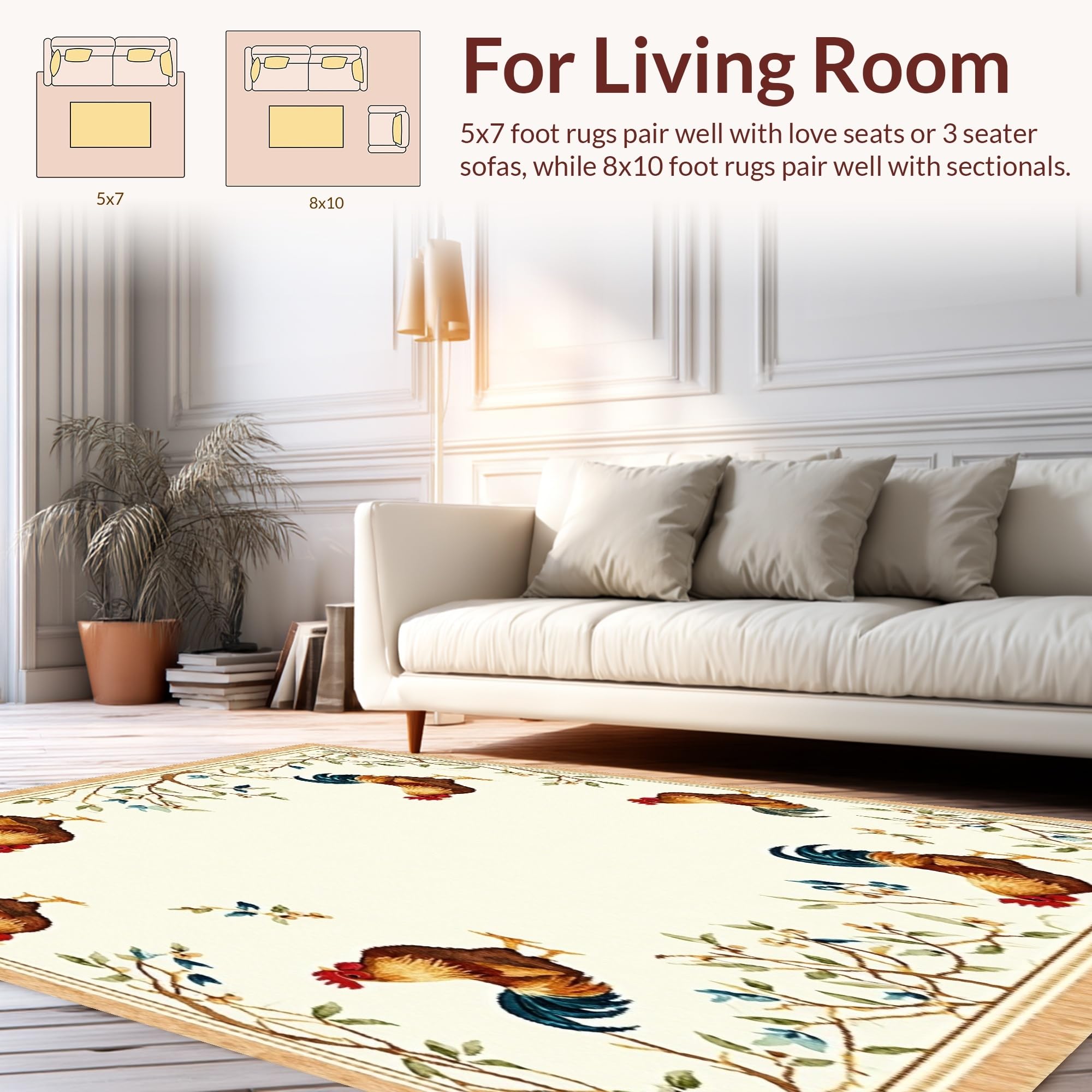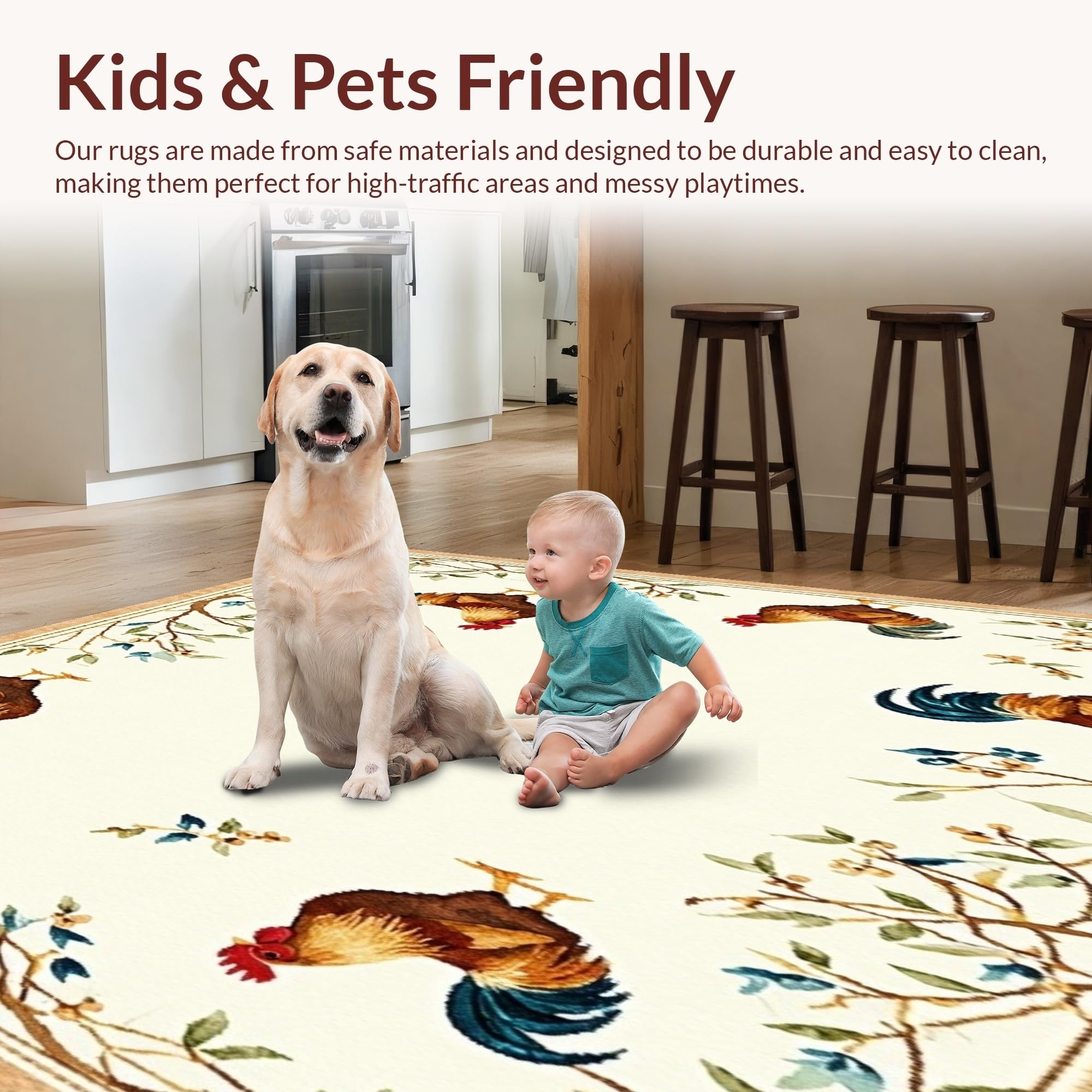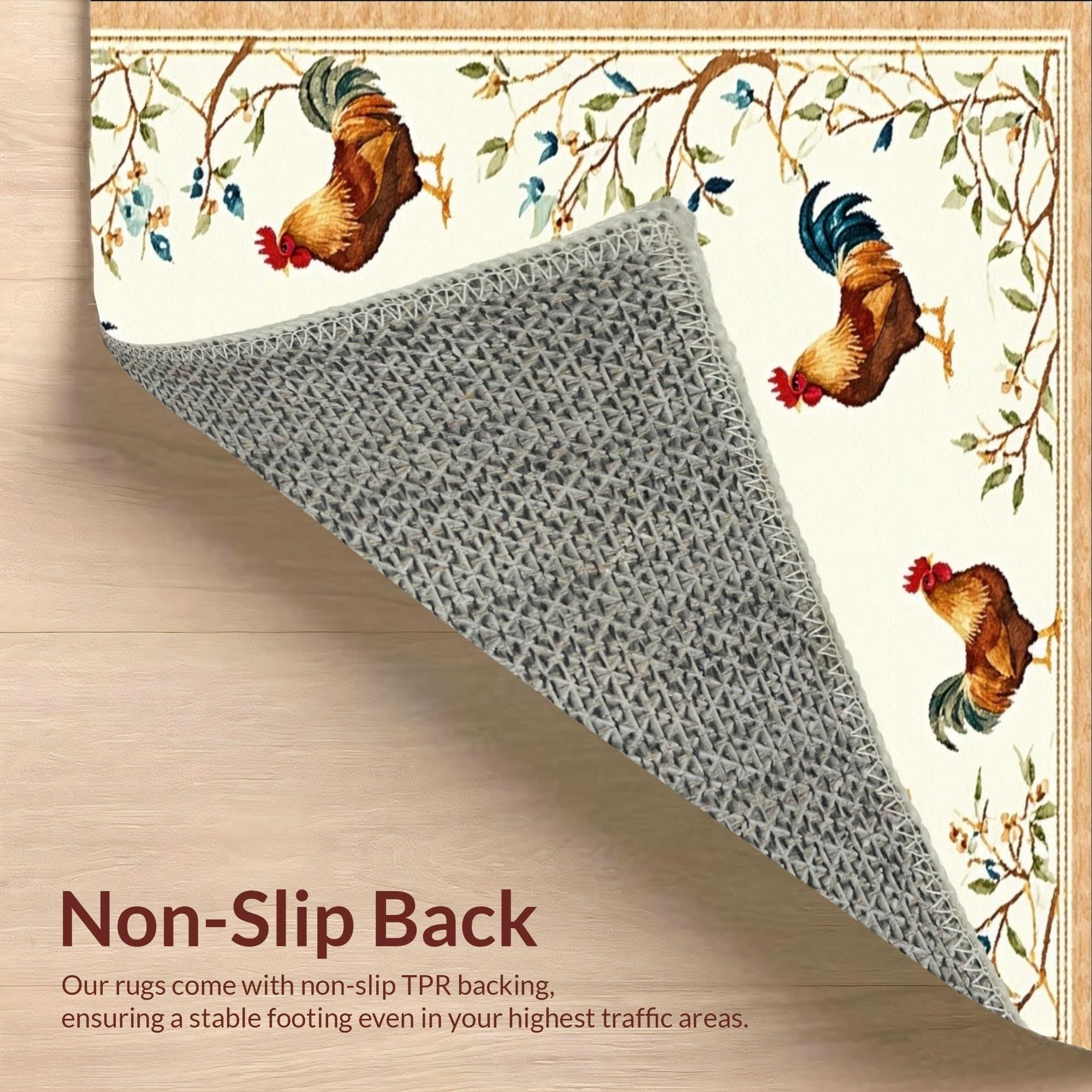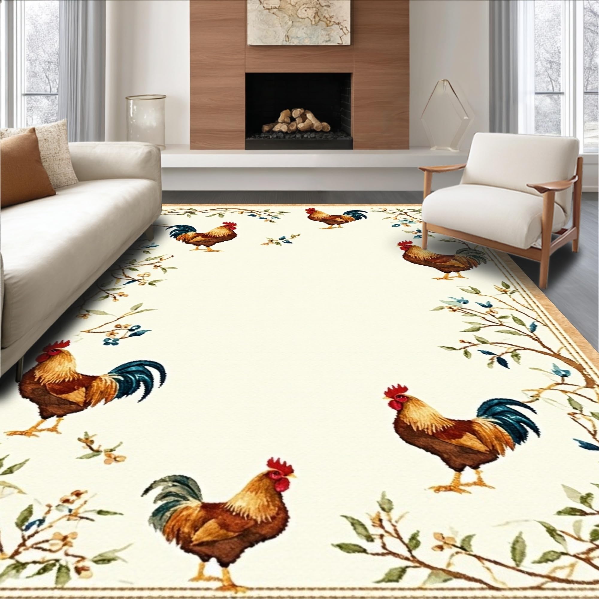 Ultra Soft Area Rug, Non Slip, Stain Resistant, Washable Area Rugs for Living Room, Bedroom, Rustic Chicken Theme Kitchen Contemporary Beige Multi Color Farm Animal Art(Beige) Overview: