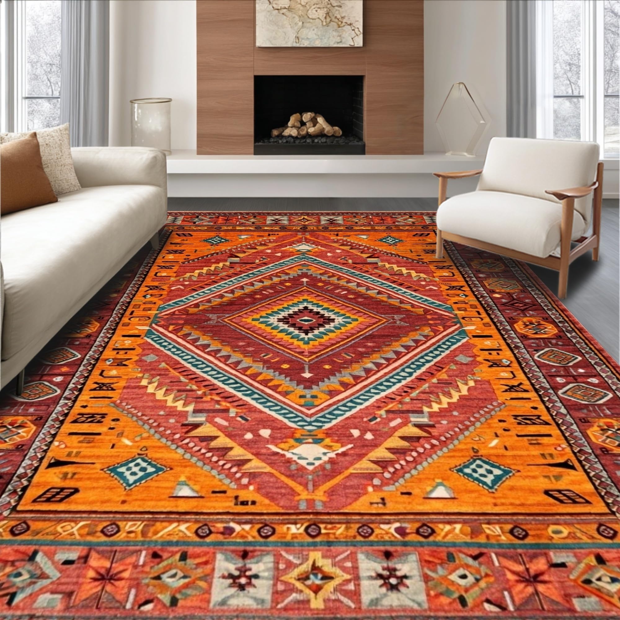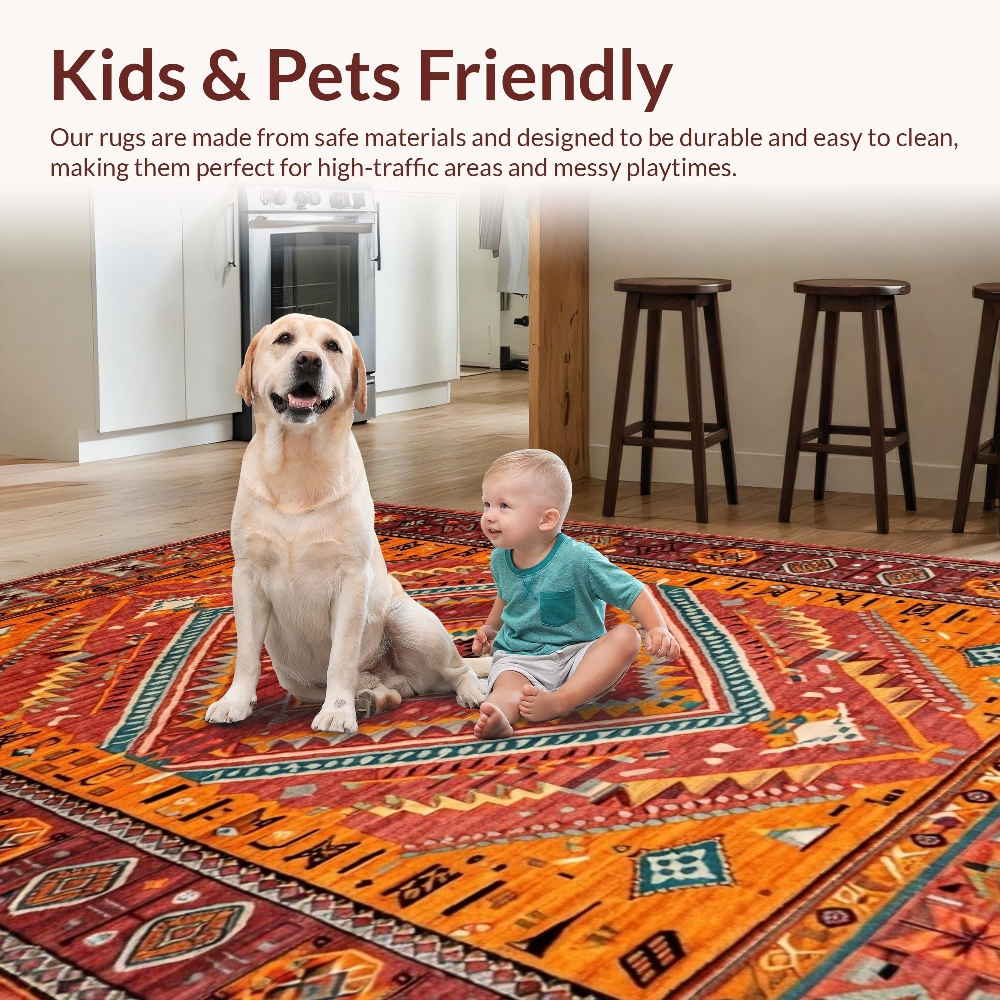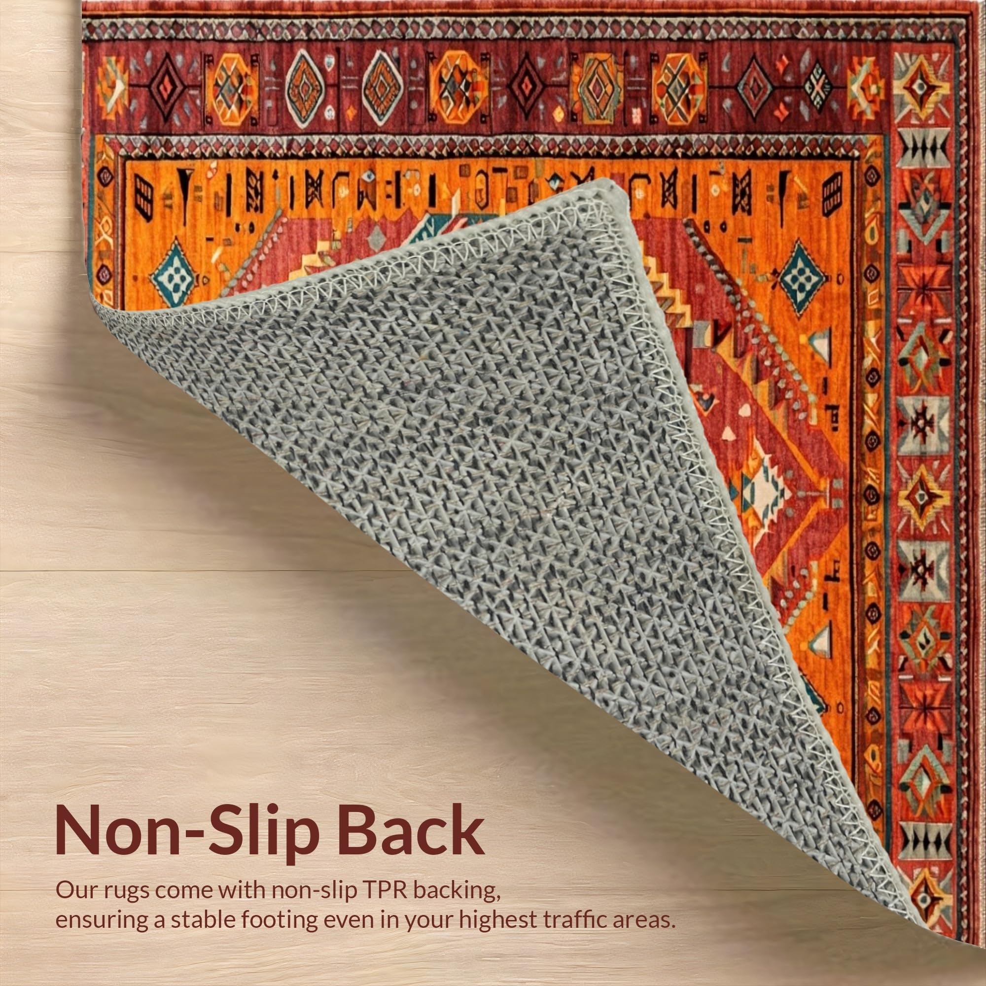 Ultra Soft Area Rug, Non Slip, Stain Resistant, Washable Area Rugs for Living Room, Bedroom, Rustic Colorful Chindi Weave(Red) Overview: