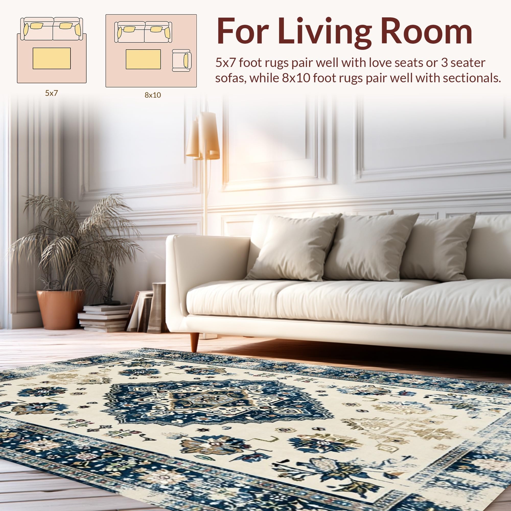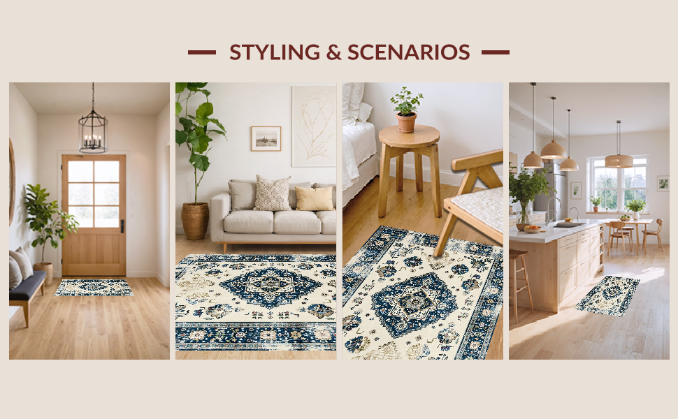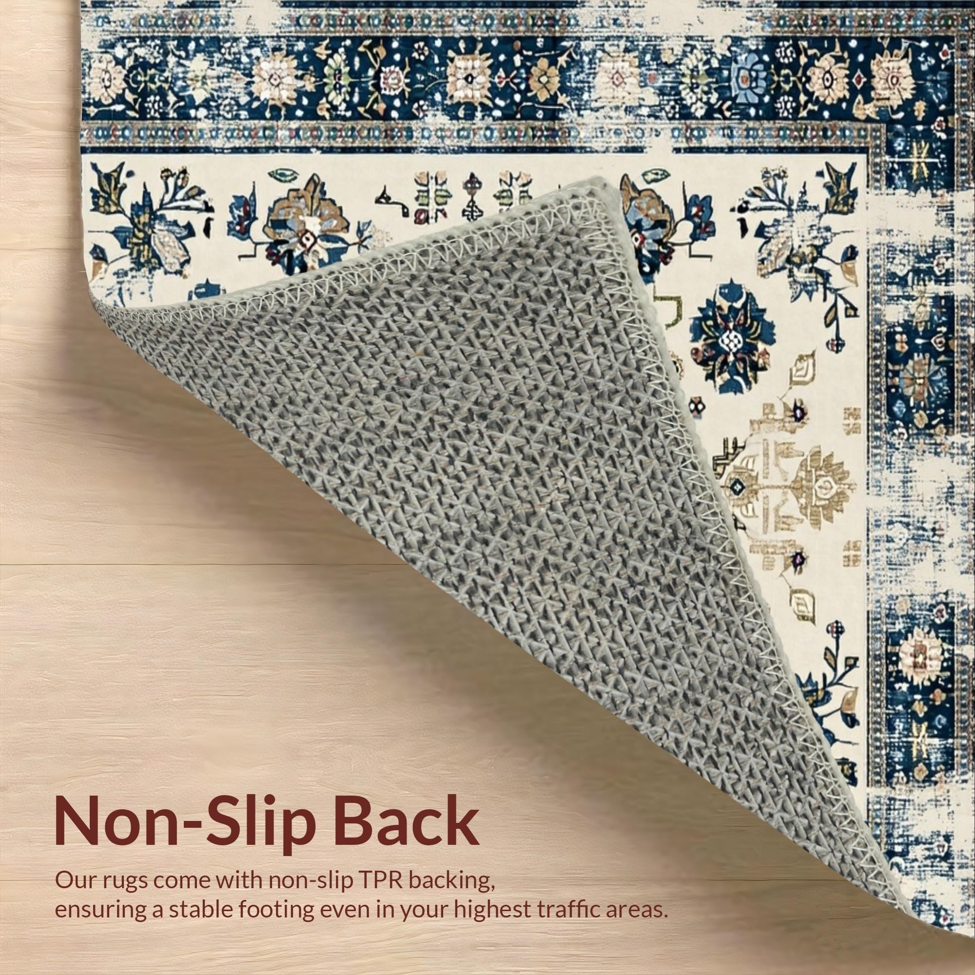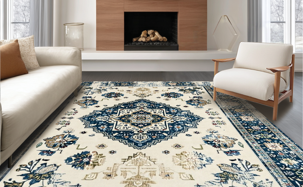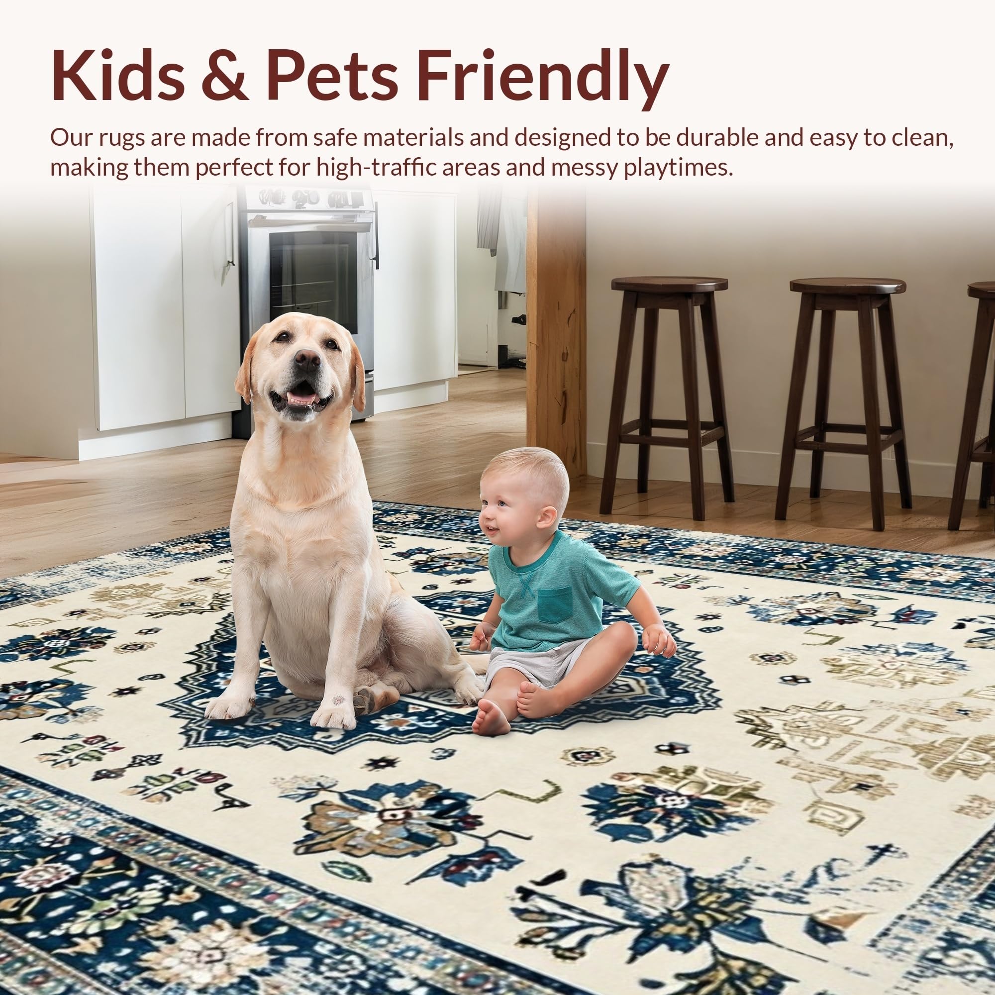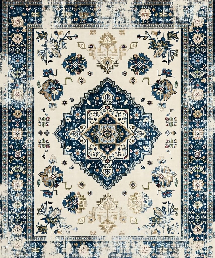 Ultra Soft Area Rug, Non Slip, Stain Resistant, Washable Area Rugs for Living Room, Bedroom, Rustic Colorful Ogee Pattern(Blue) Overview: