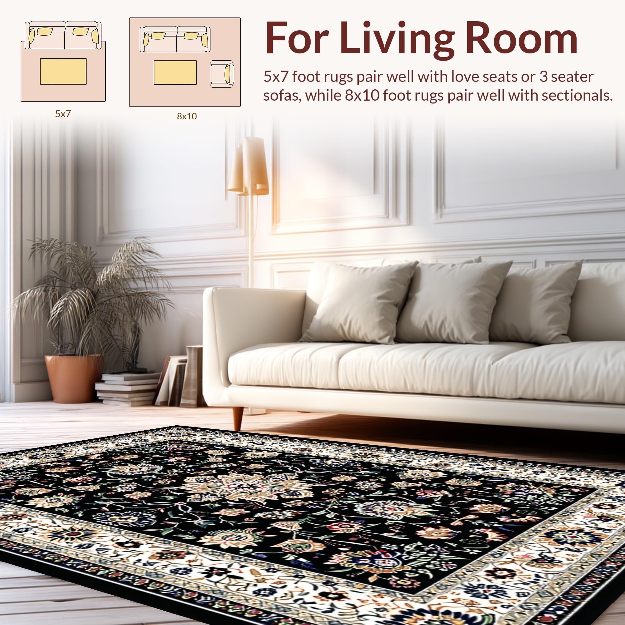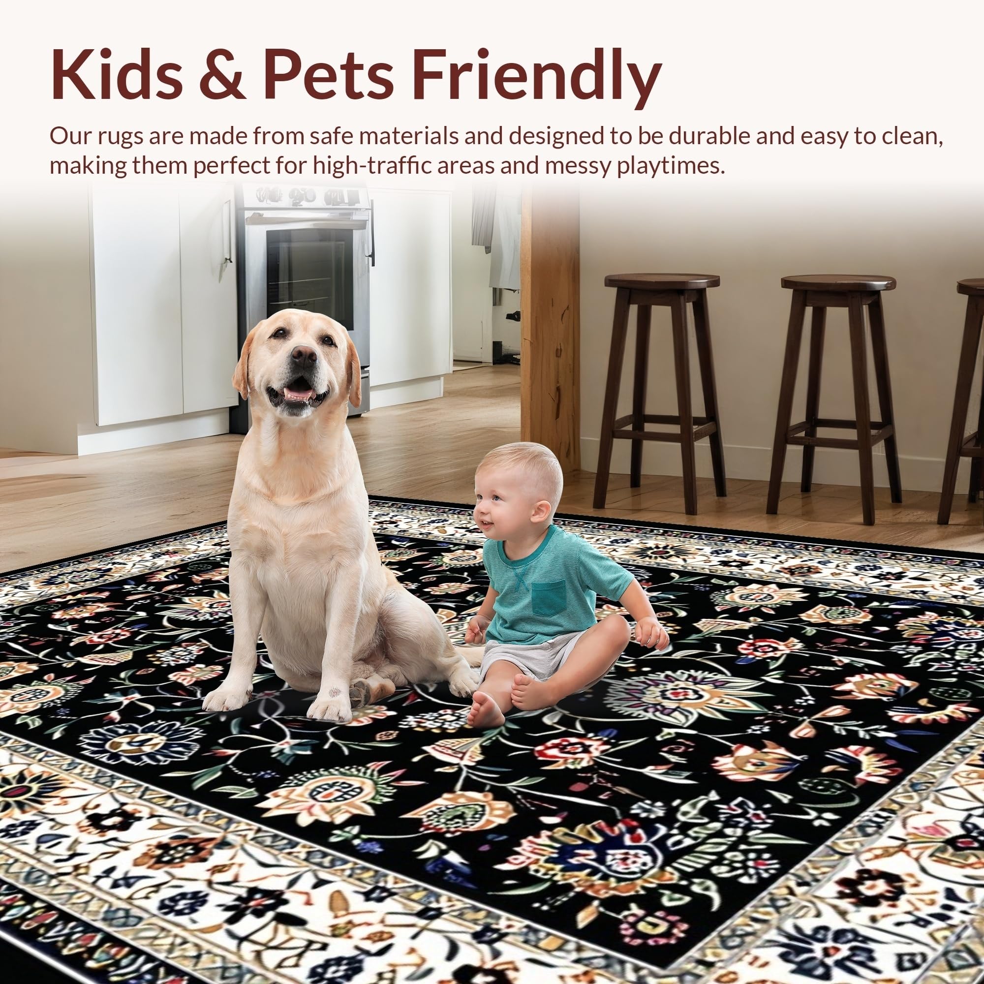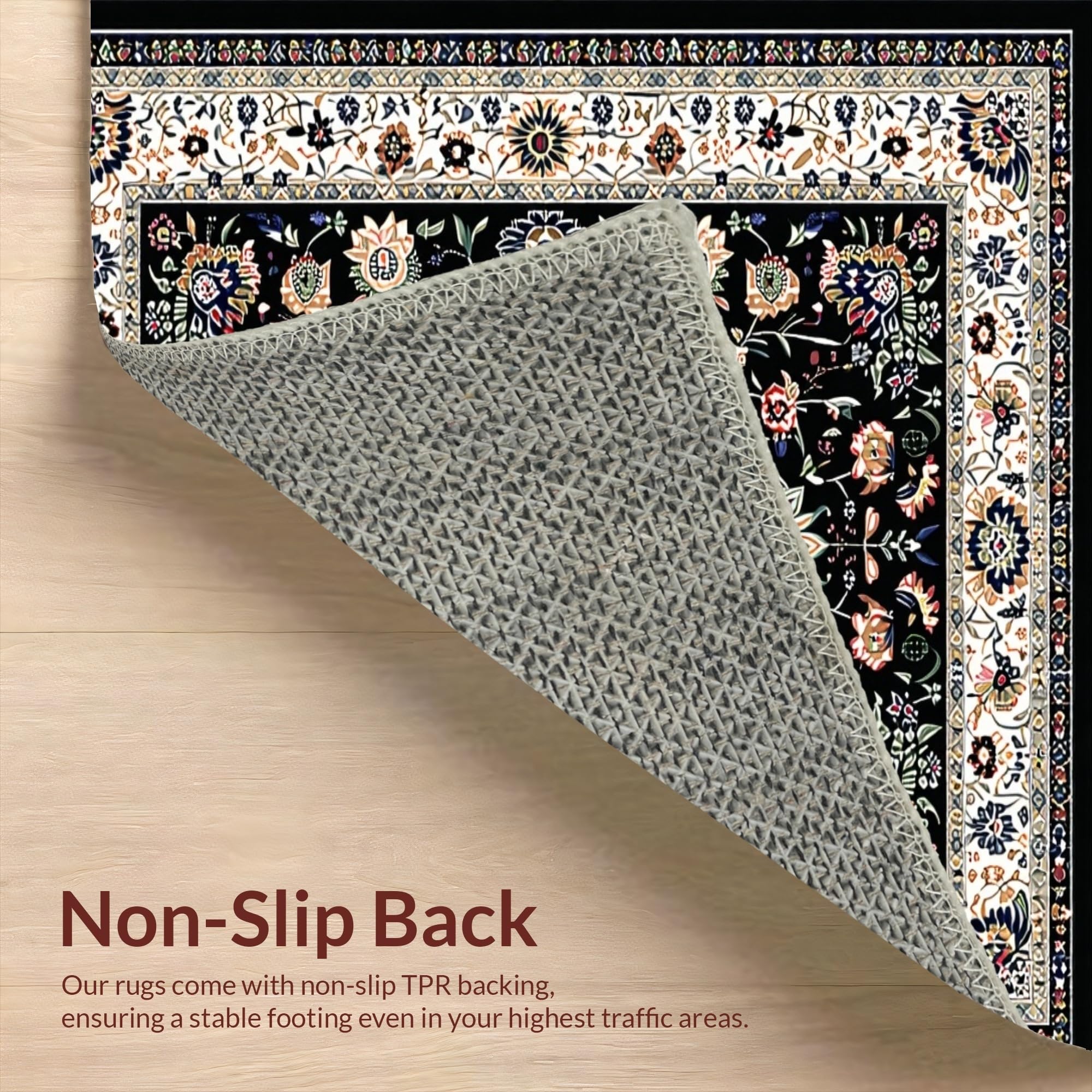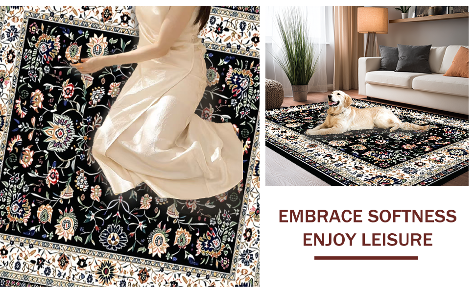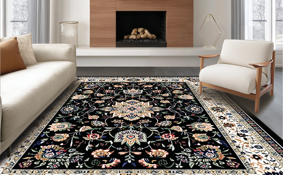 Ultra Soft Area Rug, Non Slip, Stain Resistant, Washable Area Rugs for Living Room, Bedroom, Rustic Colorful Trellis Pattern(Black) Overview: