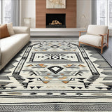 Ultra Soft Area Rug, Non Slip, Stain Resistant, Washable Area Rugs for Living Room, Bedroom, Rustic Cream and Black Trellis Motif(White) Overview: