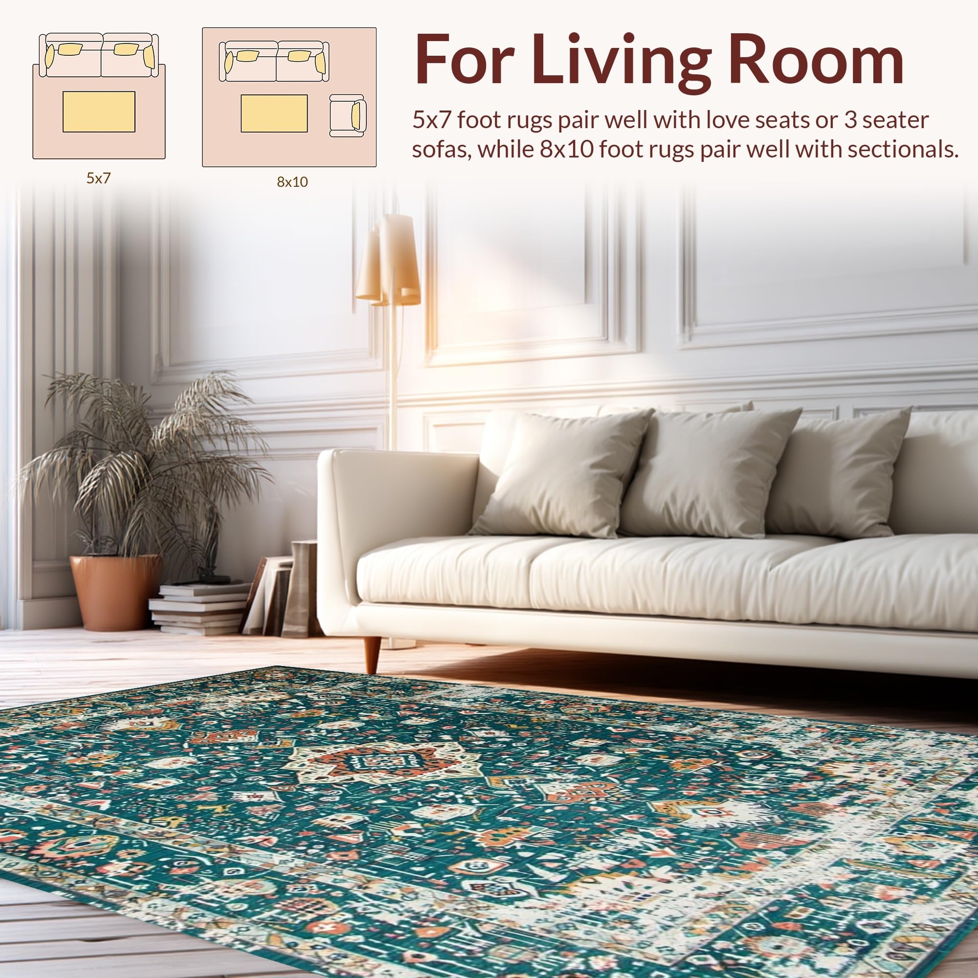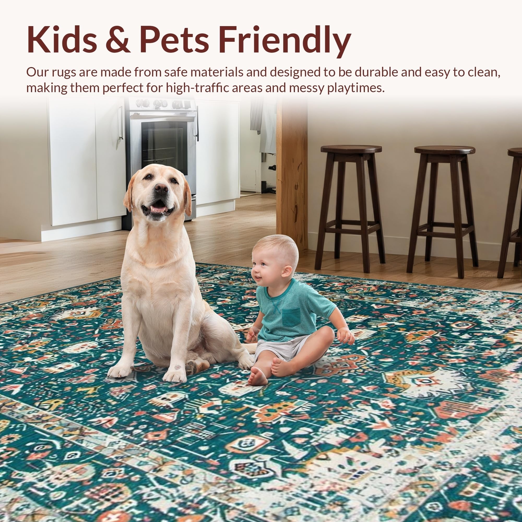 Ultra Soft Area Rug, Non Slip, Stain Resistant, Washable Area Rugs for Living Room, Bedroom, Rustic Dark Green Tiled Motif(Green) Overview: