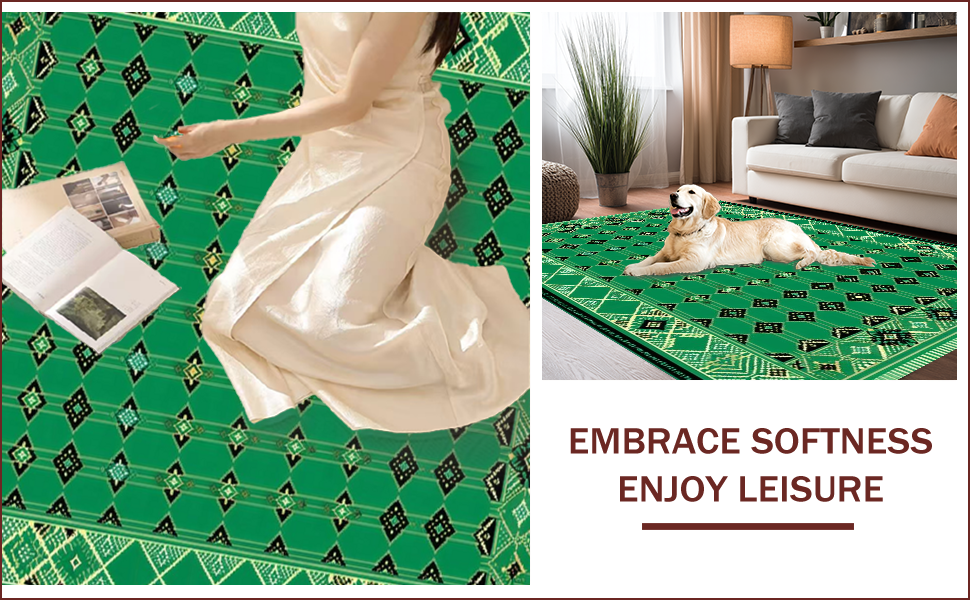 Ultra Soft Area Rug, Non Slip, Stain Resistant, Washable Area Rugs for Living Room, Bedroom, Rustic Distressed Geometric Composition(Green) Overview: