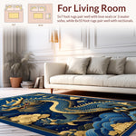 Flatwoven High Traffic Area Rug, Rustic Dragon Inspired, Non Slip, Stain Resistant, Washable Area Rugs for Living Room, Bedroom (Blue) Overview: