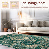 Ultra Soft Area Rug, Non Slip, Stain Resistant, Washable Area Rugs for Living Room, Bedroom, Rustic Earth Tone Tiled Design(Green) Overview: