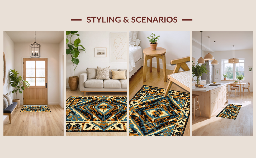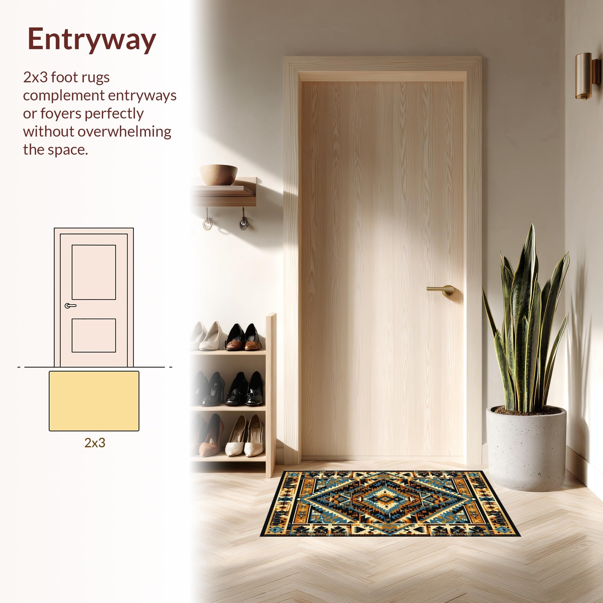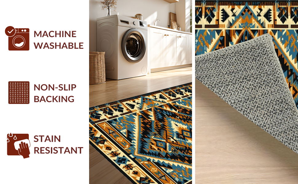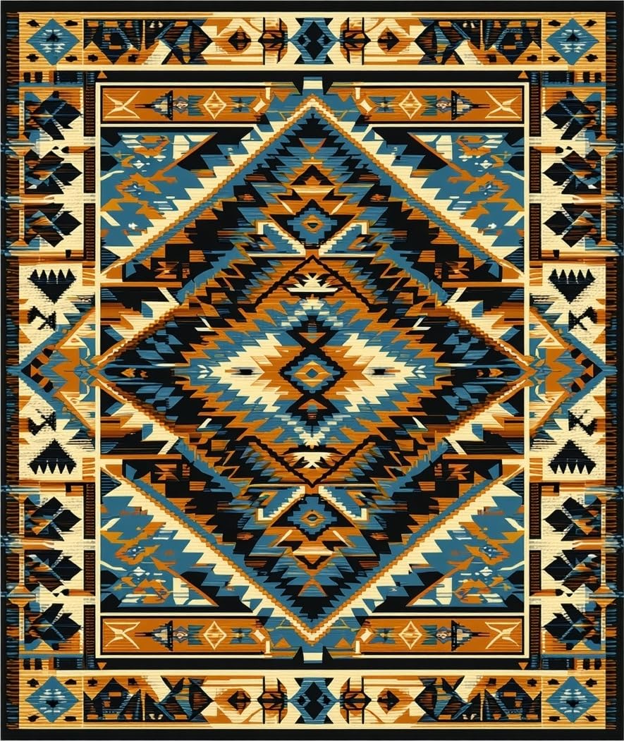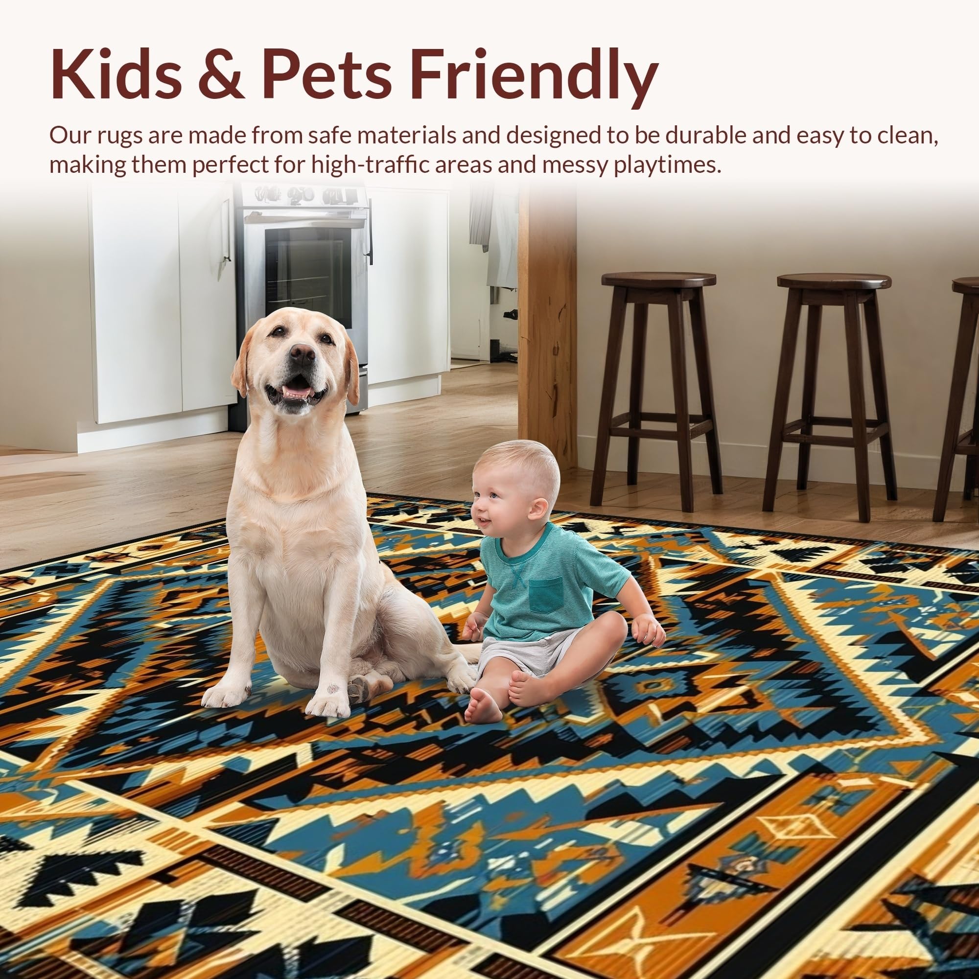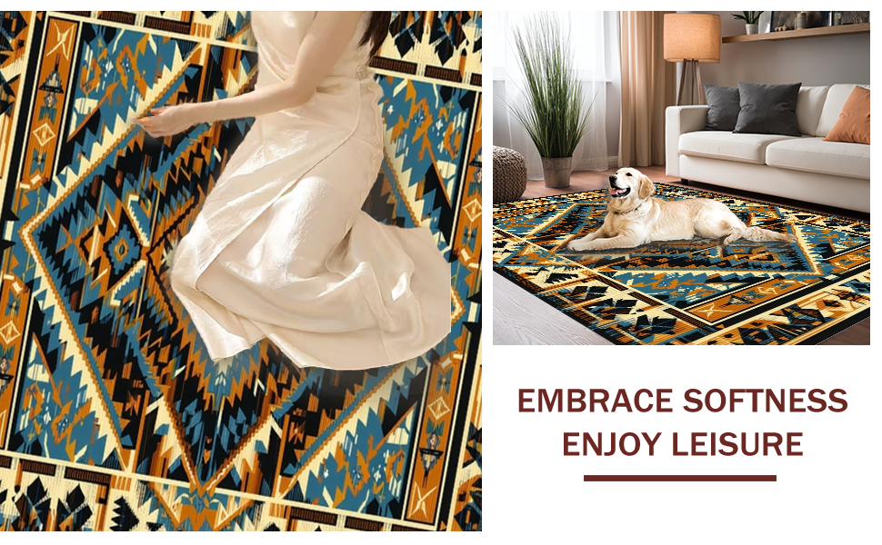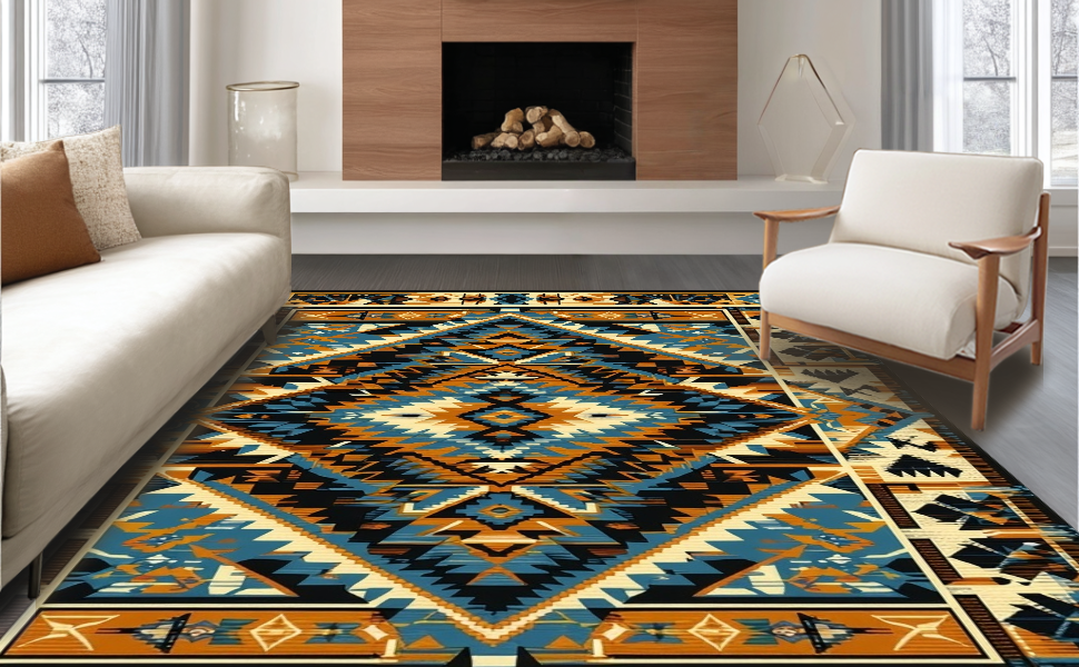 Ultra Soft Area Rug, Non Slip, Stain Resistant, Washable Area Rugs for Living Room, Bedroom, Rustic Earth Tones Tribal Motif(Blue) Overview: