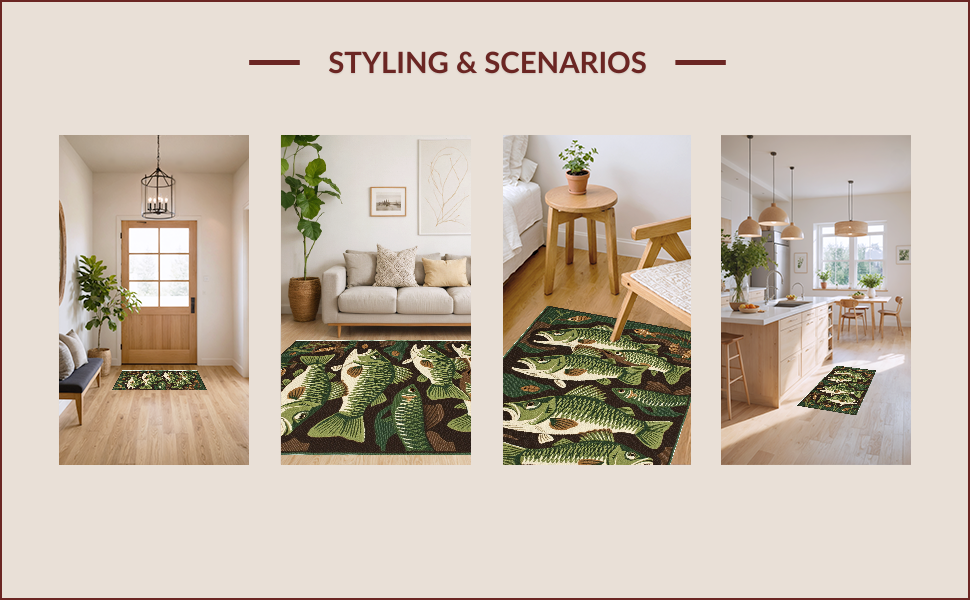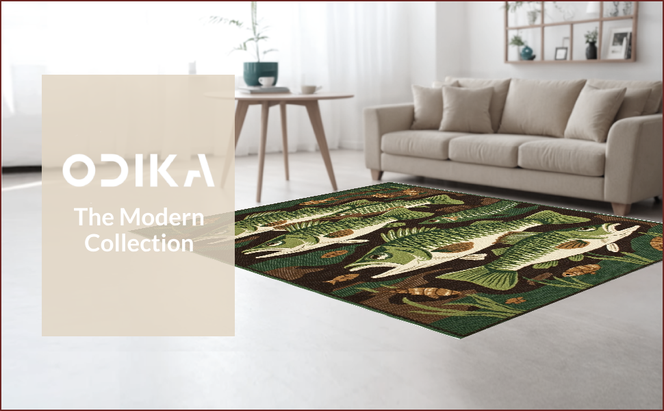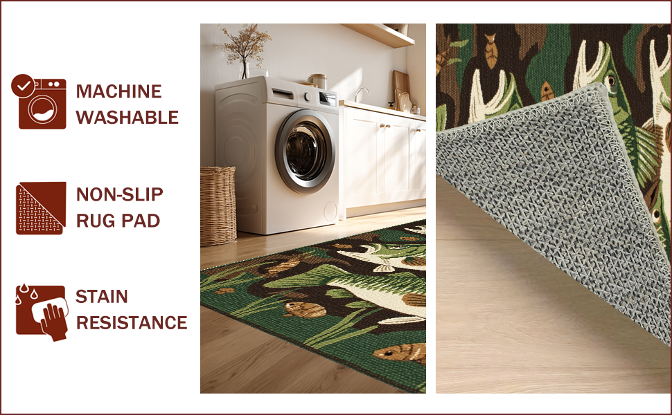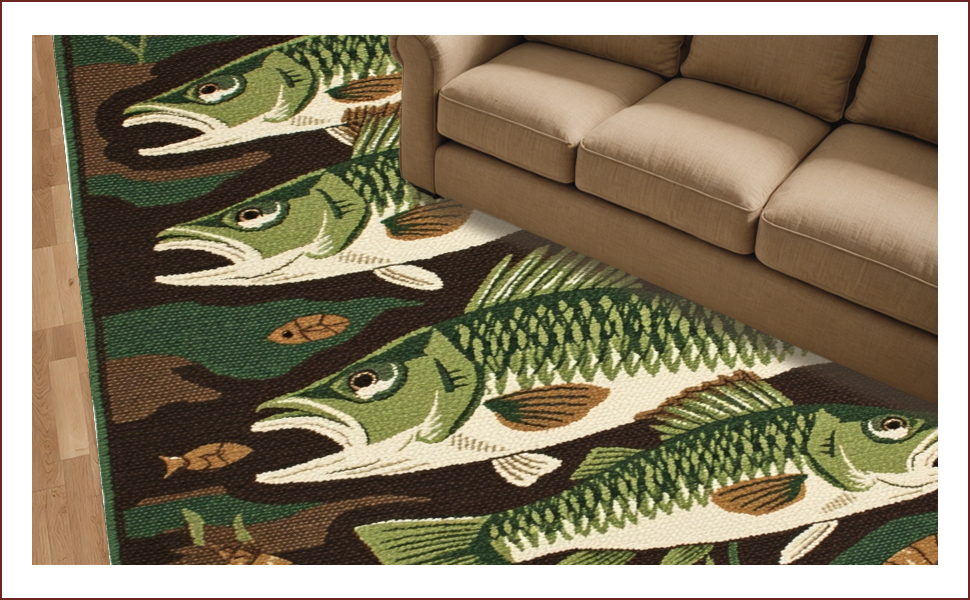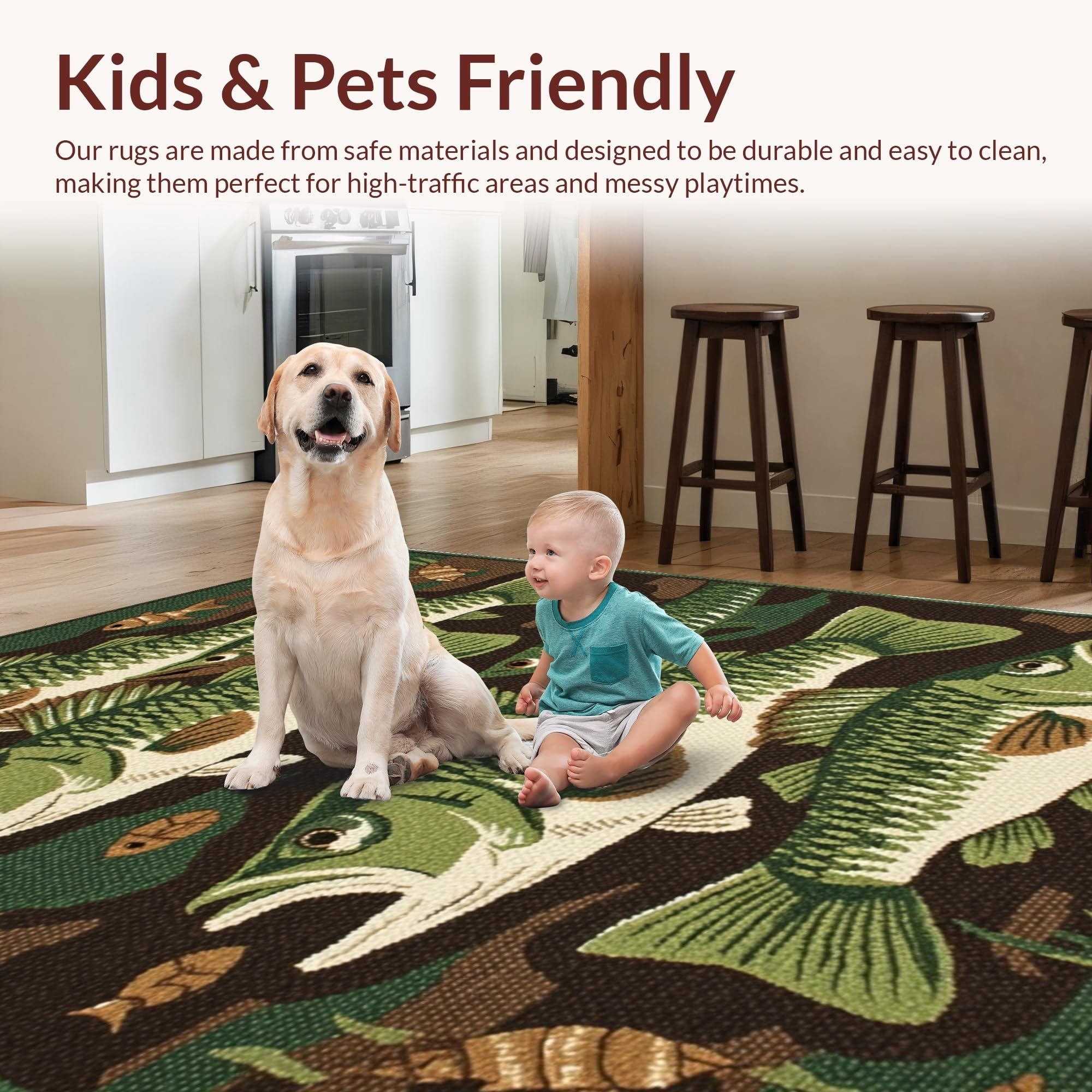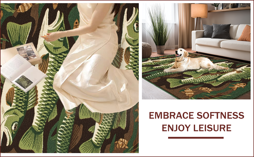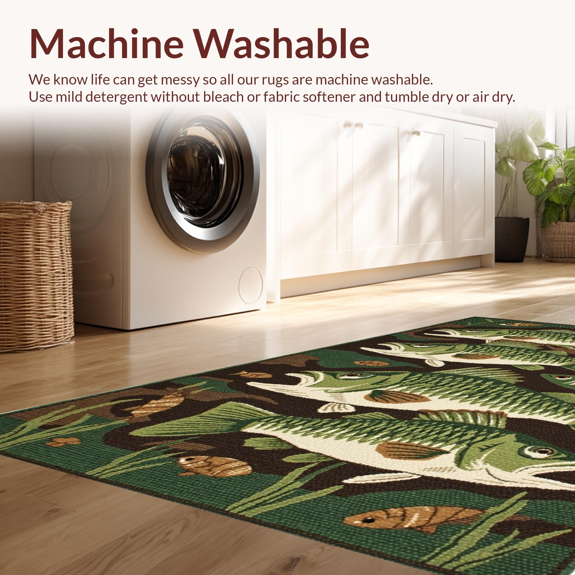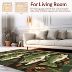 Ultra Soft Area Rug, Non Slip, Stain Resistant, Washable Area Rugs for Living Room, Bedroom, Rustic Earthy Bass Silhouette(Green) Overview: