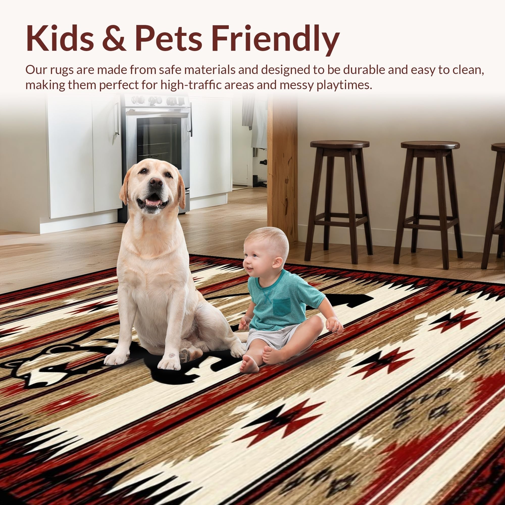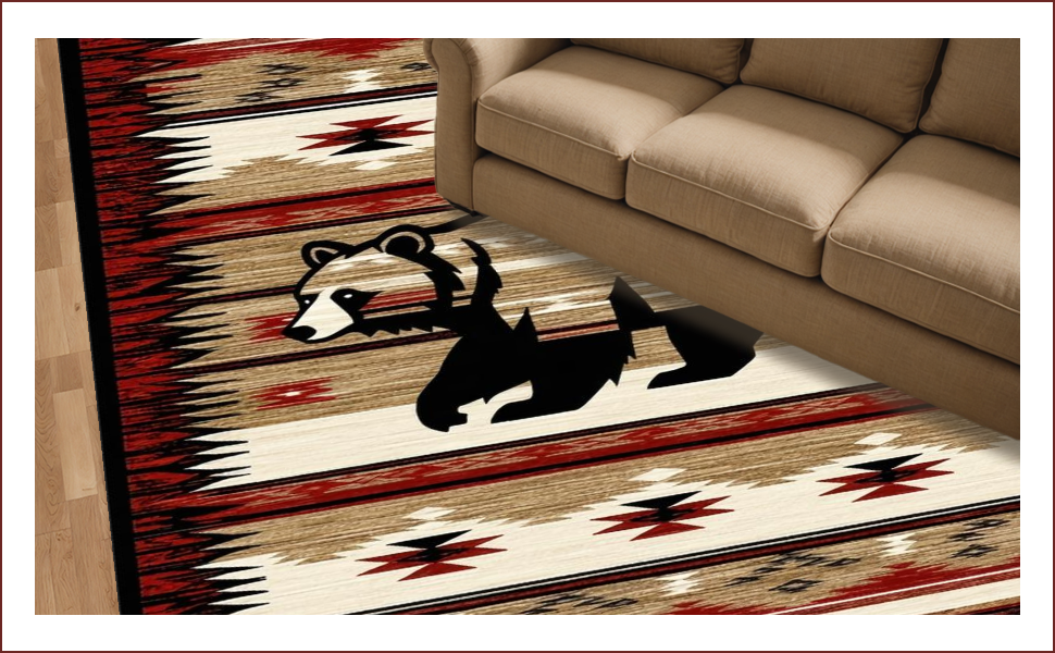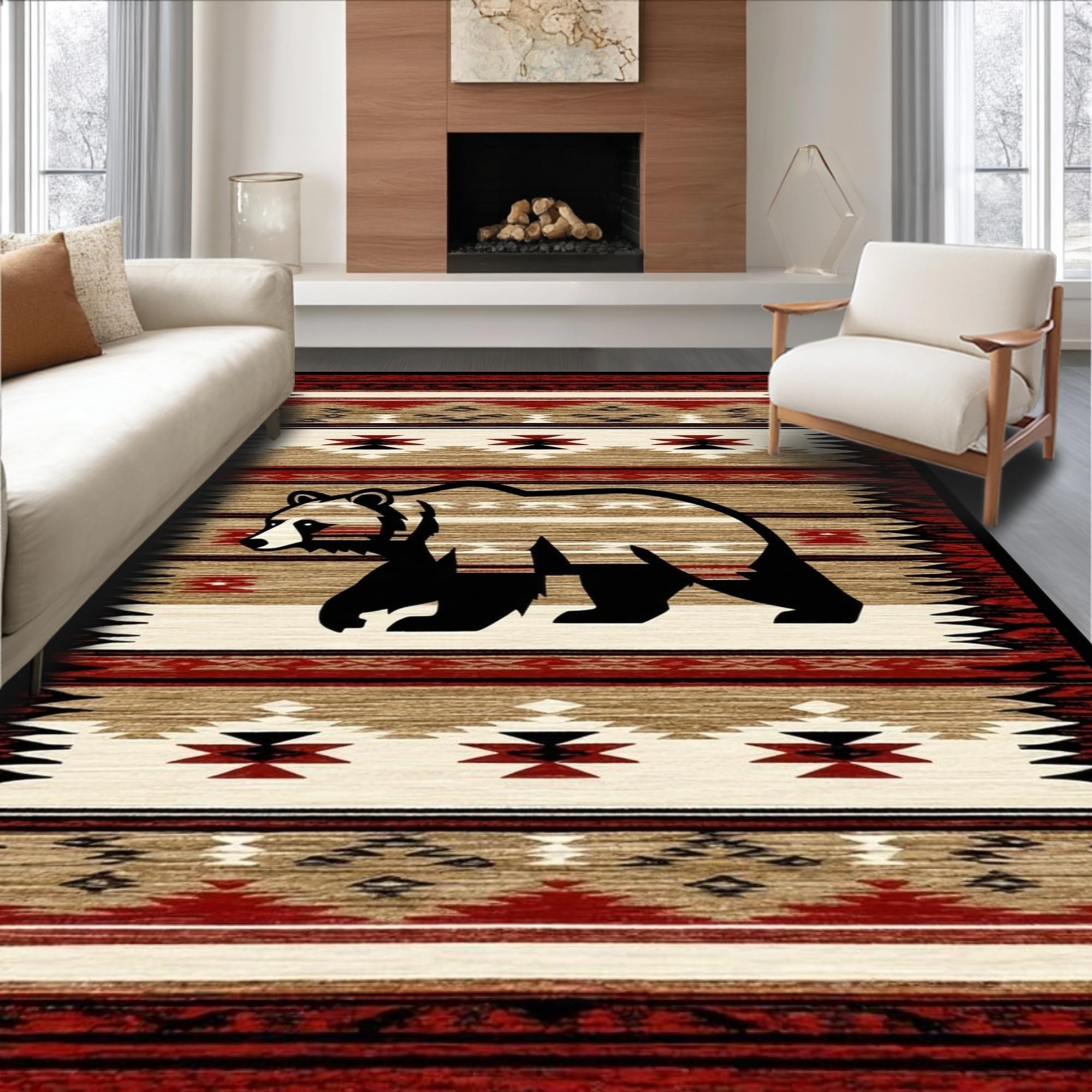 Ultra Soft Area Rug, Non Slip, Stain Resistant, Washable Area Rugs for Living Room, Bedroom, Rustic Earthy Bear Motif(Red) Overview: