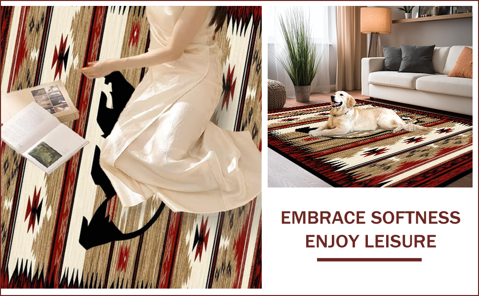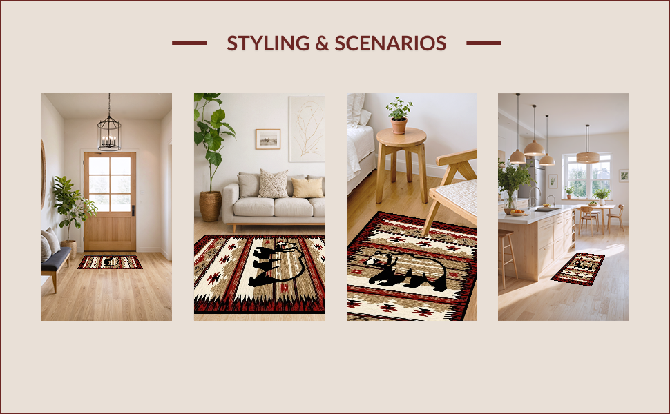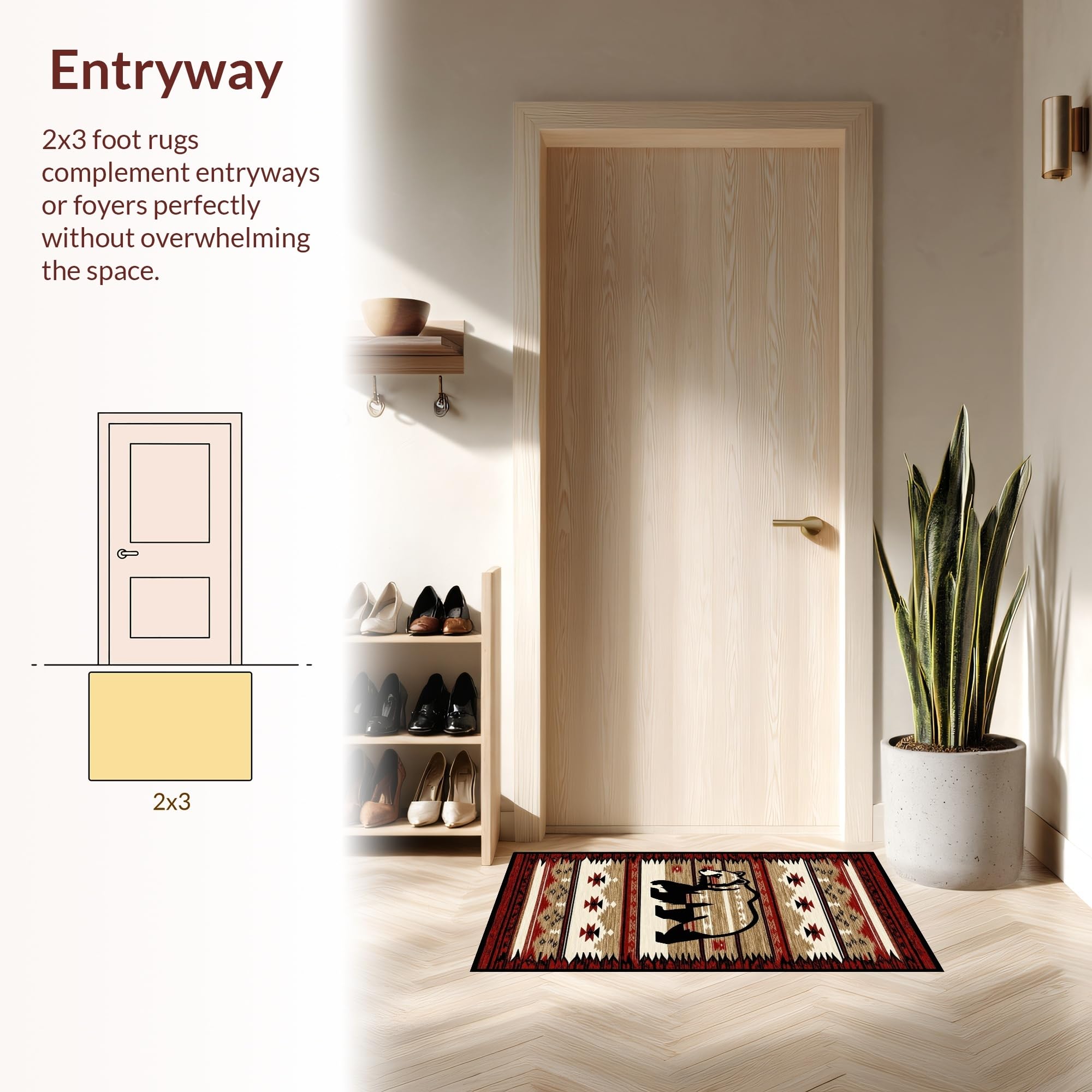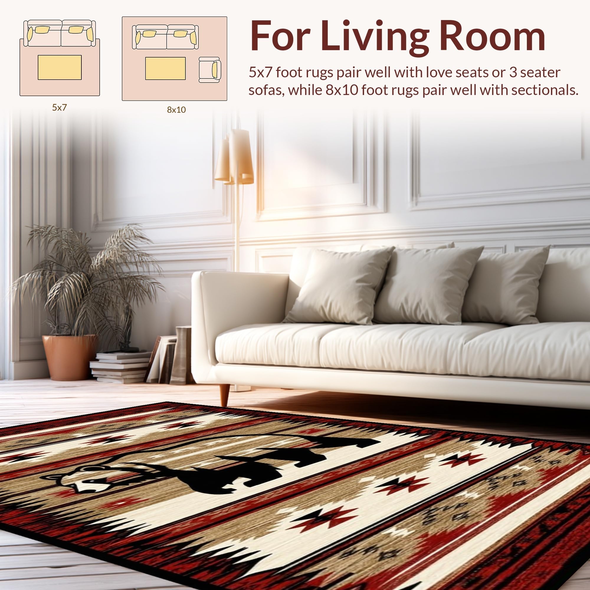 Ultra Soft Area Rug, Non Slip, Stain Resistant, Washable Area Rugs for Living Room, Bedroom, Rustic Earthy Bear Motif(Red) Overview: