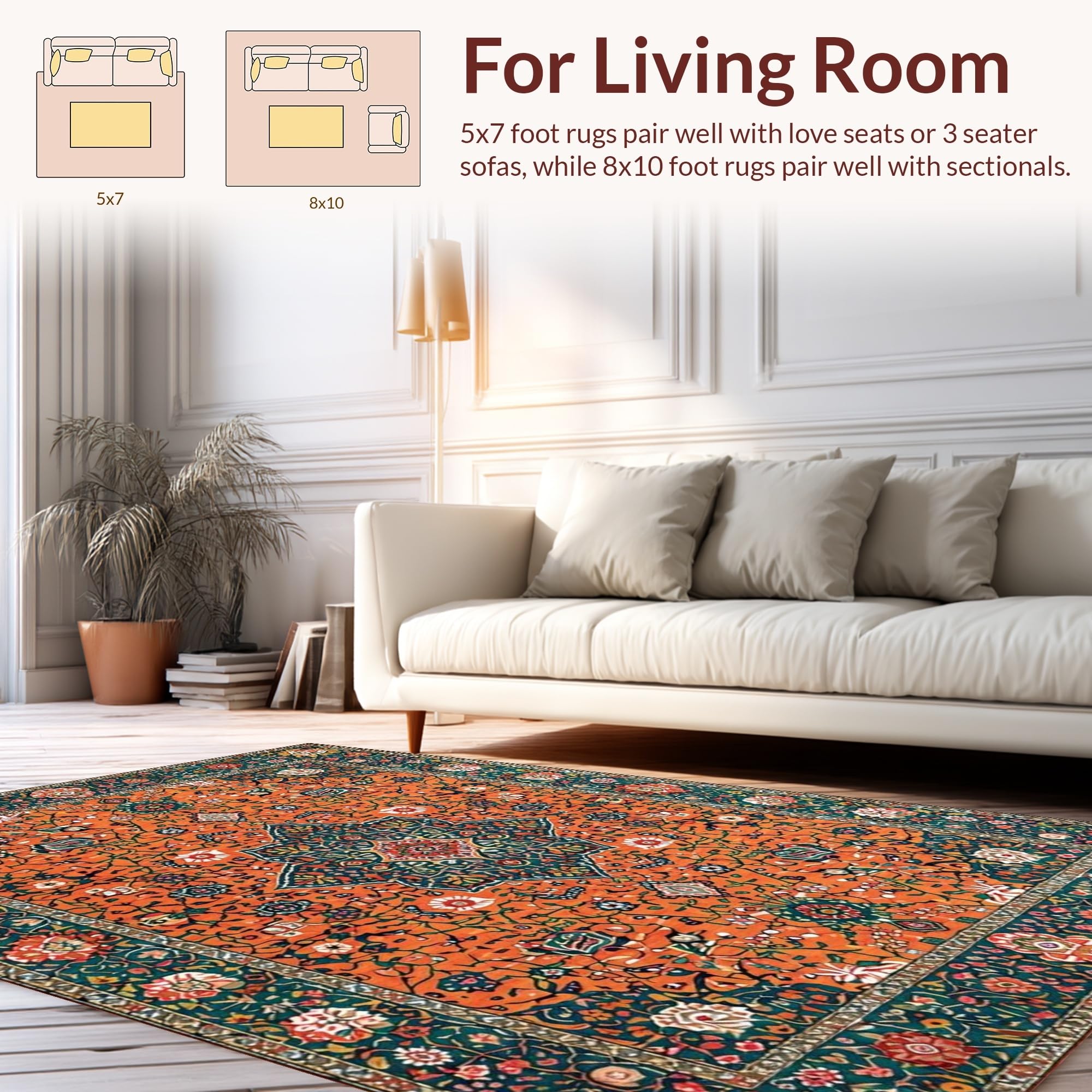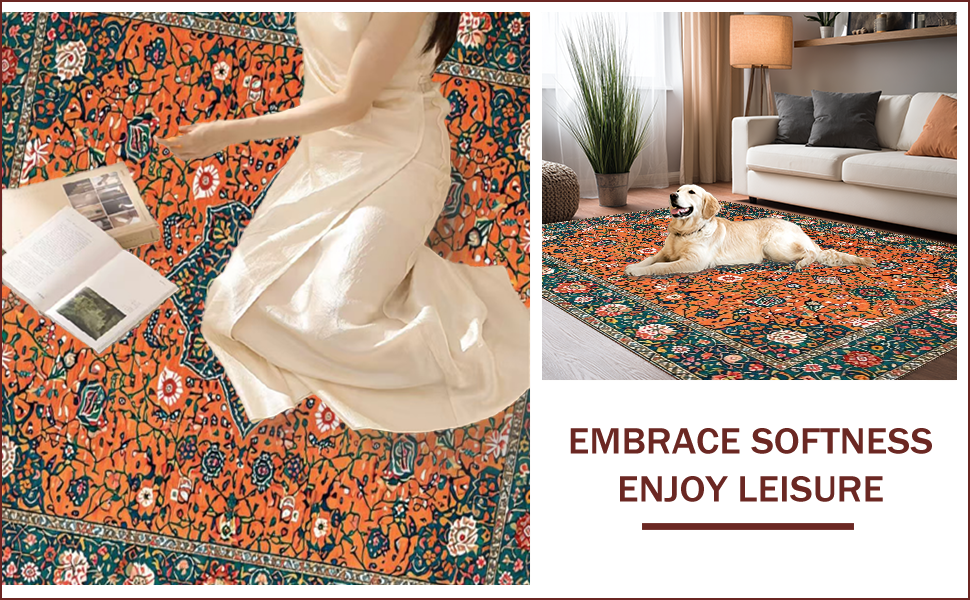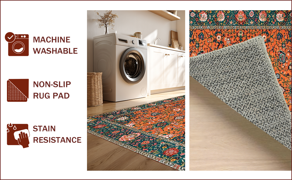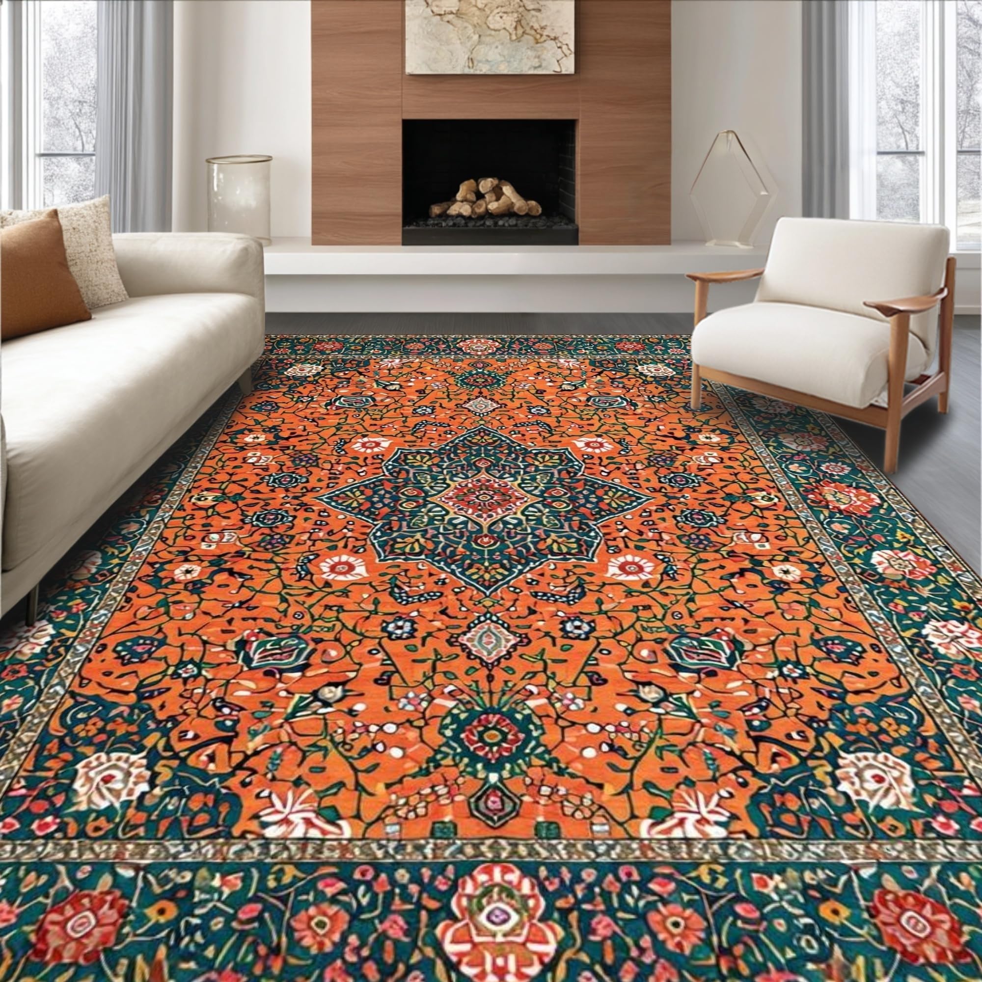 Ultra Soft Area Rug, Non Slip, Stain Resistant, Washable Area Rugs for Living Room, Bedroom, Rustic Earthy Boho Charm(Orange) Overview: