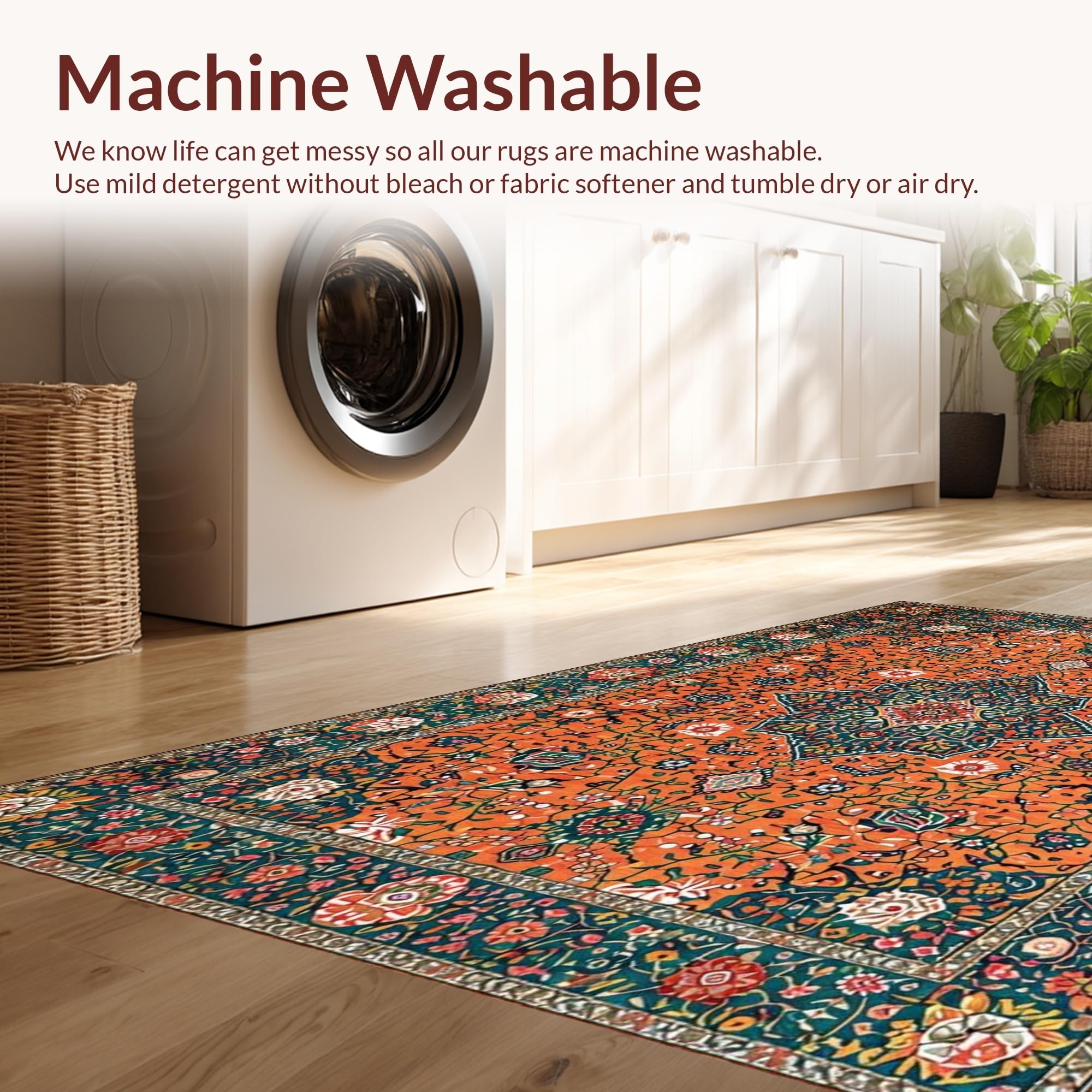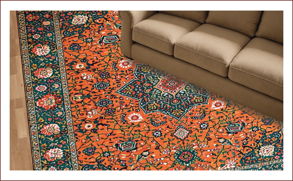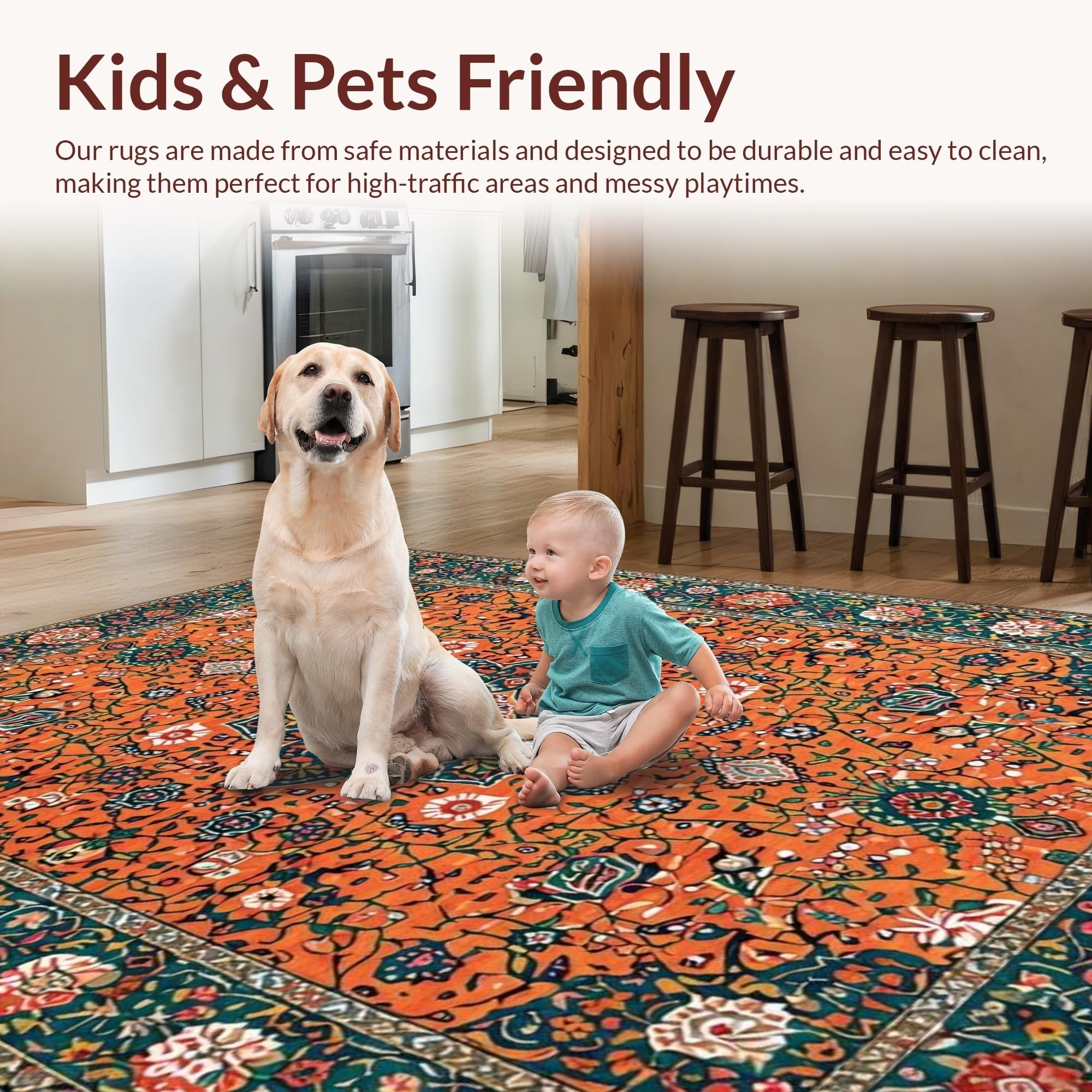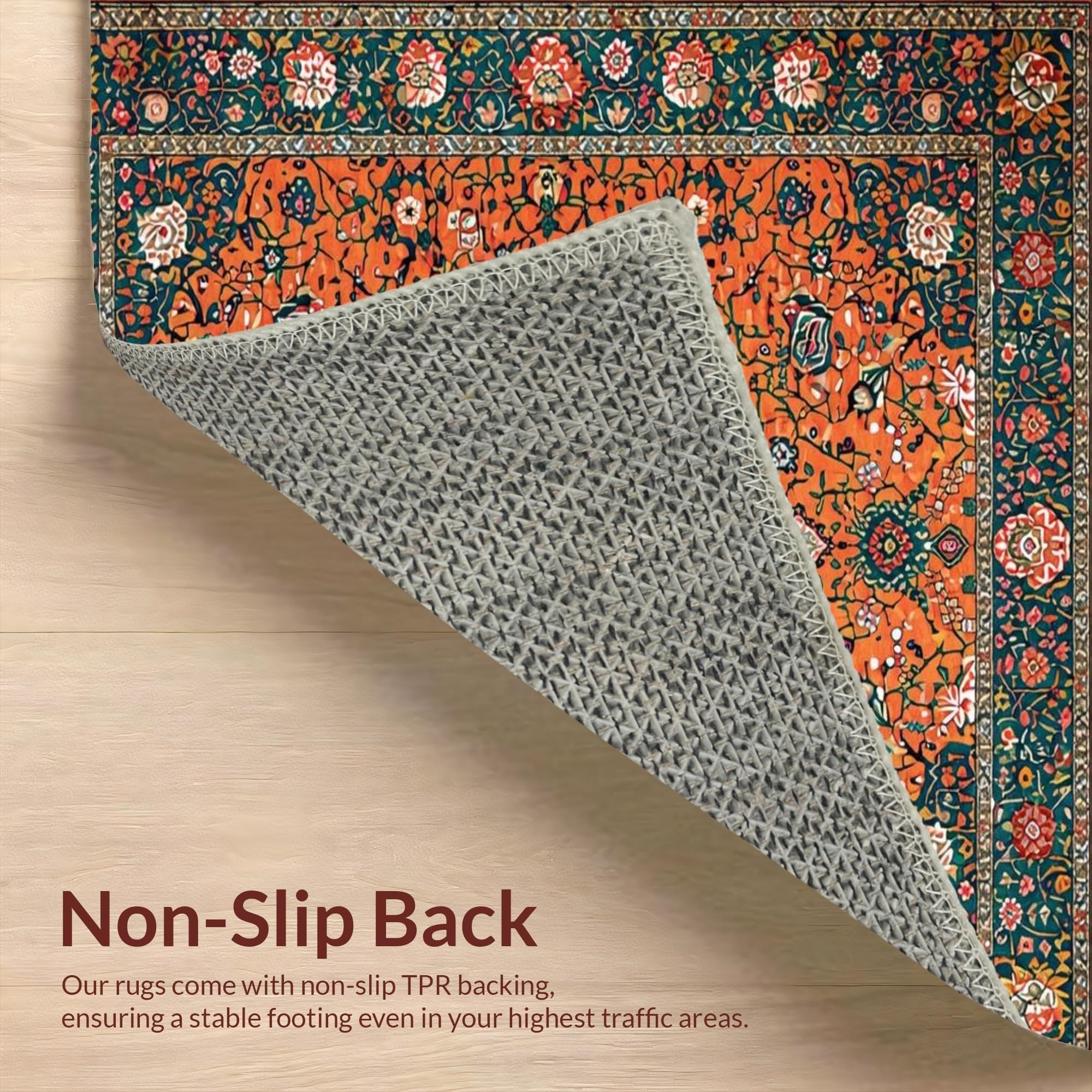 Ultra Soft Area Rug, Non Slip, Stain Resistant, Washable Area Rugs for Living Room, Bedroom, Rustic Earthy Boho Charm(Orange) Overview: