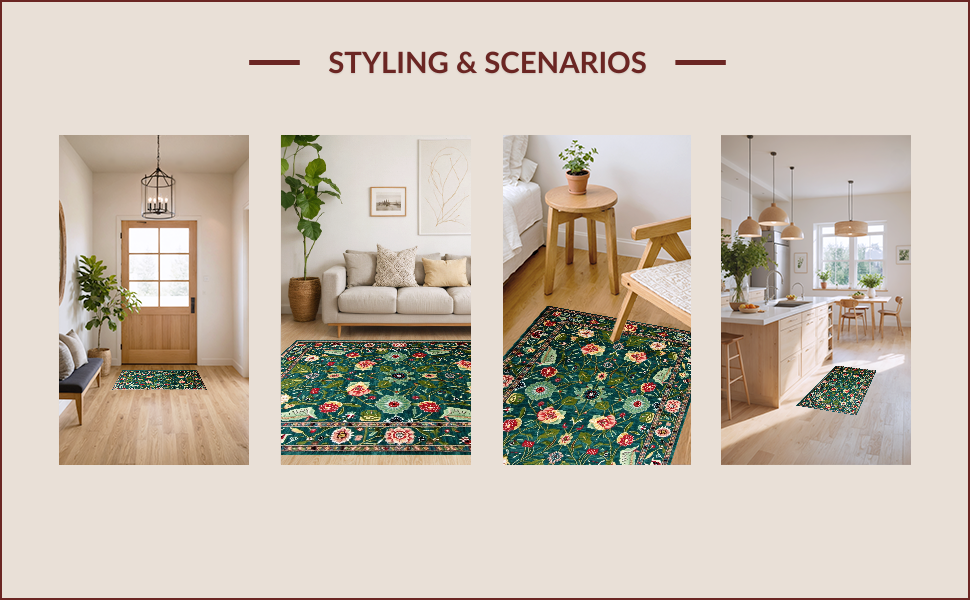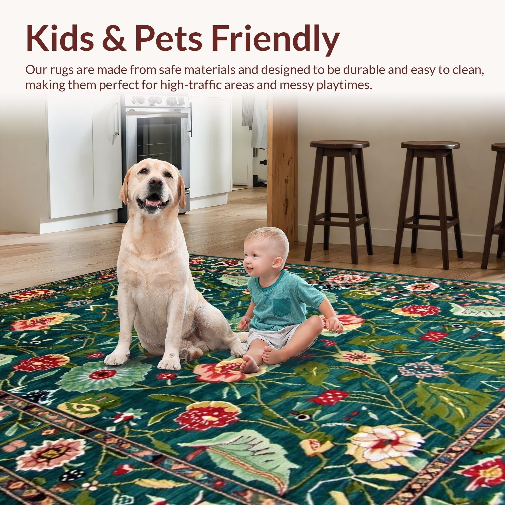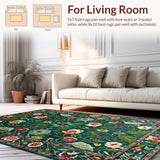Ultra Soft Area Rug, Non Slip, Stain Resistant, Washable Area Rugs for Living Room, Bedroom, Rustic Earthy Botanical Ensemble(Blue) Overview: