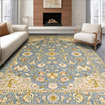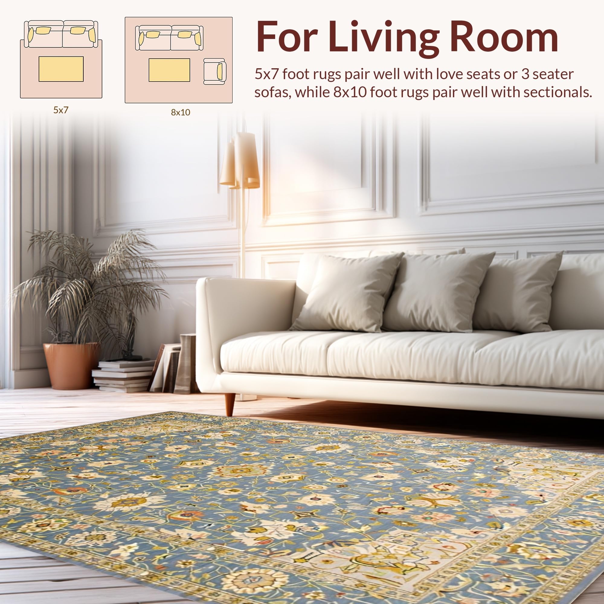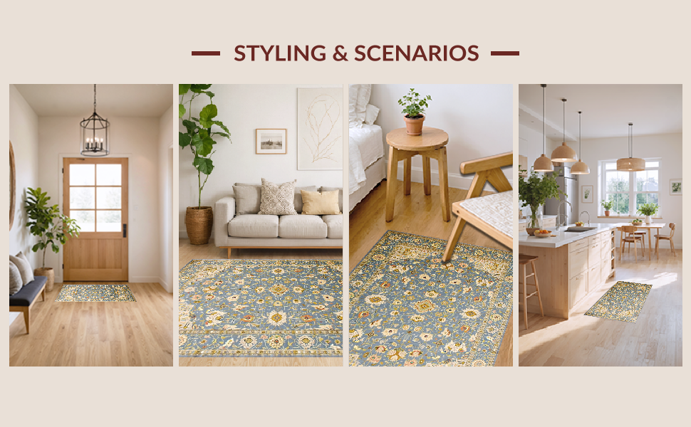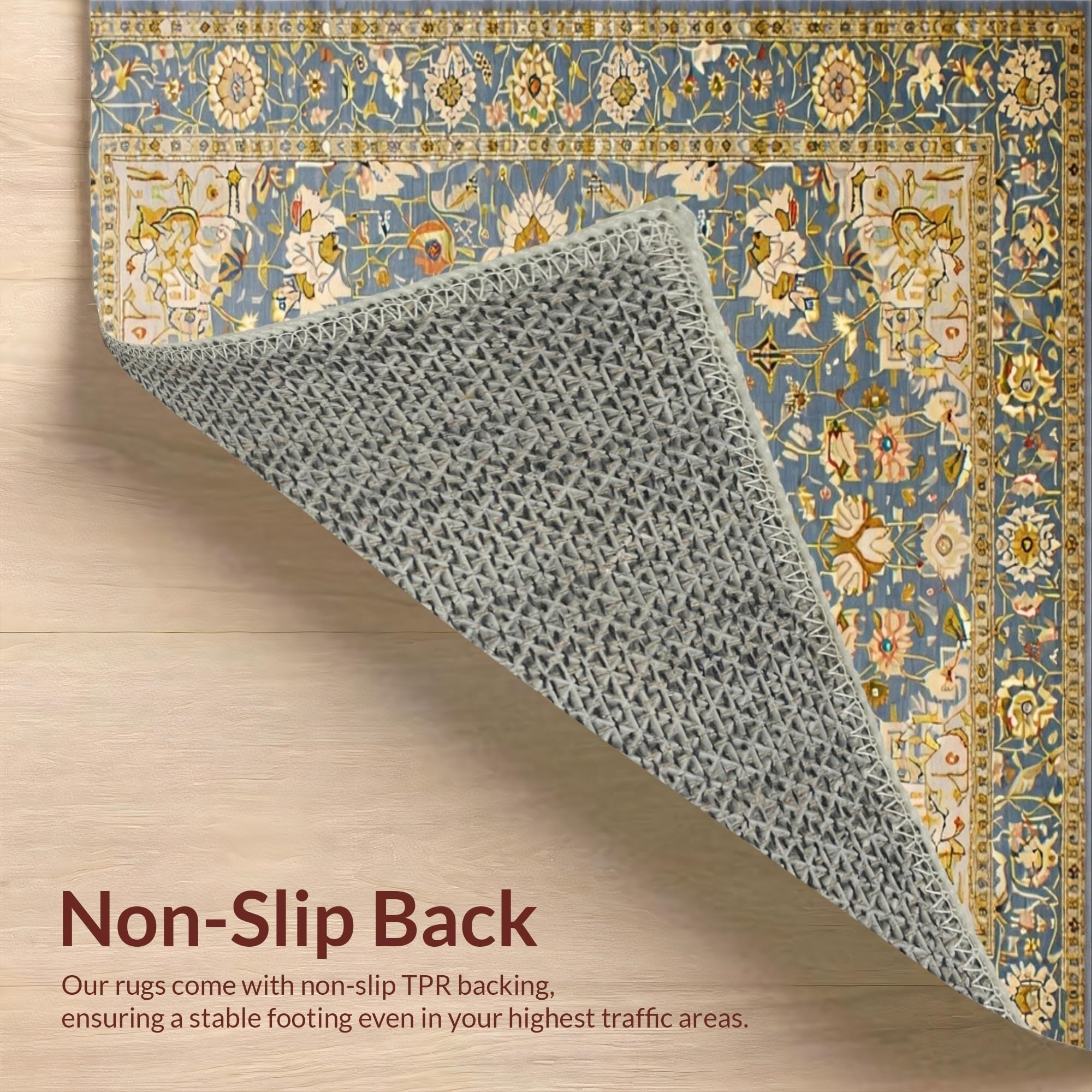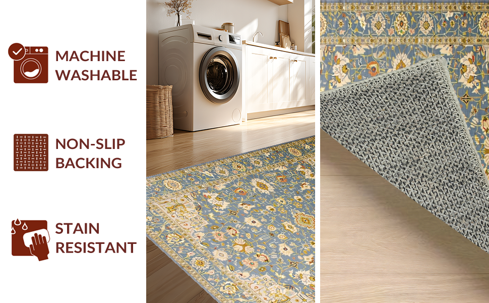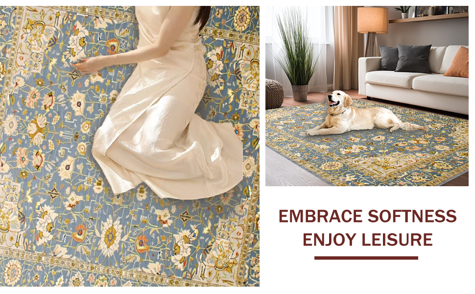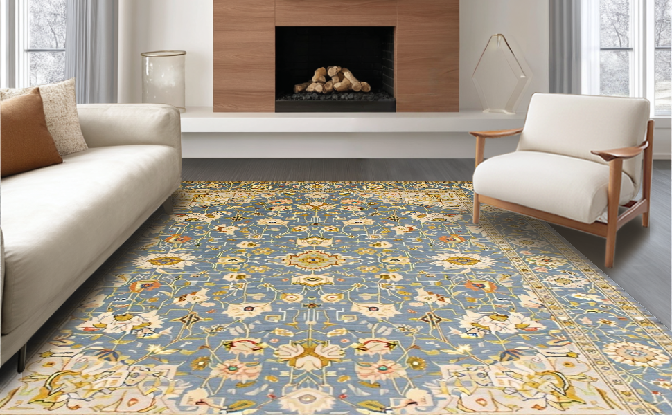 Ultra Soft Area Rug, Non Slip, Stain Resistant, Washable Area Rugs for Living Room, Bedroom, Rustic Earthy Floral Tiled Motif(Blue) Overview: