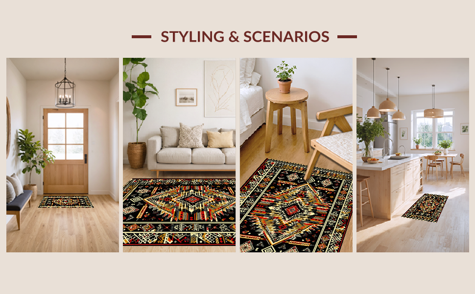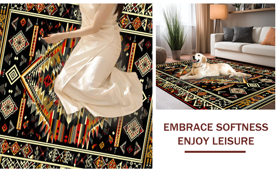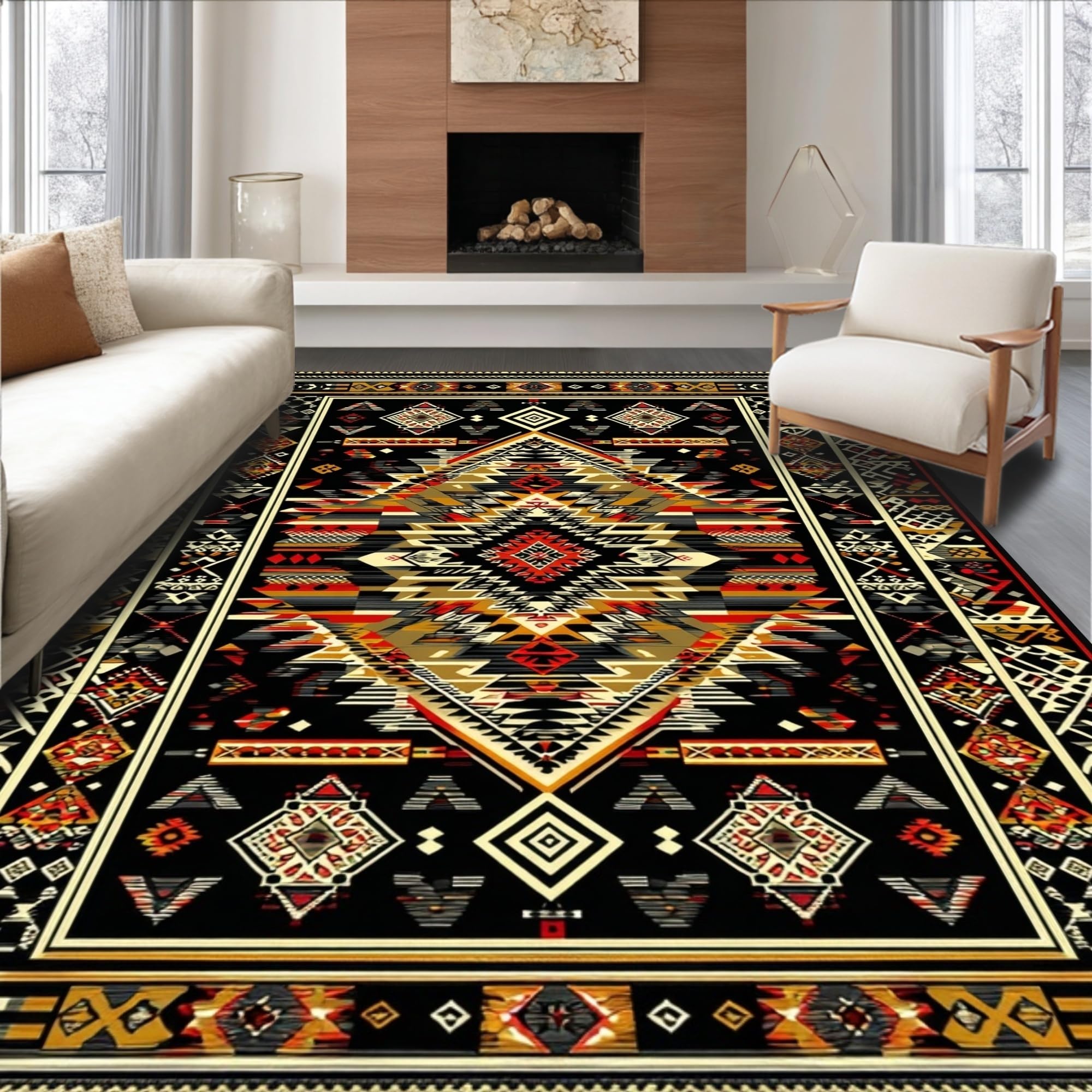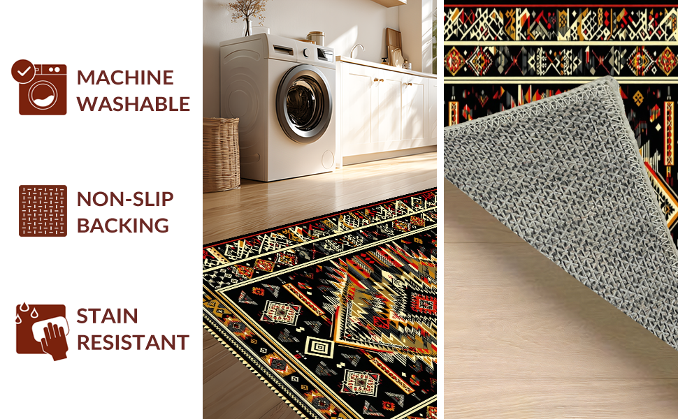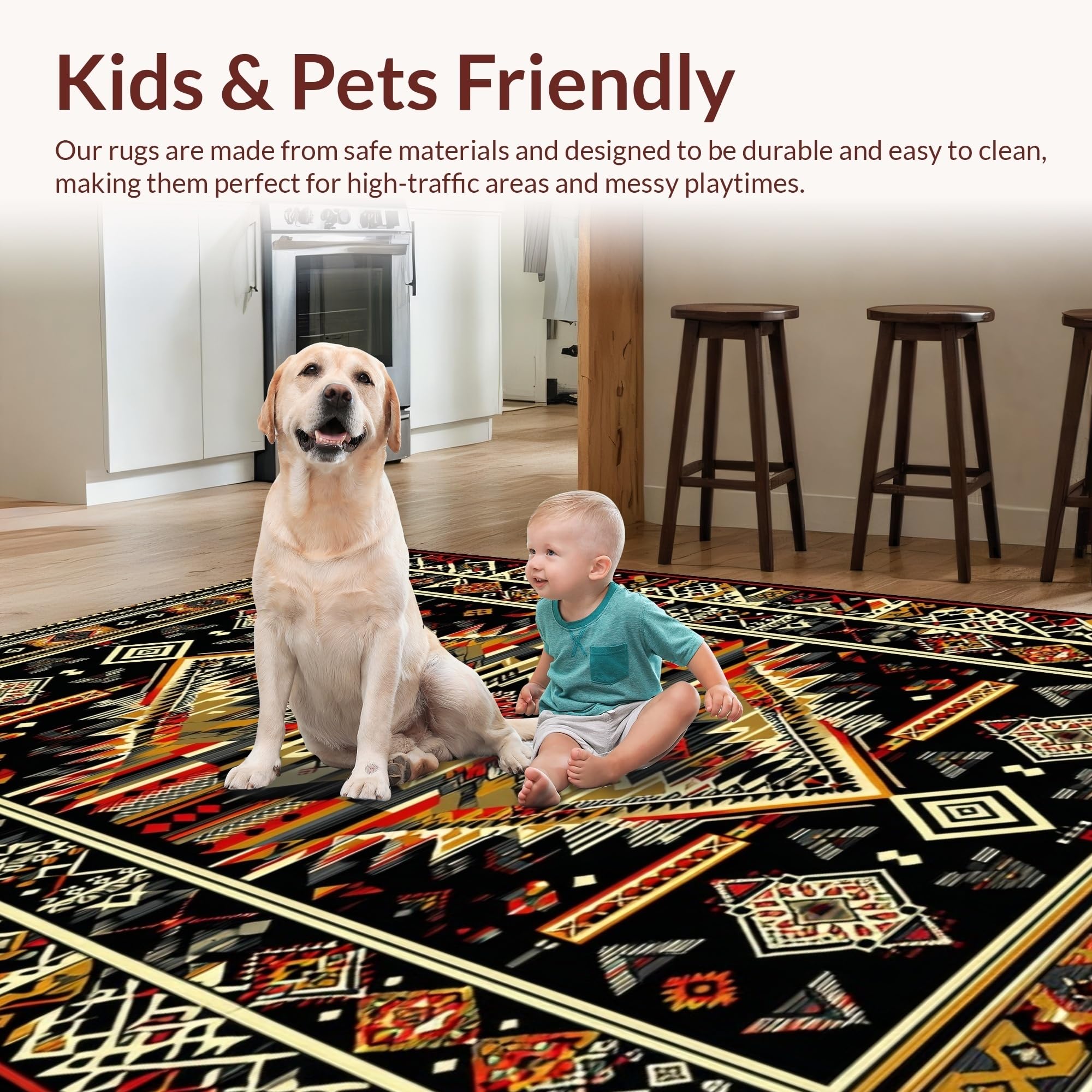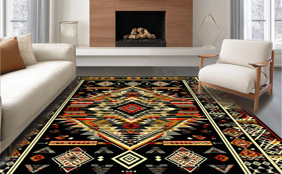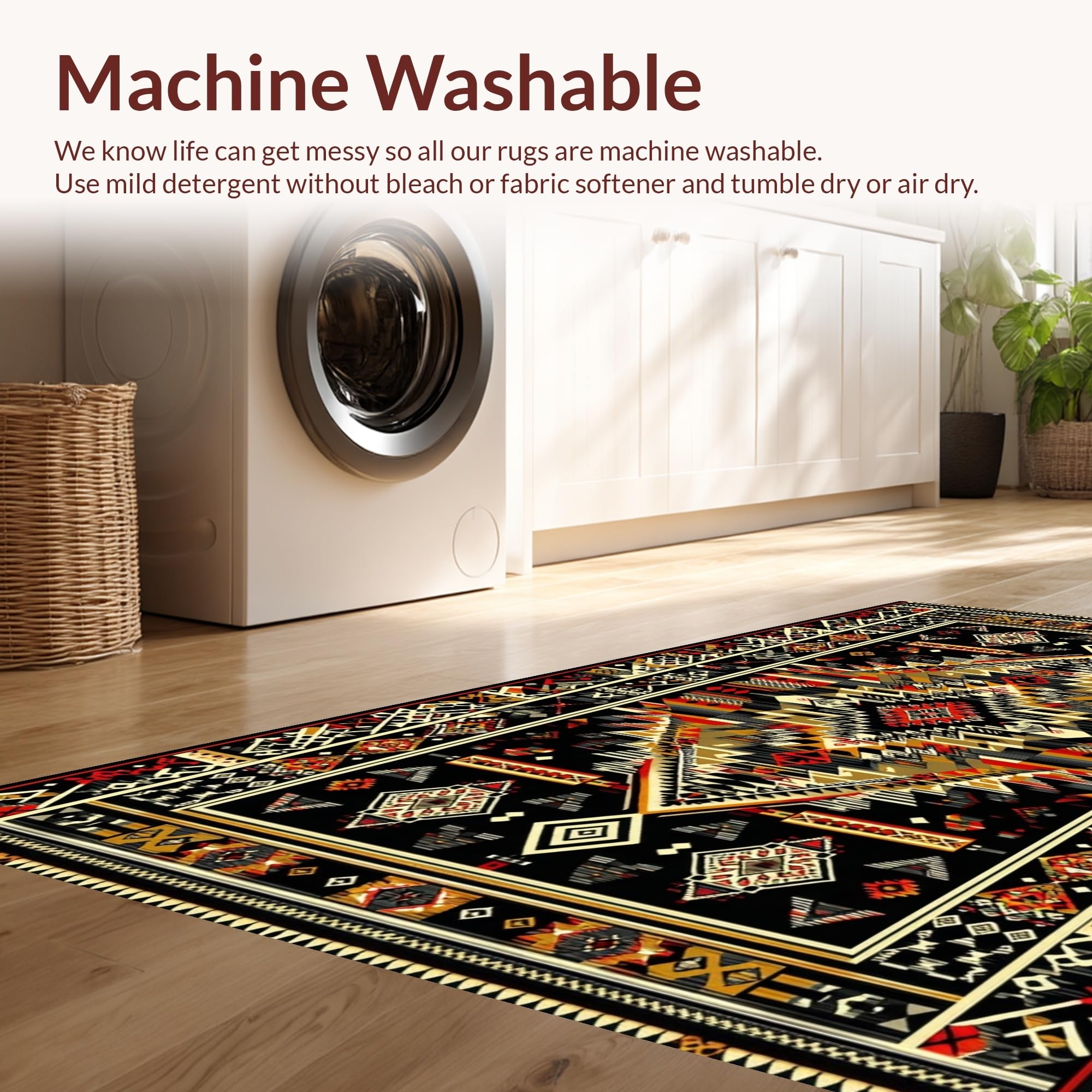 Ultra Soft Area Rug, Non Slip, Stain Resistant, Washable Area Rugs for Living Room, Bedroom, Rustic Earthy Geometric Accents(Black) Overview: