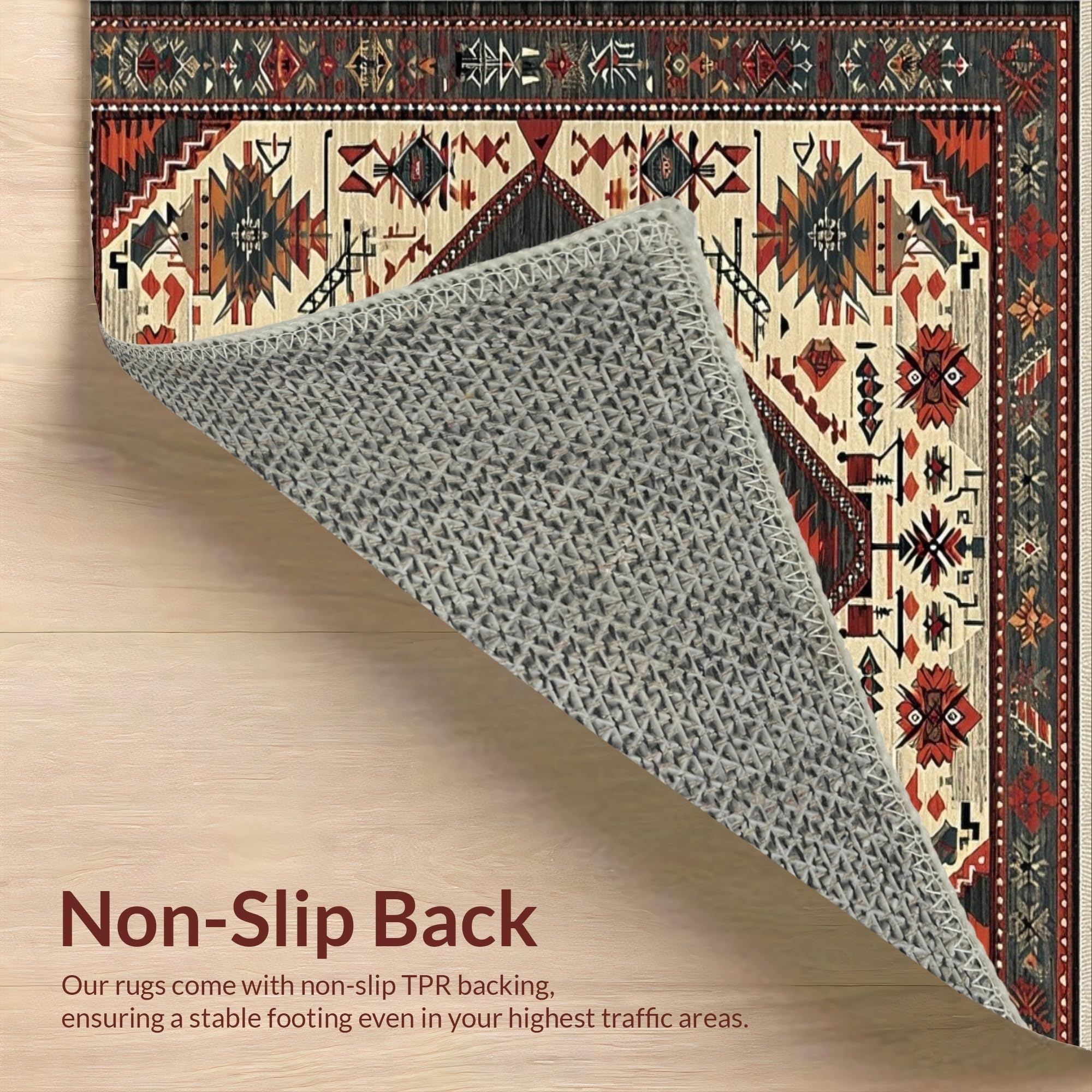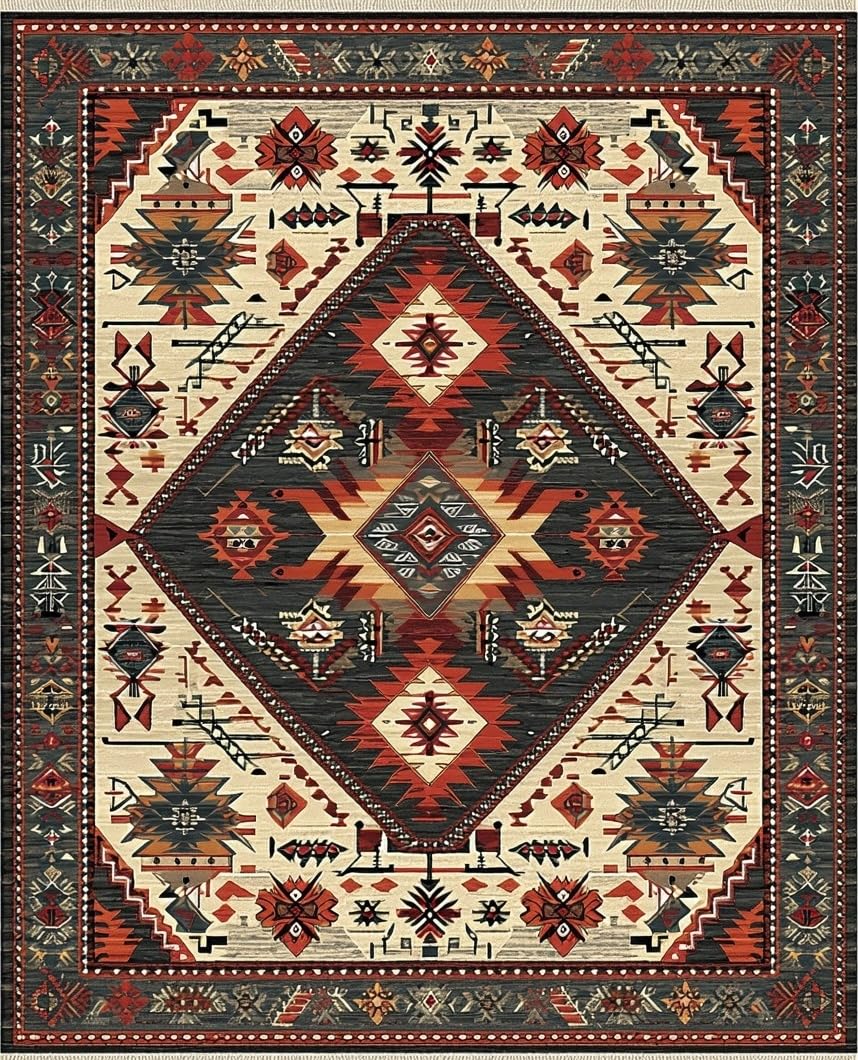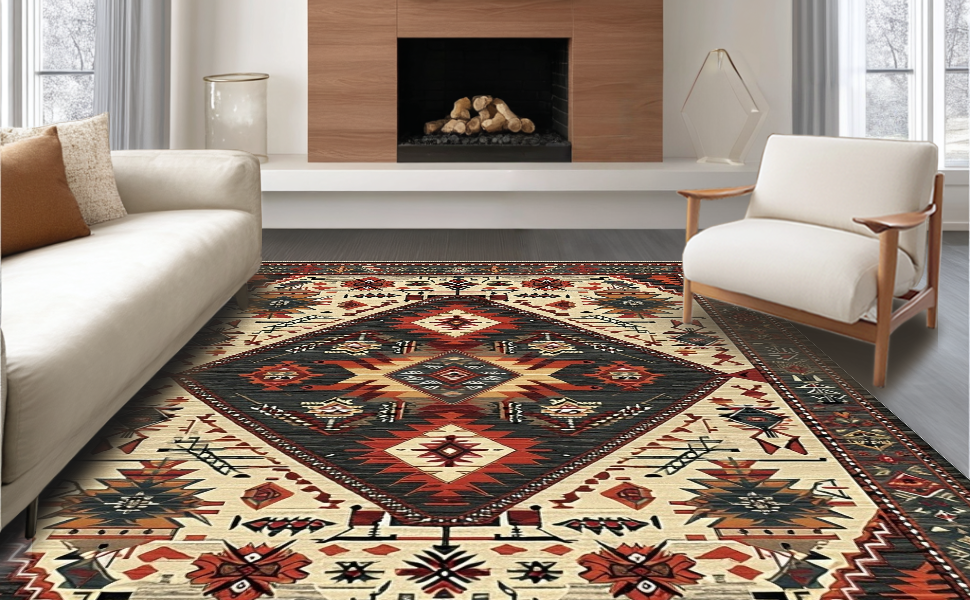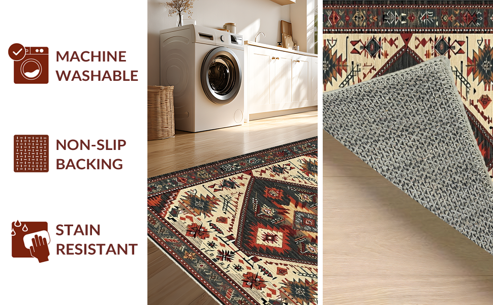 Ultra Soft Area Rug, Non Slip, Stain Resistant, Washable Area Rugs for Living Room, Bedroom, Rustic Earthy Geometric Design(Red) Overview: