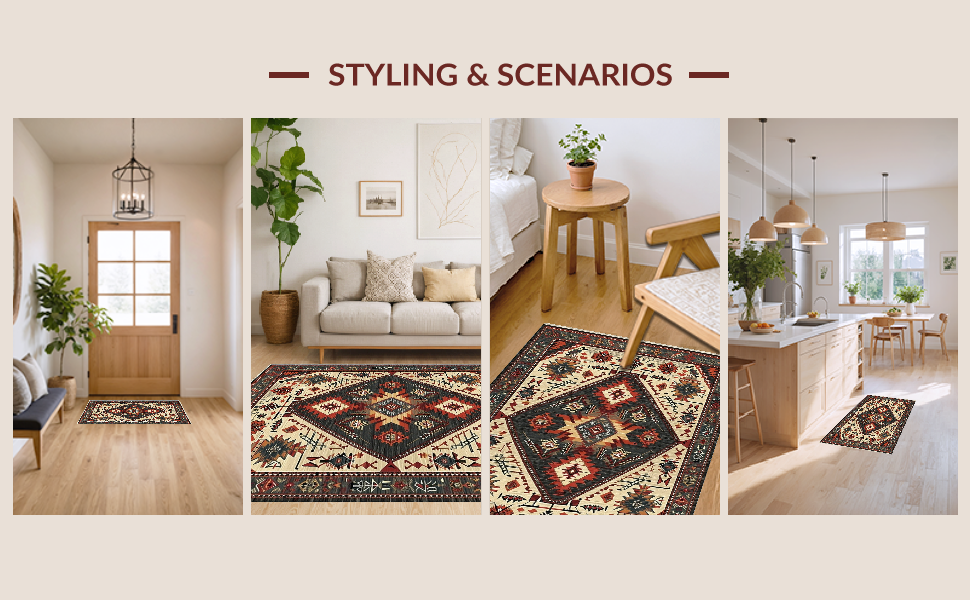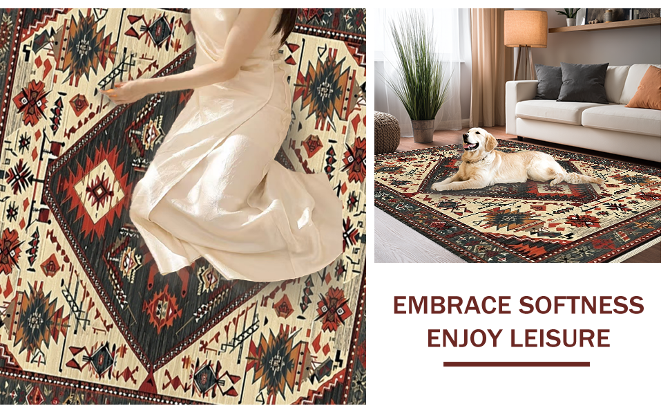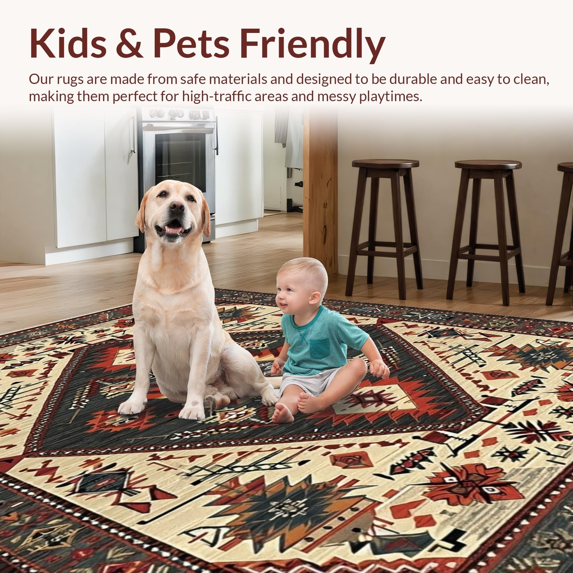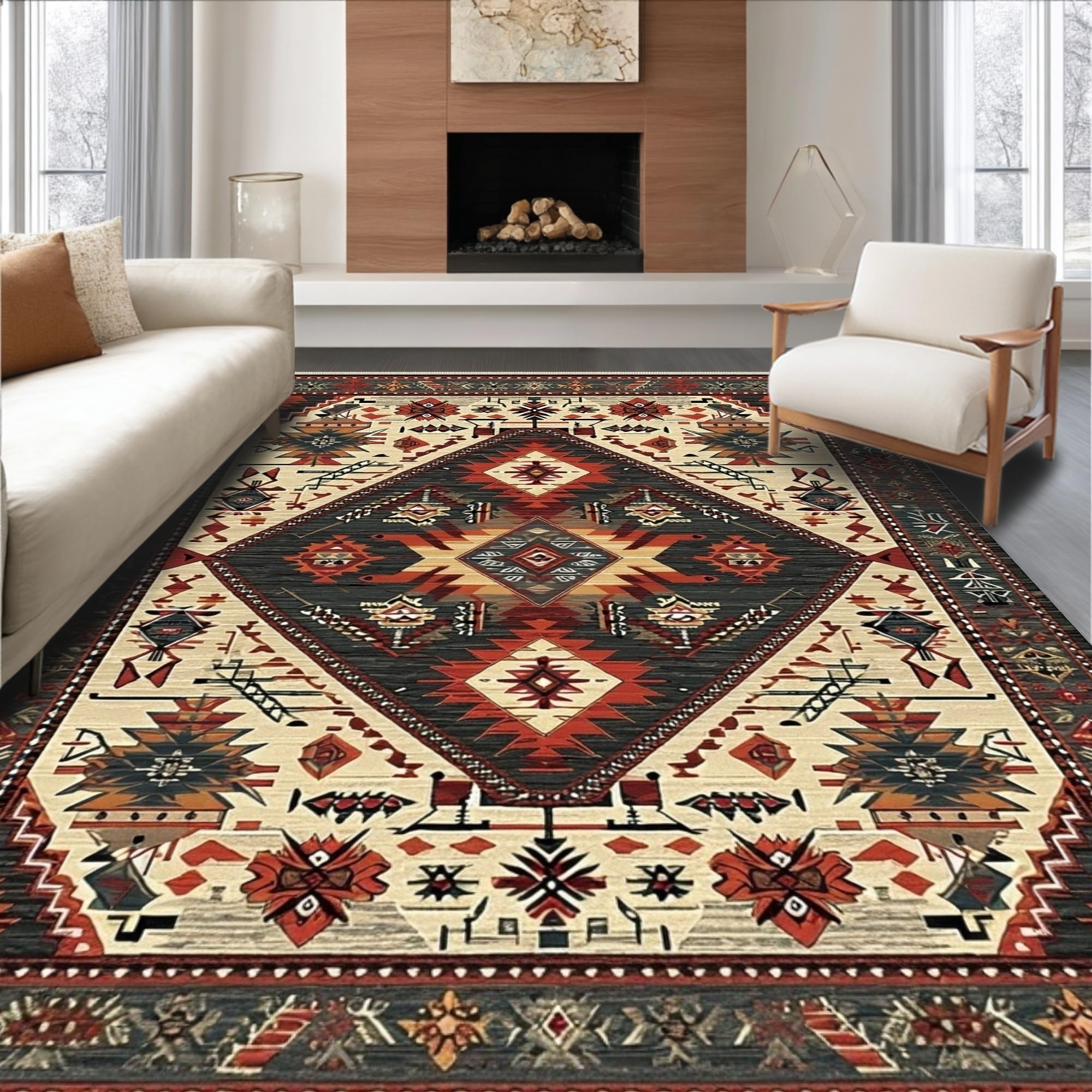 Ultra Soft Area Rug, Non Slip, Stain Resistant, Washable Area Rugs for Living Room, Bedroom, Rustic Earthy Geometric Design(Red) Overview: