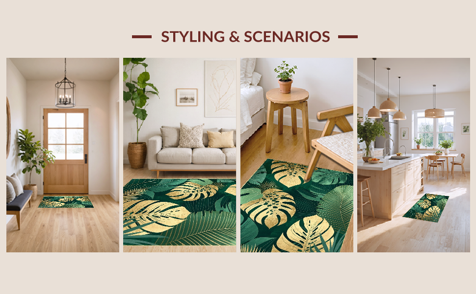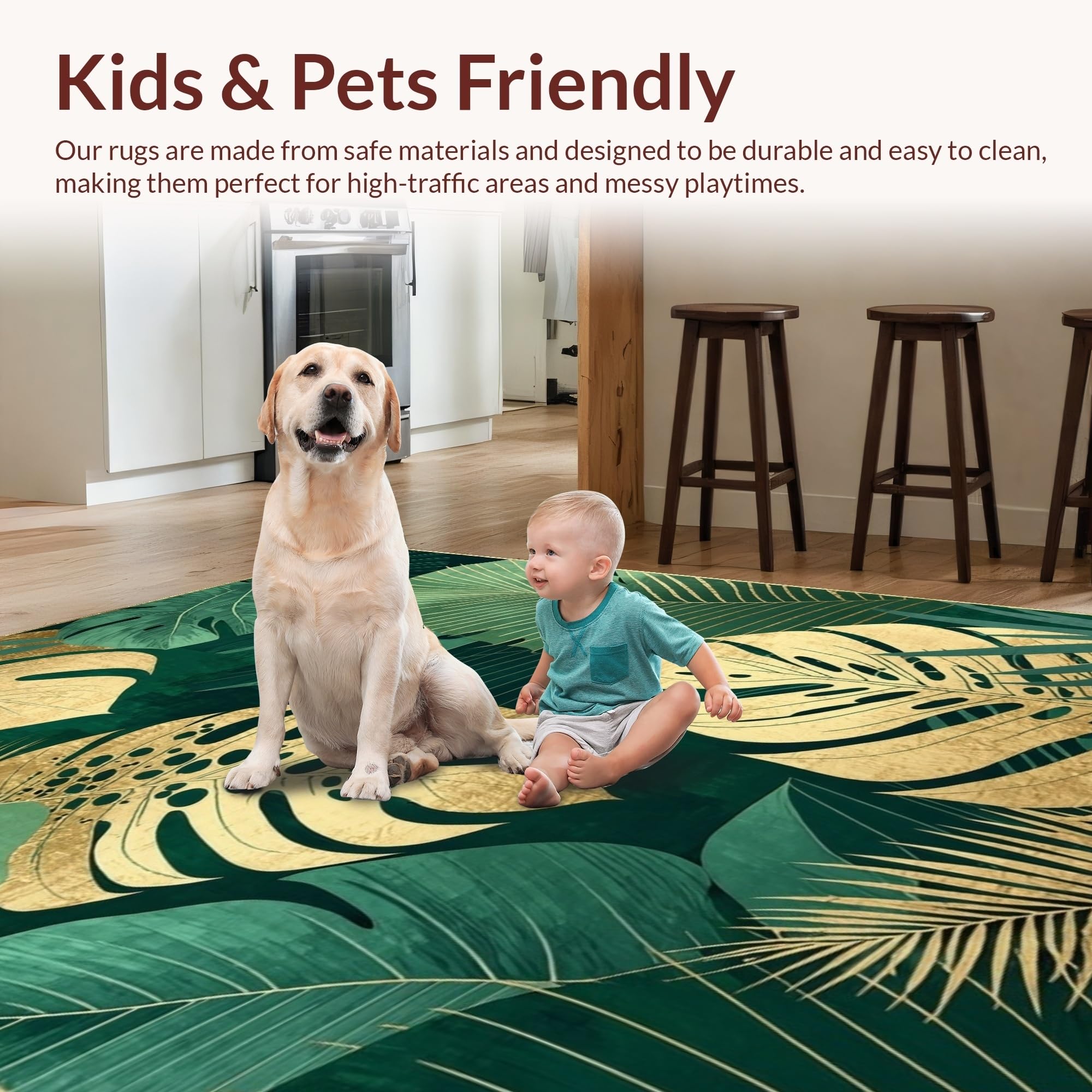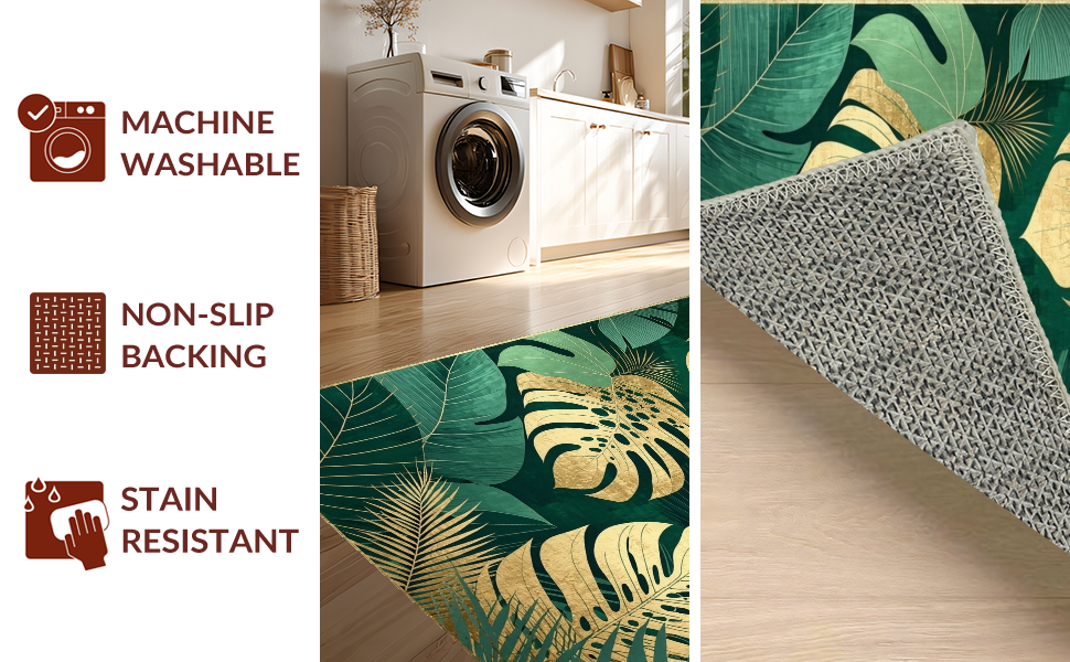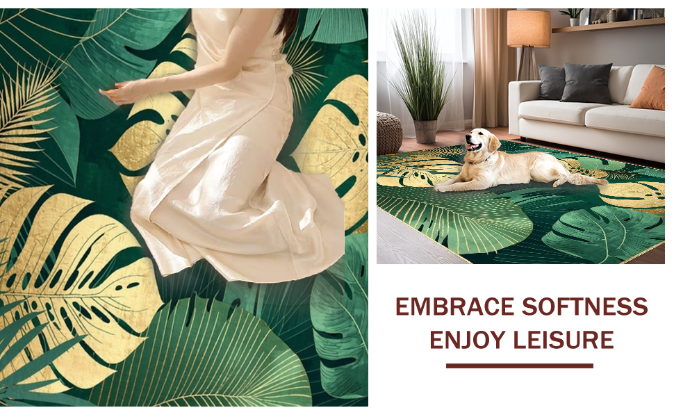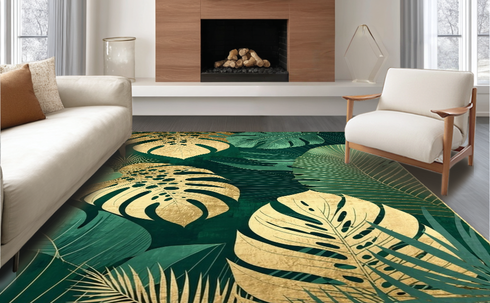 Ultra Soft Area Rug, Non Slip, Stain Resistant, Washable Area Rugs for Living Room, Bedroom, Rustic Earthy Leafy Charm(Green) Overview: