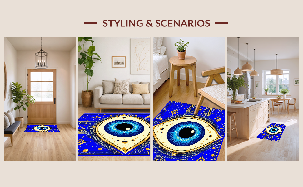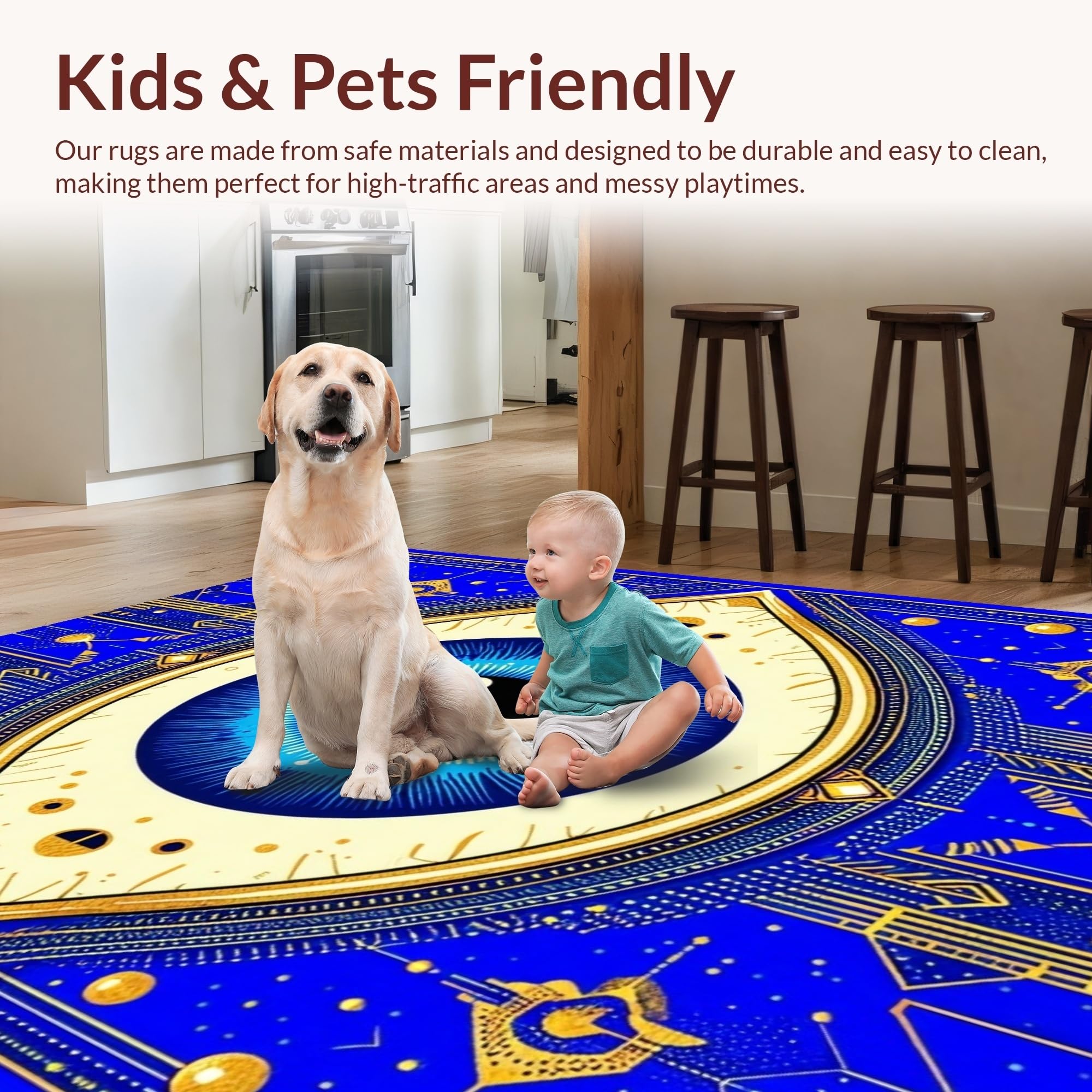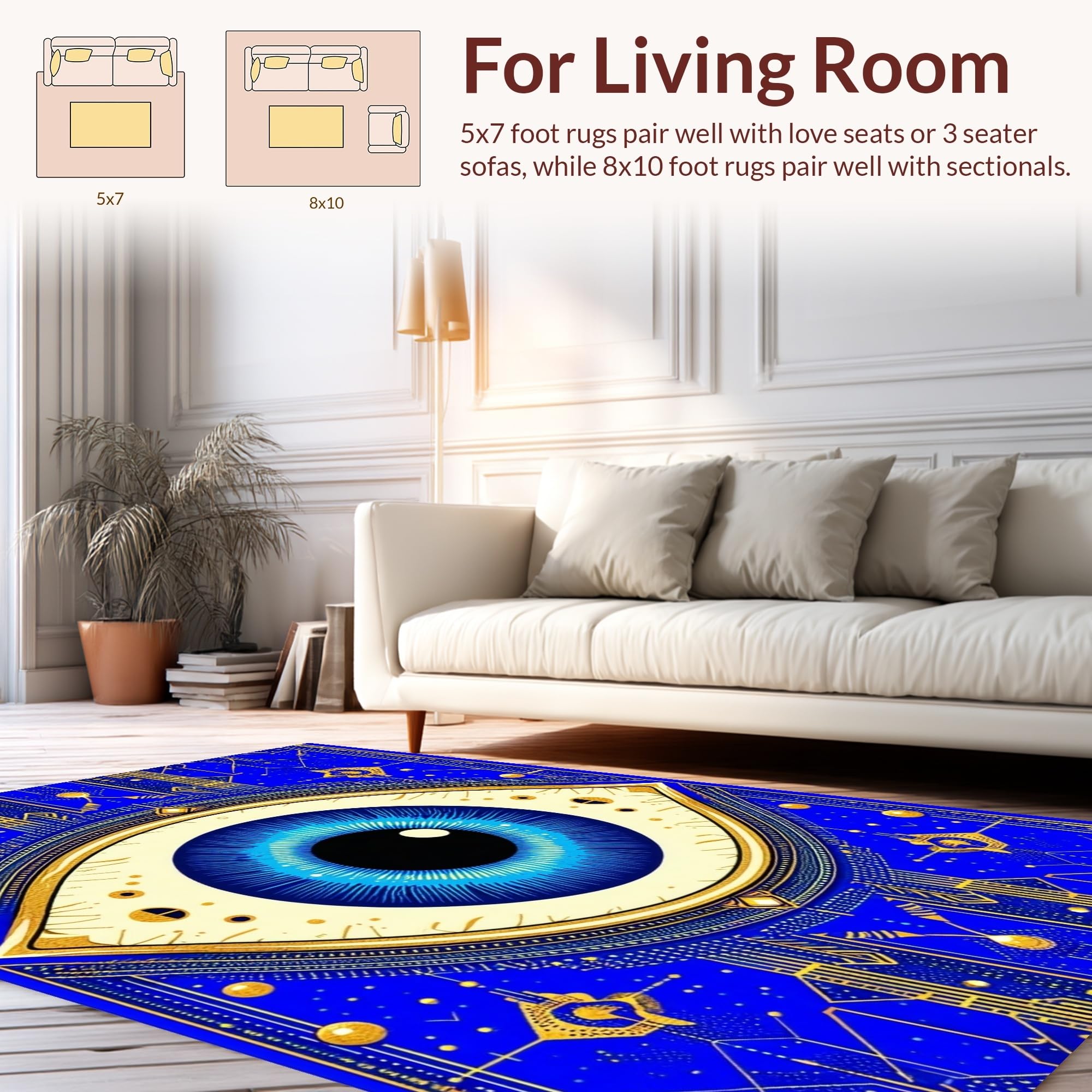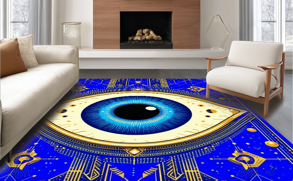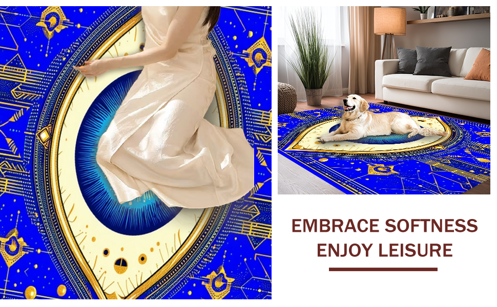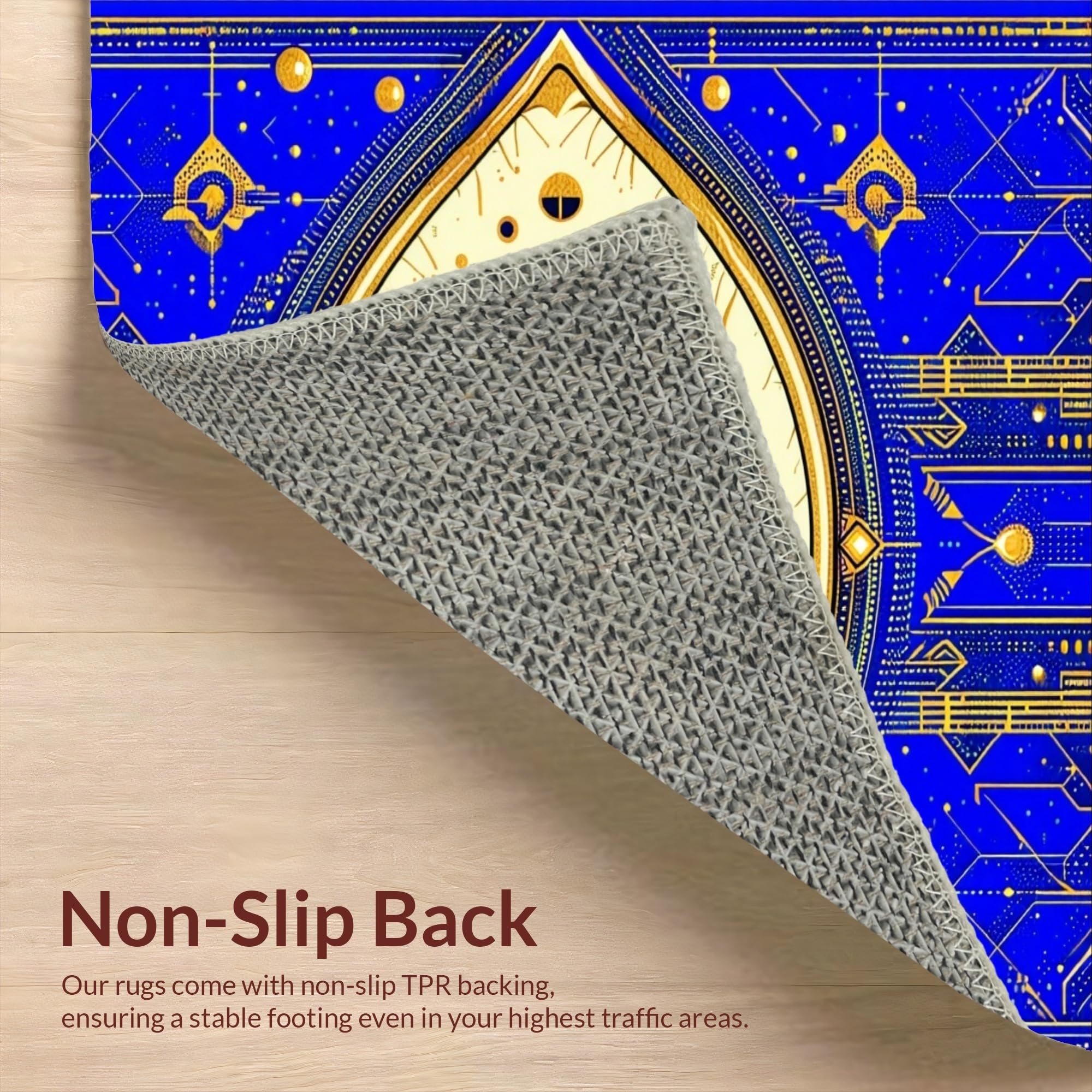 Ultra Soft Area Rug, Non Slip, Stain Resistant, Washable Area Rugs for Living Room, Bedroom, Rustic Earthy Ogee Patterns(Blue) Overview: