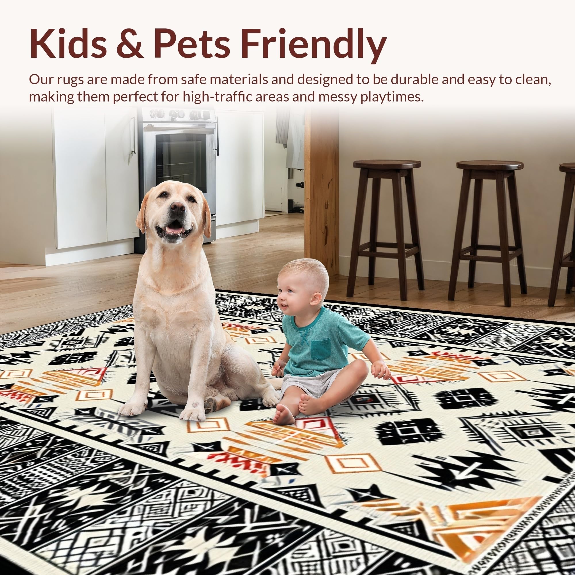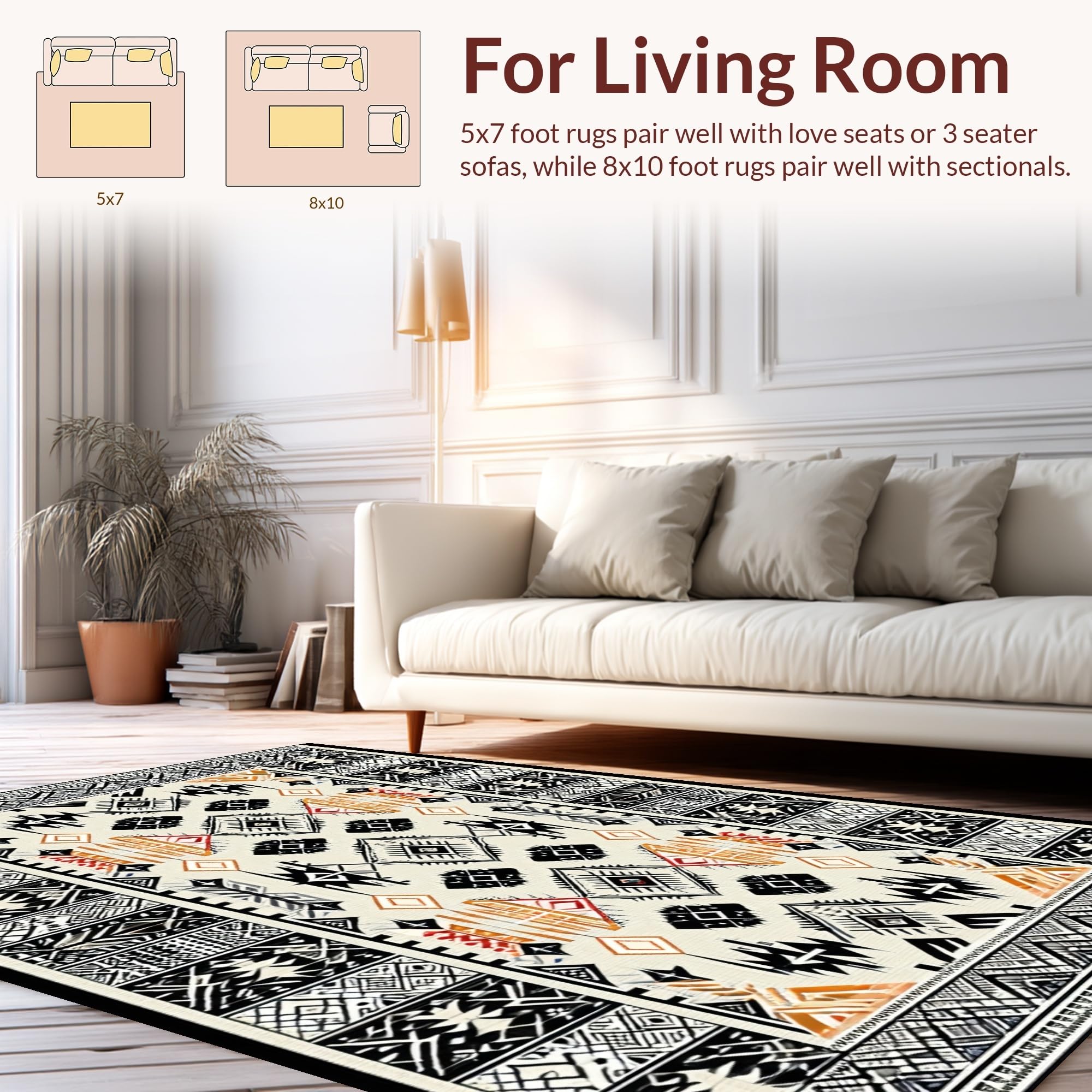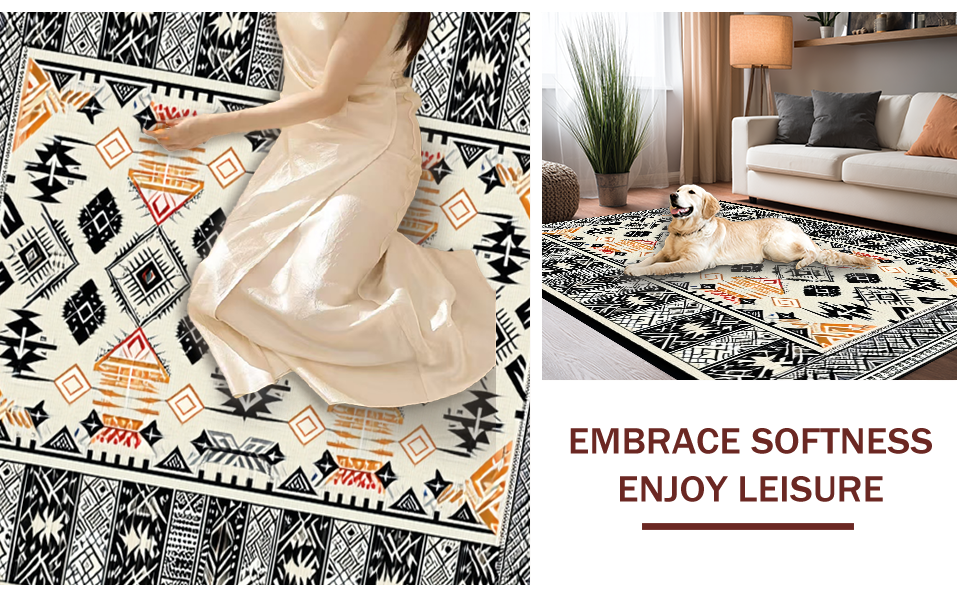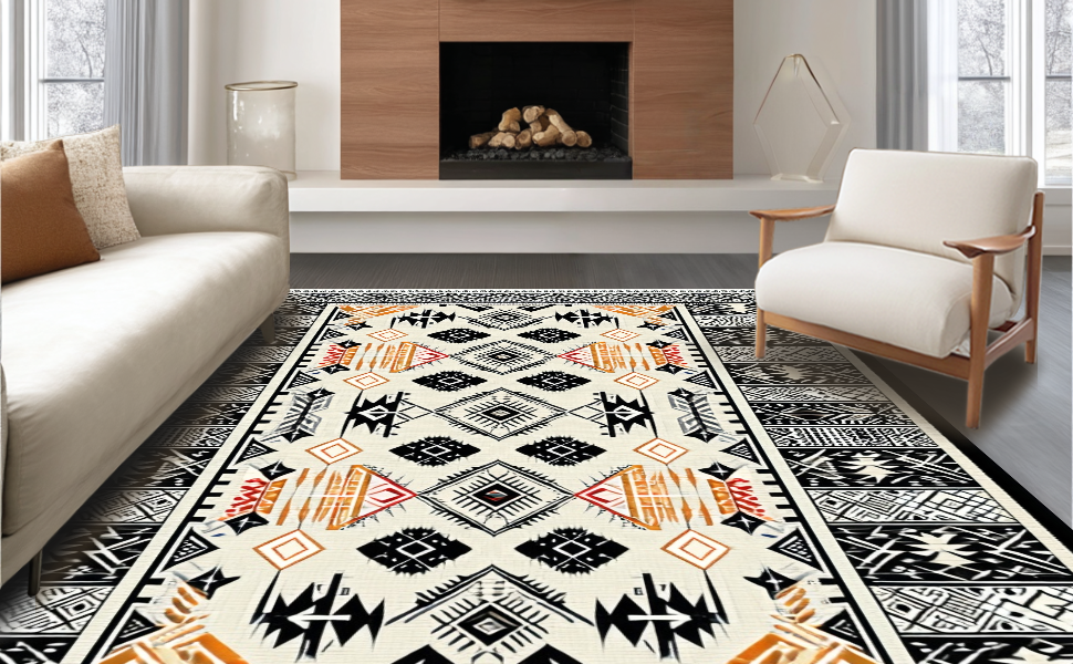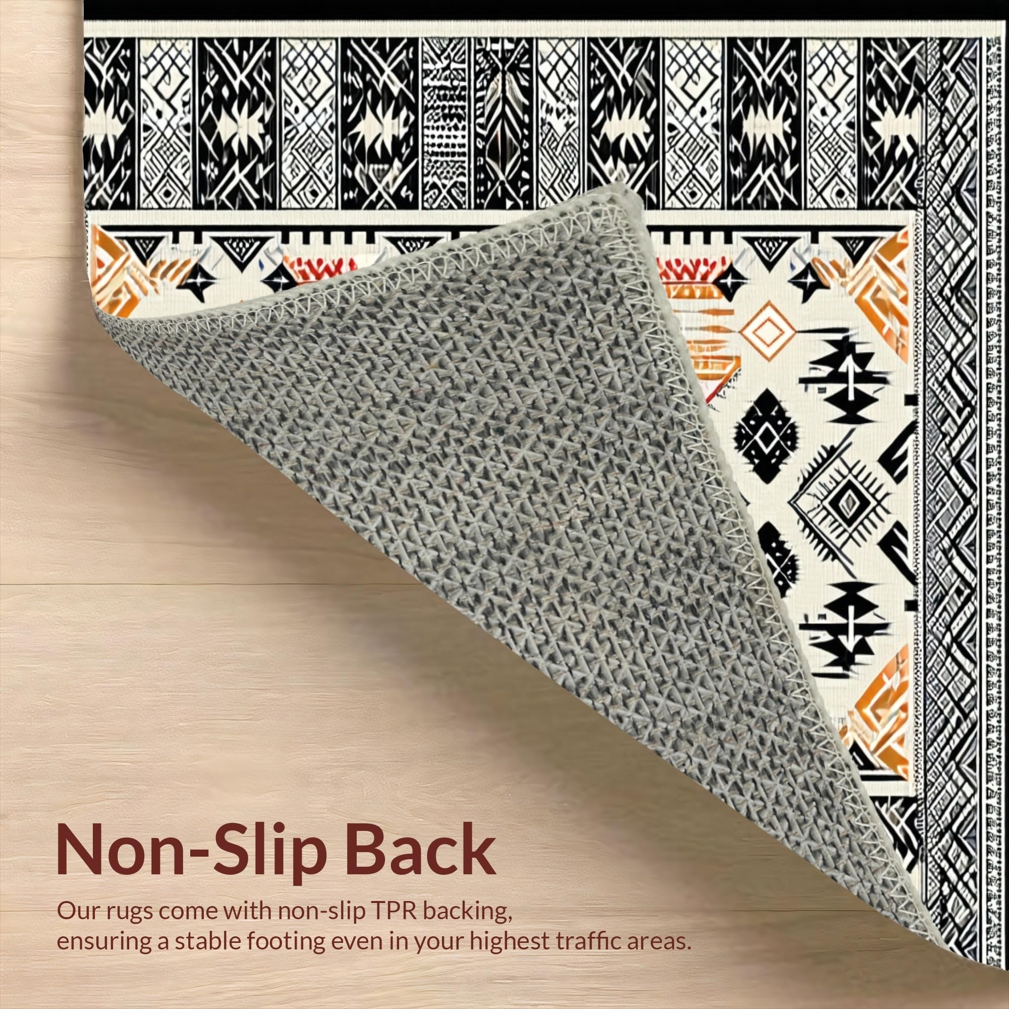 Ultra Soft Area Rug, Non Slip, Stain Resistant, Washable Area Rugs for Living Room, Bedroom, Rustic Earthy Toned Linear Design(Black) Overview: