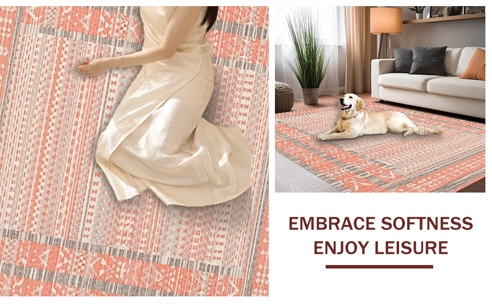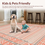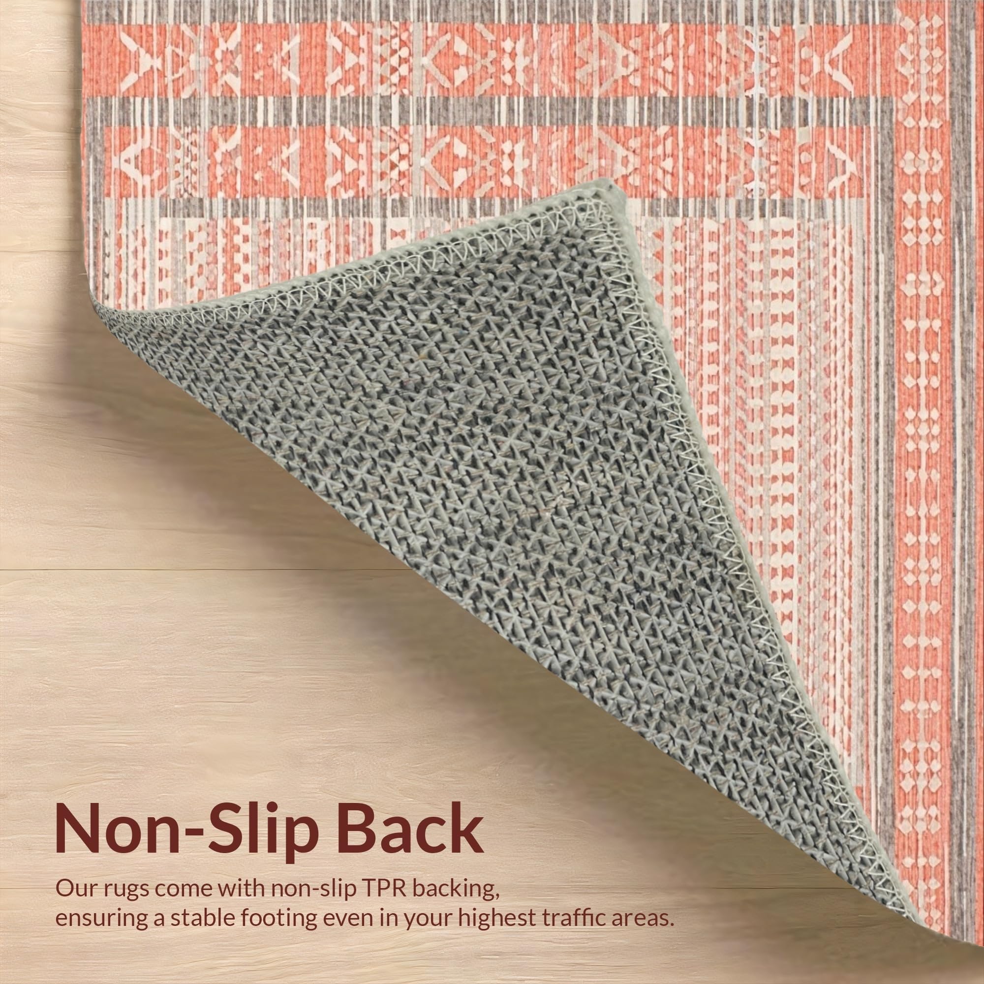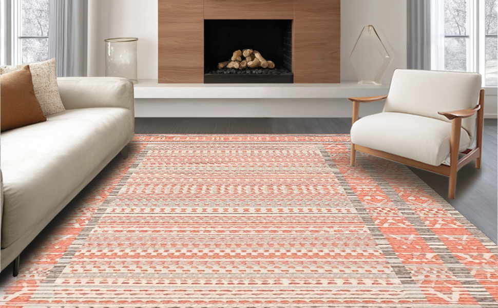 Ultra Soft Area Rug, Non Slip, Stain Resistant, Washable Area Rugs for Living Room, Bedroom, Rustic Earthy Tones Striped Design(Red) Overview: