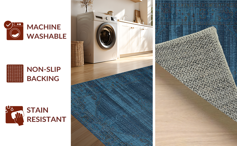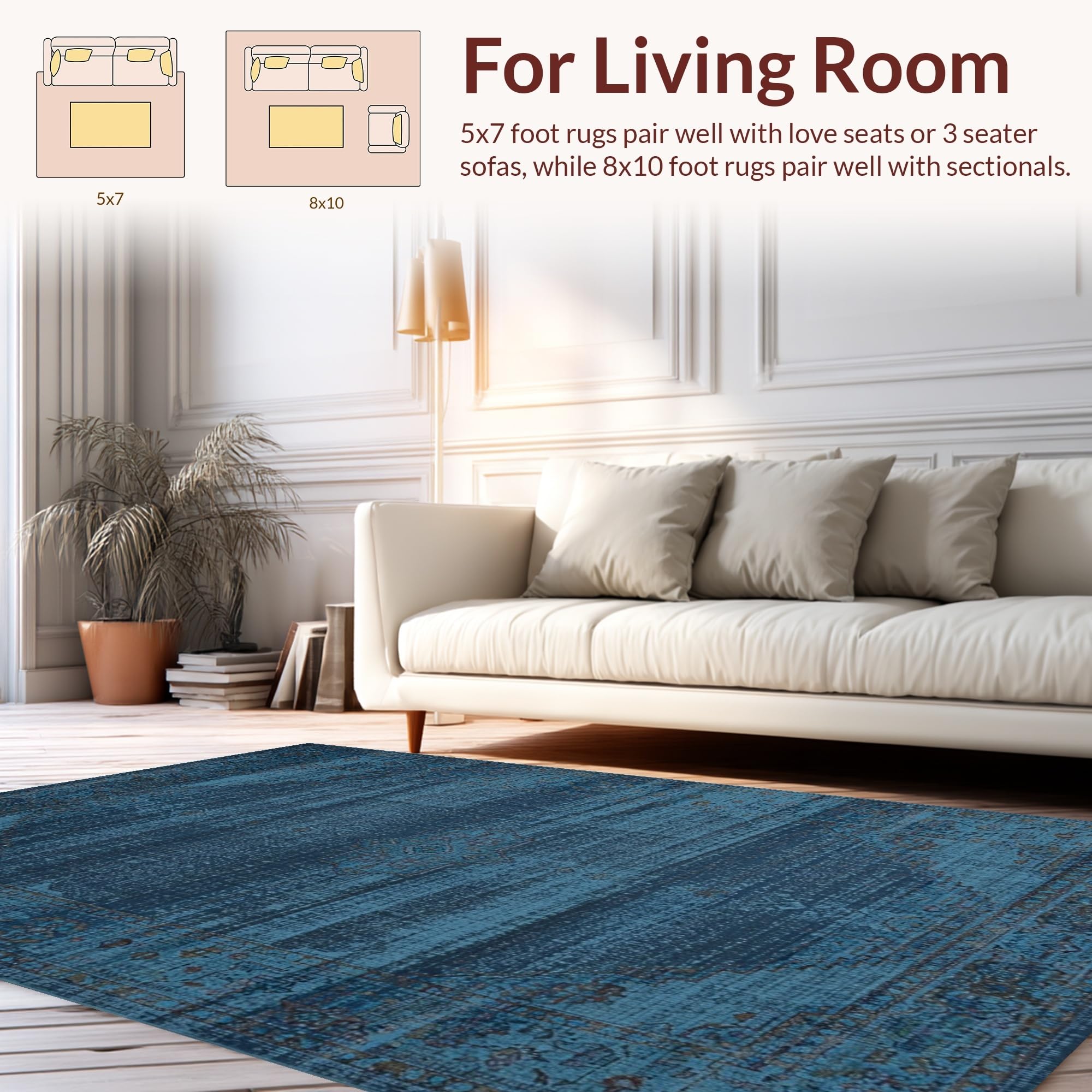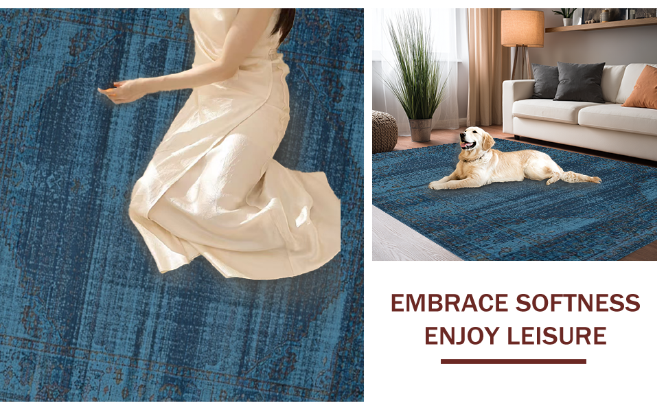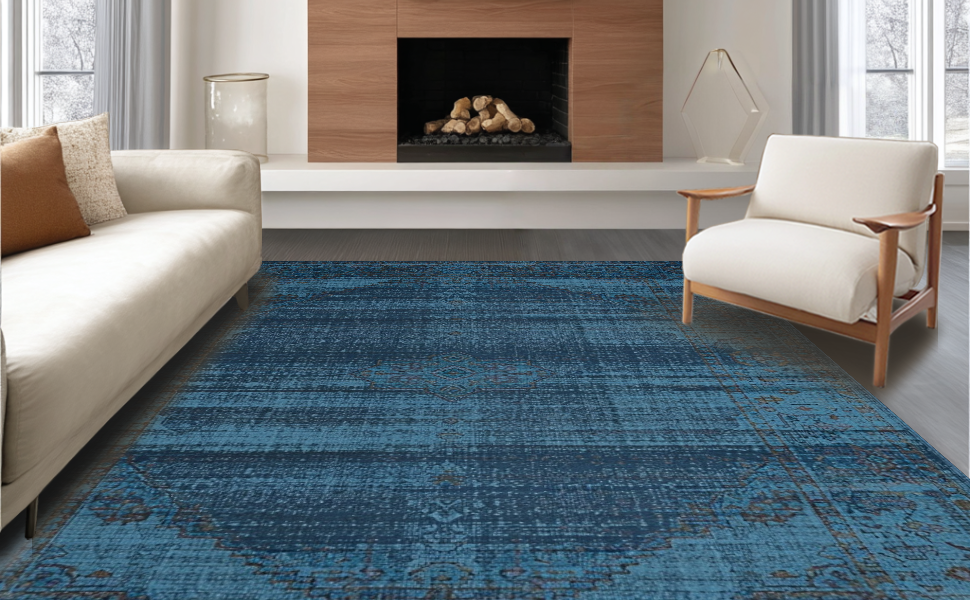 Ultra Soft Area Rug, Non Slip, Stain Resistant, Washable Area Rugs for Living Room, Bedroom, Rustic Earthy Tones with Retro Appeal(Blue) Overview: