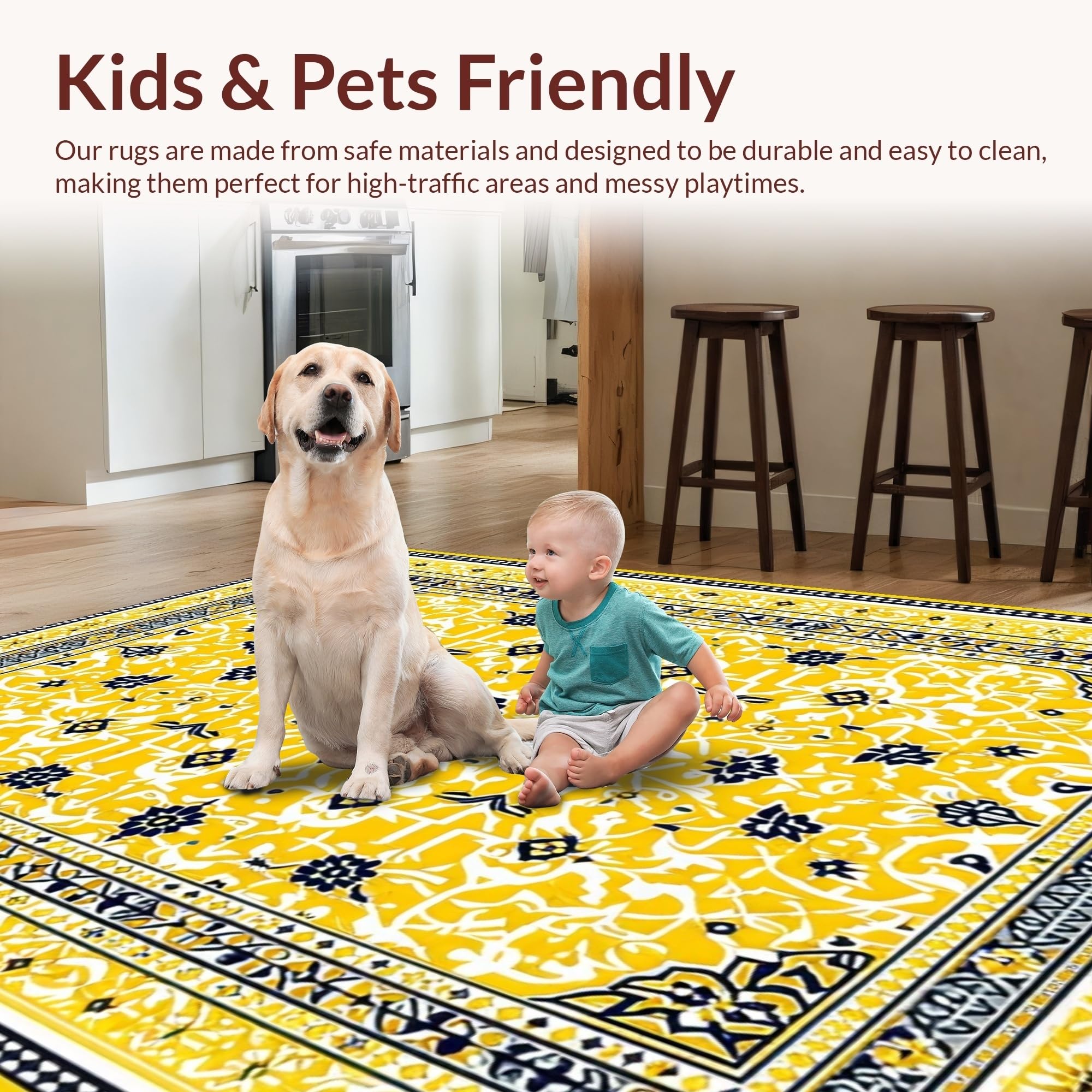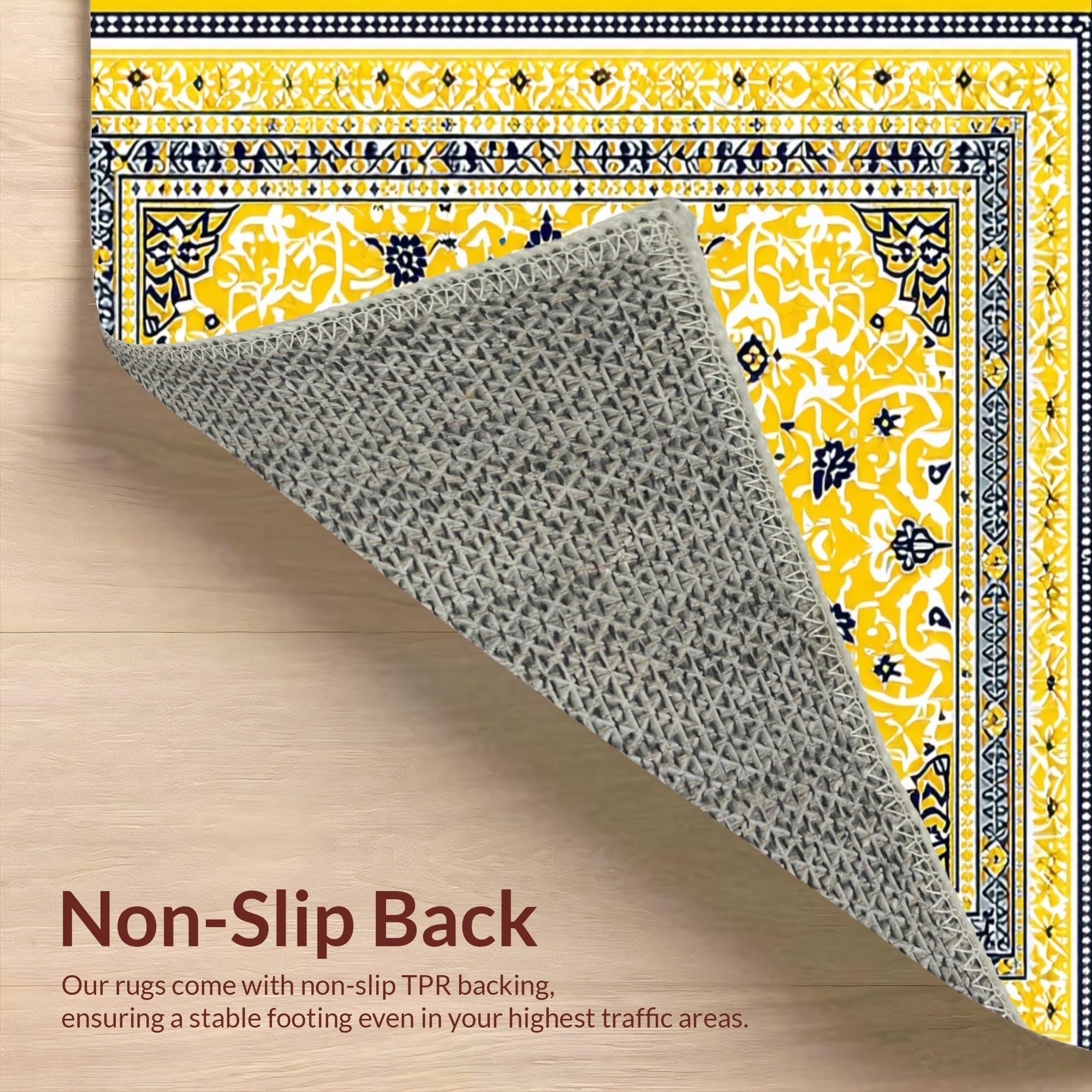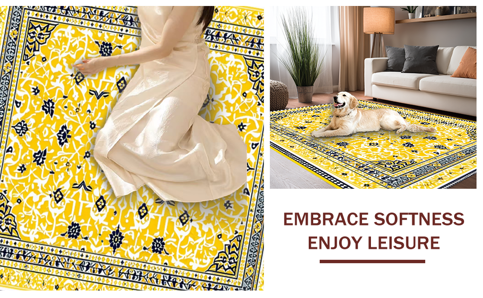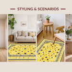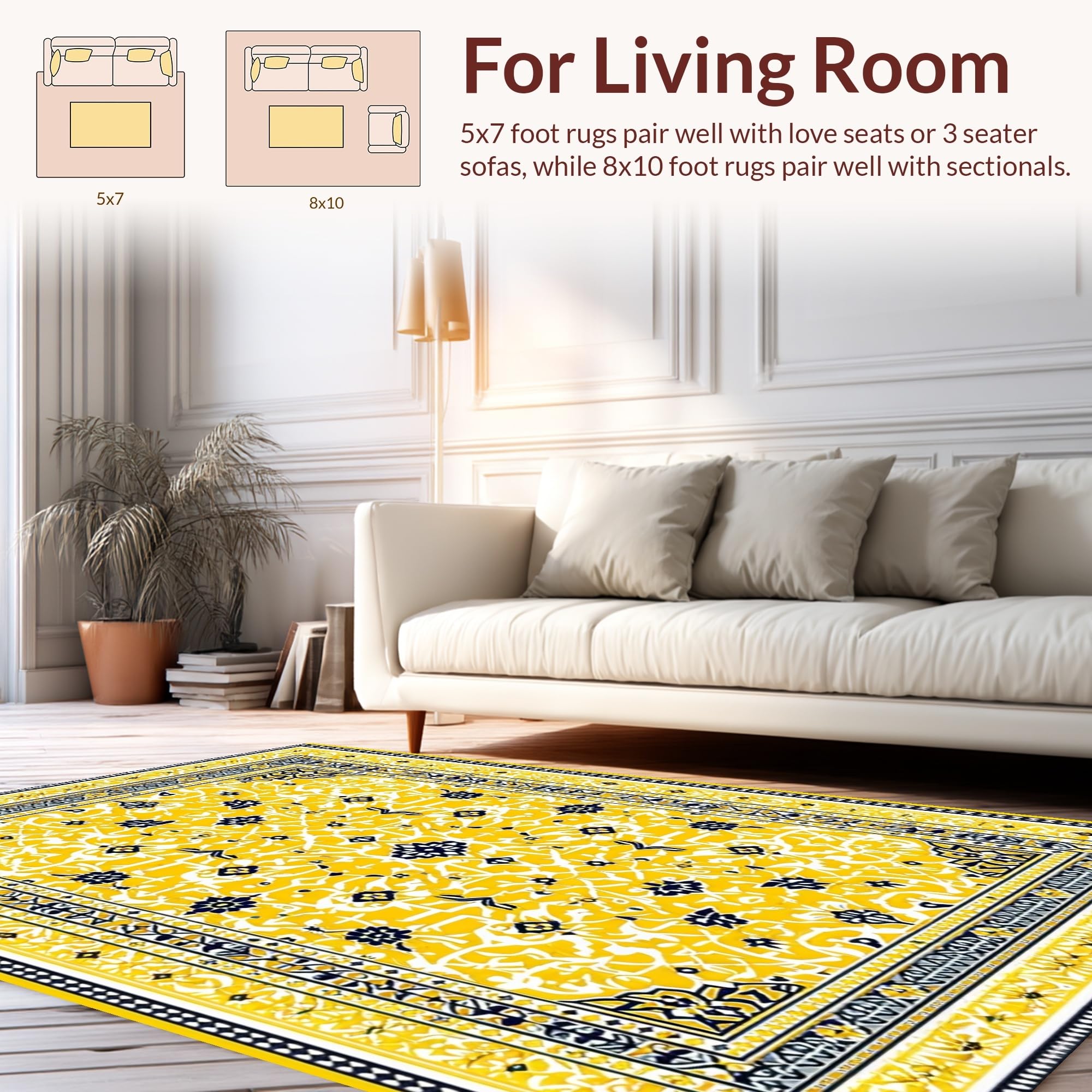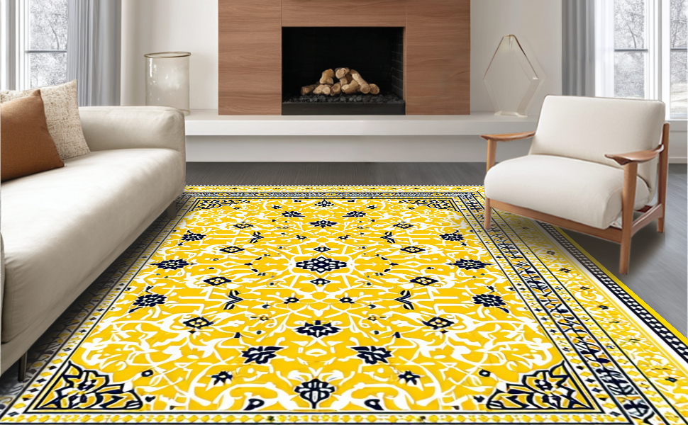 Ultra Soft Area Rug, Non Slip, Stain Resistant, Washable Area Rugs for Living Room, Bedroom, Rustic Earthy Trellis Aesthetic(Yellow) Overview: