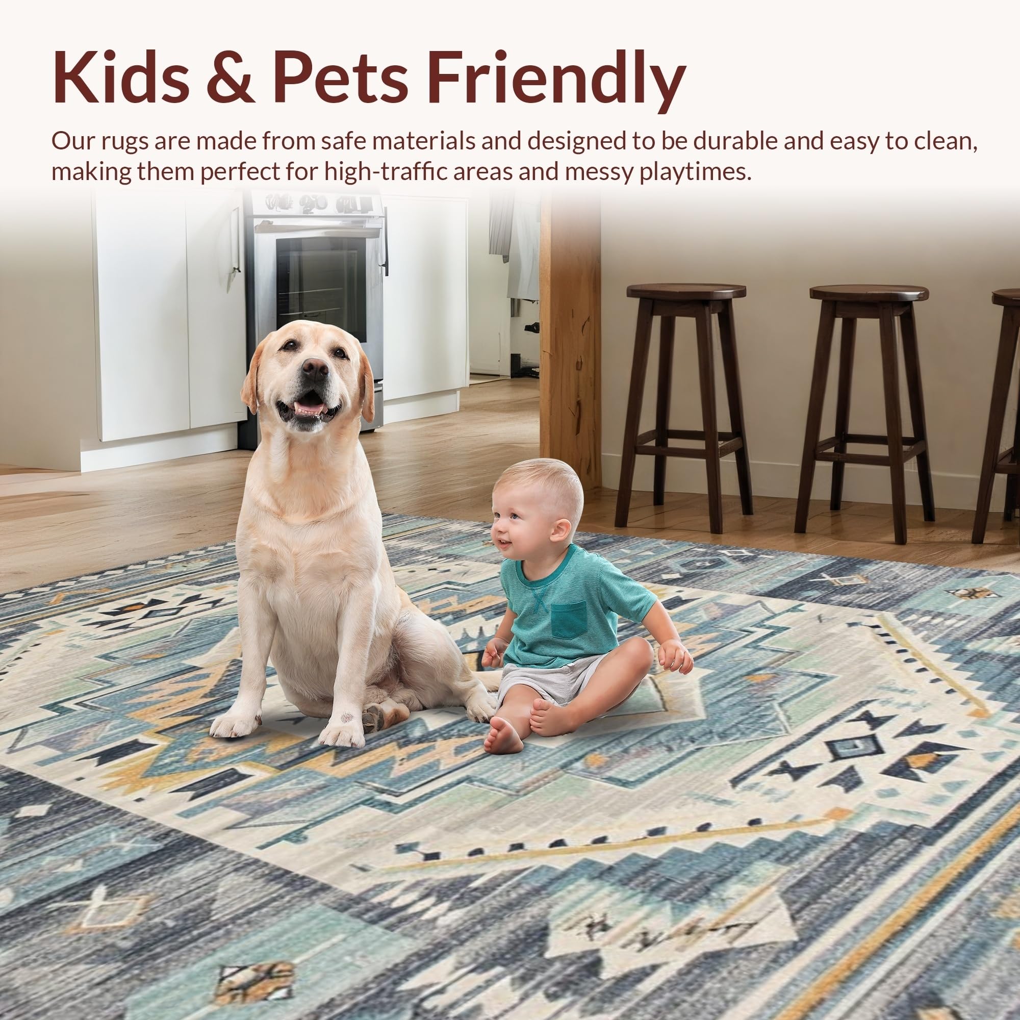 Ultra Soft Area Rug, Non Slip, Stain Resistant, Washable Area Rugs for Living Room, Bedroom, Rustic Earthy Tribal Aesthetic(Blue) Overview:
