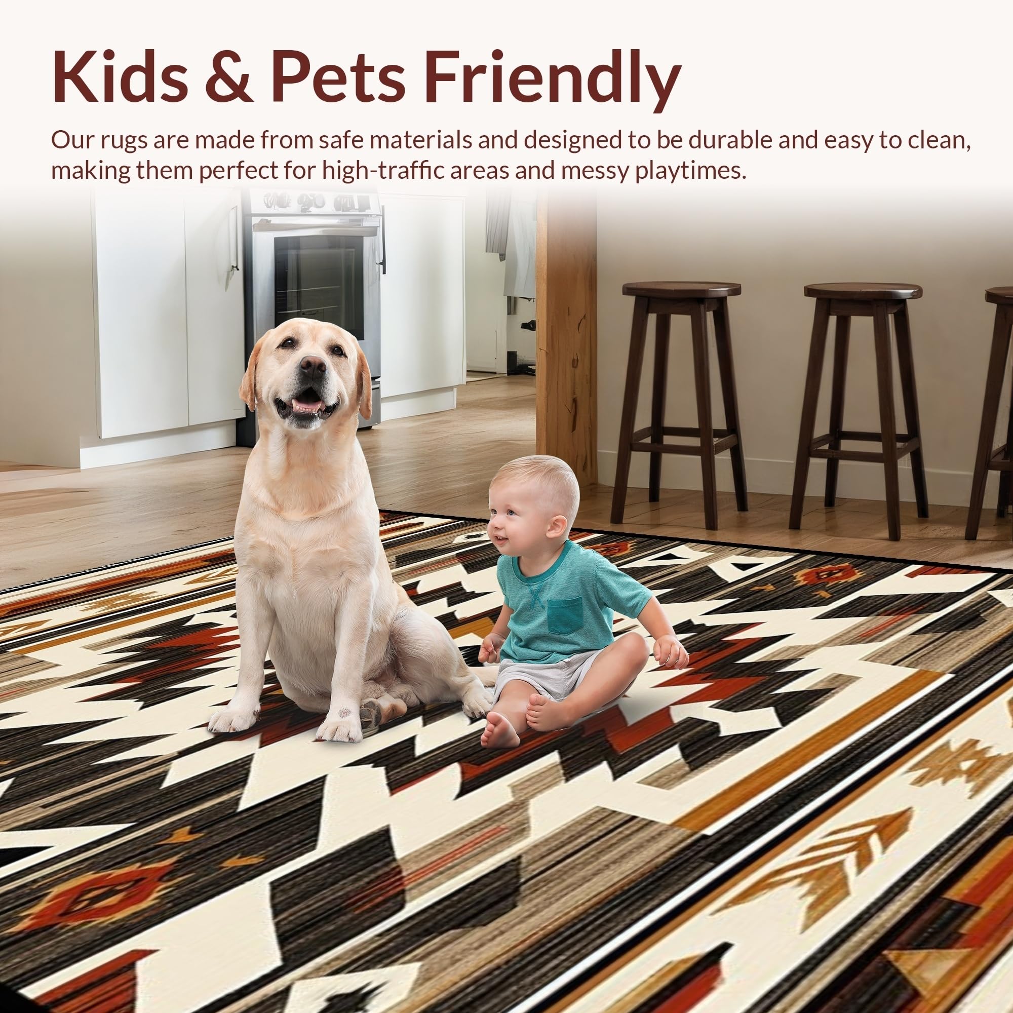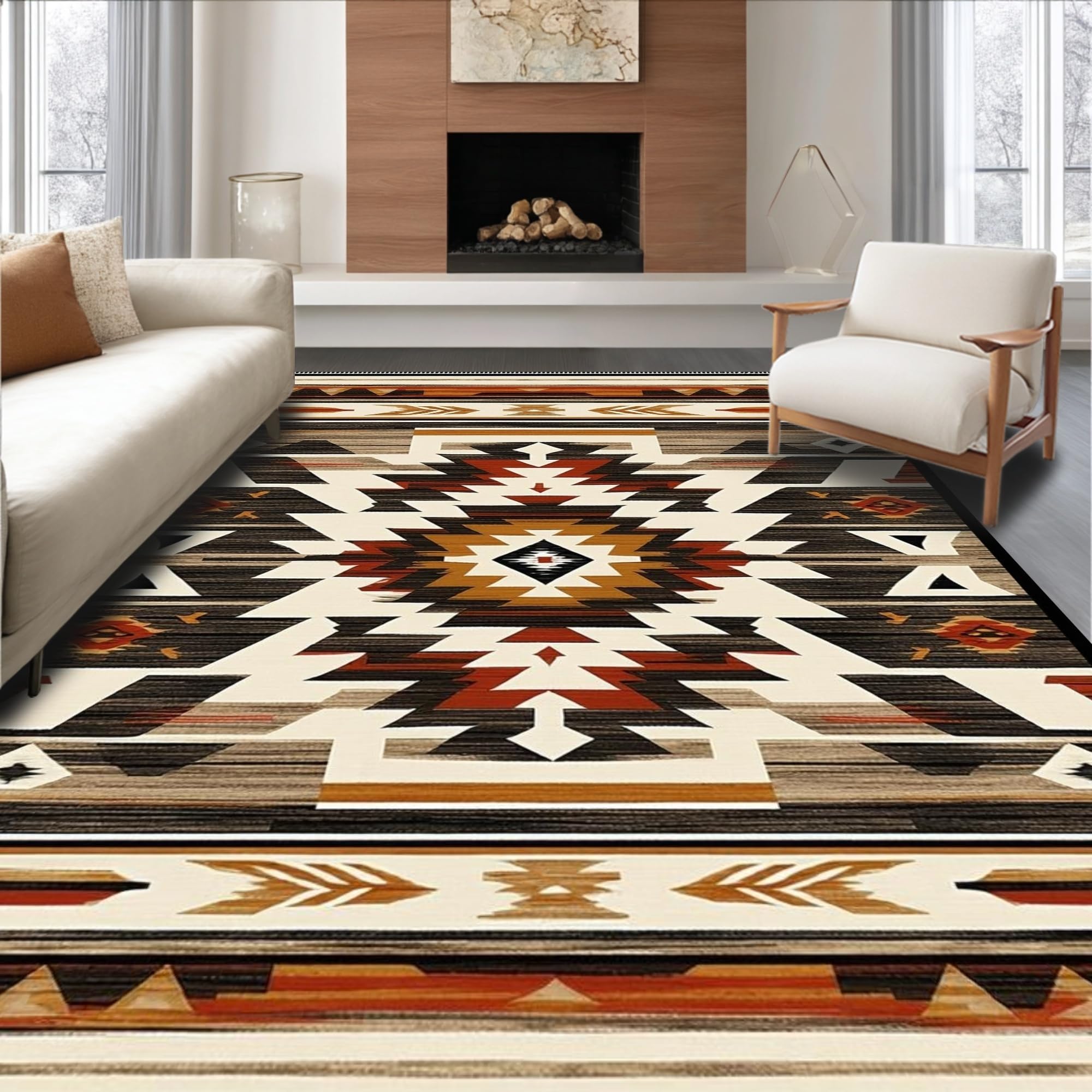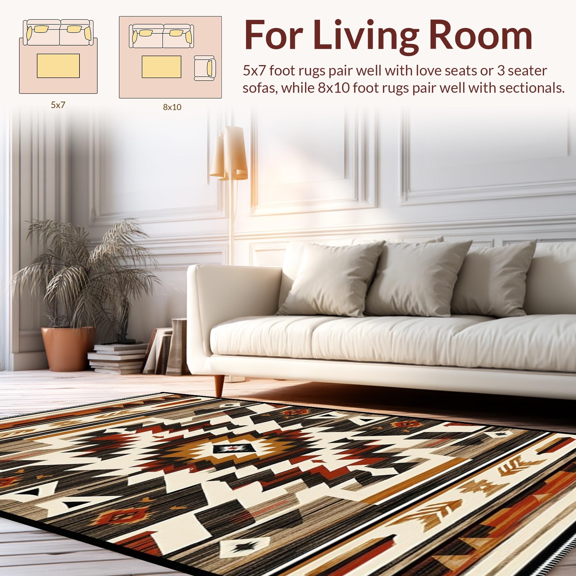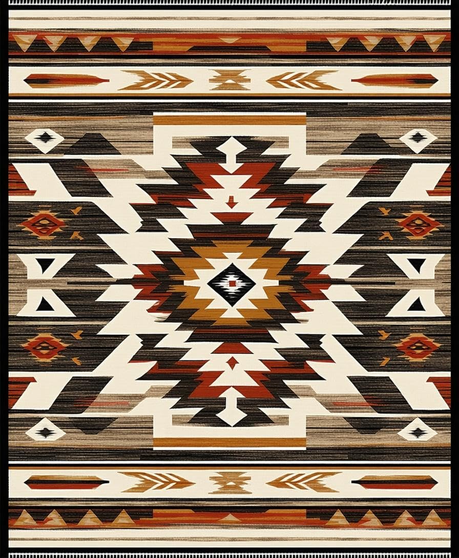 Ultra Soft Area Rug, Non Slip, Stain Resistant, Washable Area Rugs for Living Room, Bedroom, Rustic Earthy Tribal Motif(Beige) Overview: