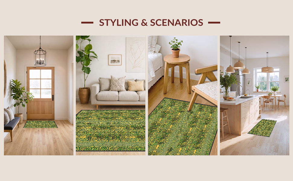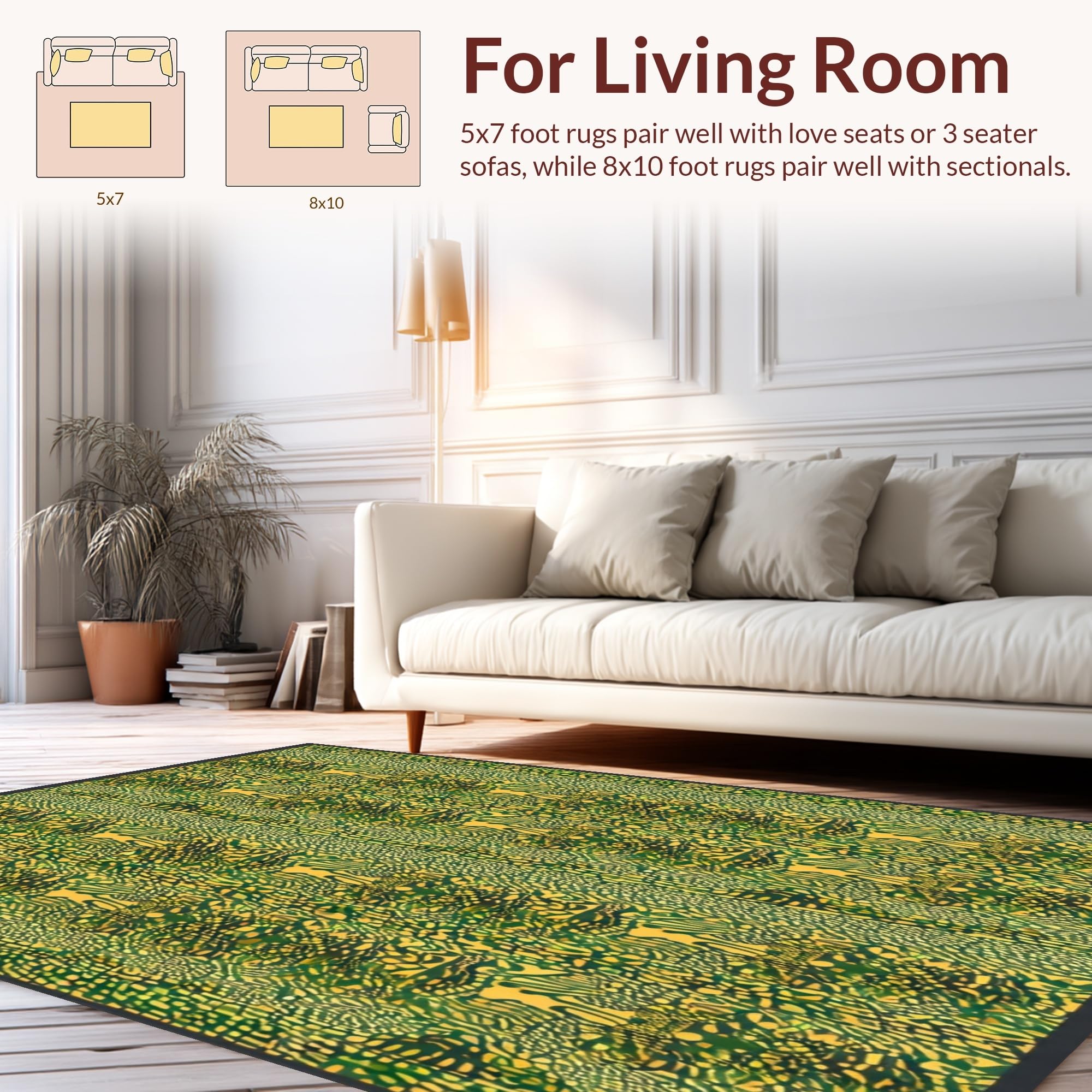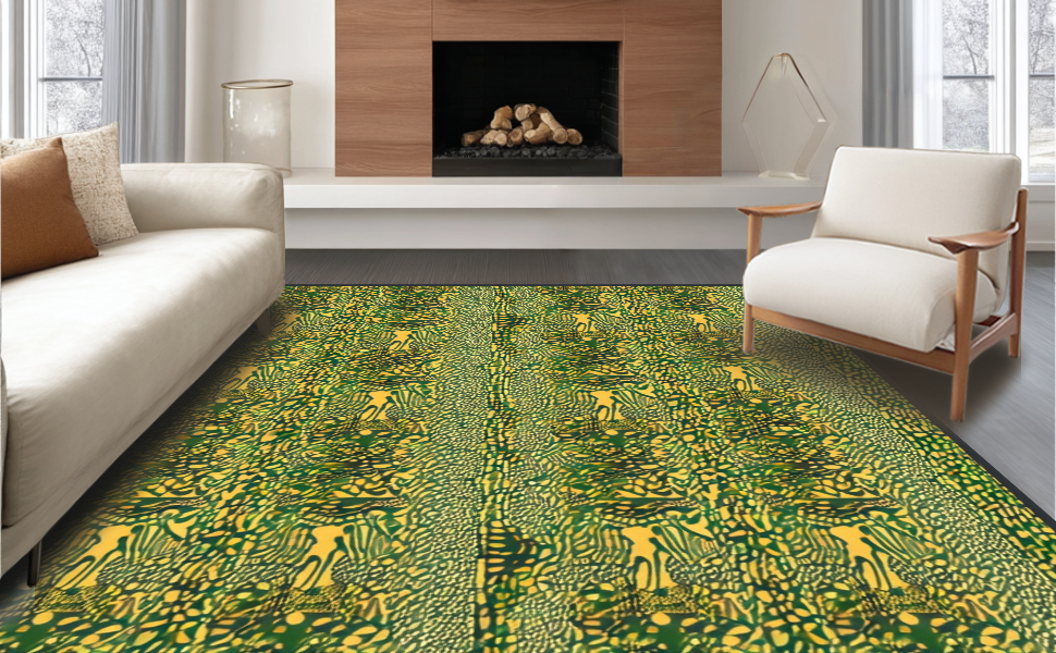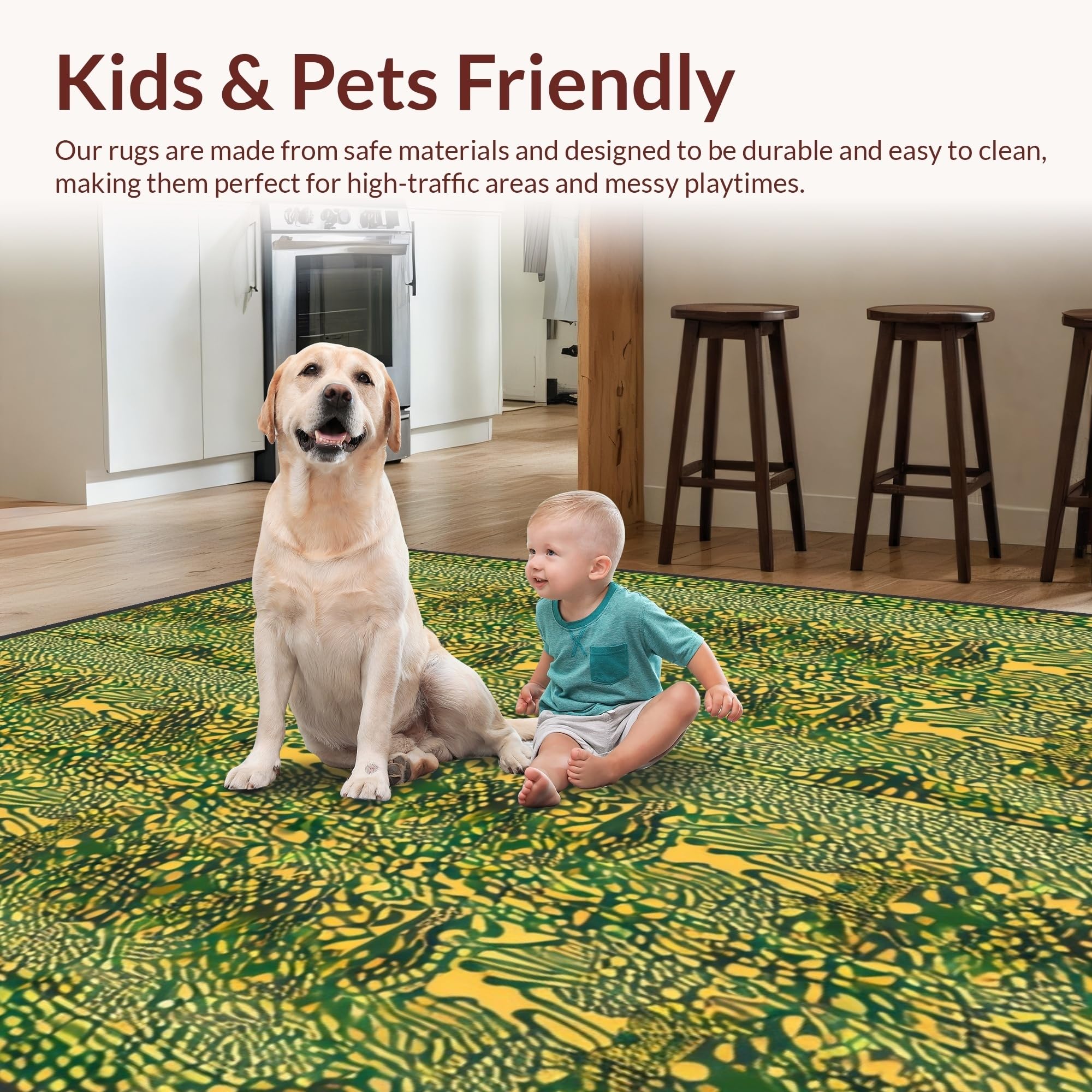 Ultra Soft Area Rug, Non Slip, Stain Resistant, Washable Area Rugs for Living Room, Bedroom, Rustic Eclectic Alligator Artwork(Green) Overview: