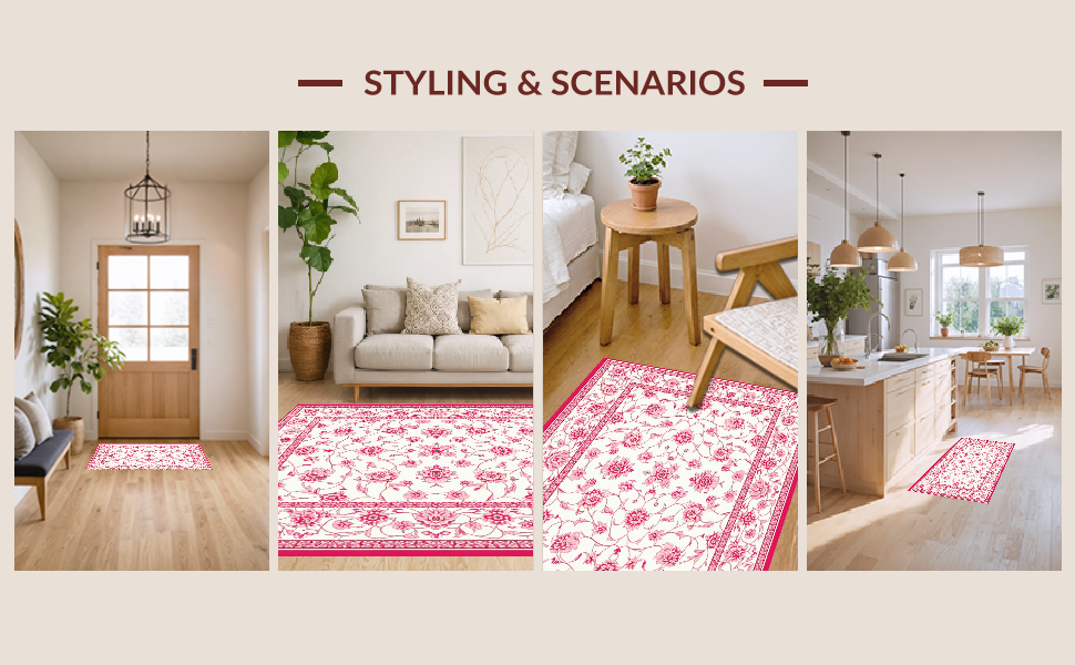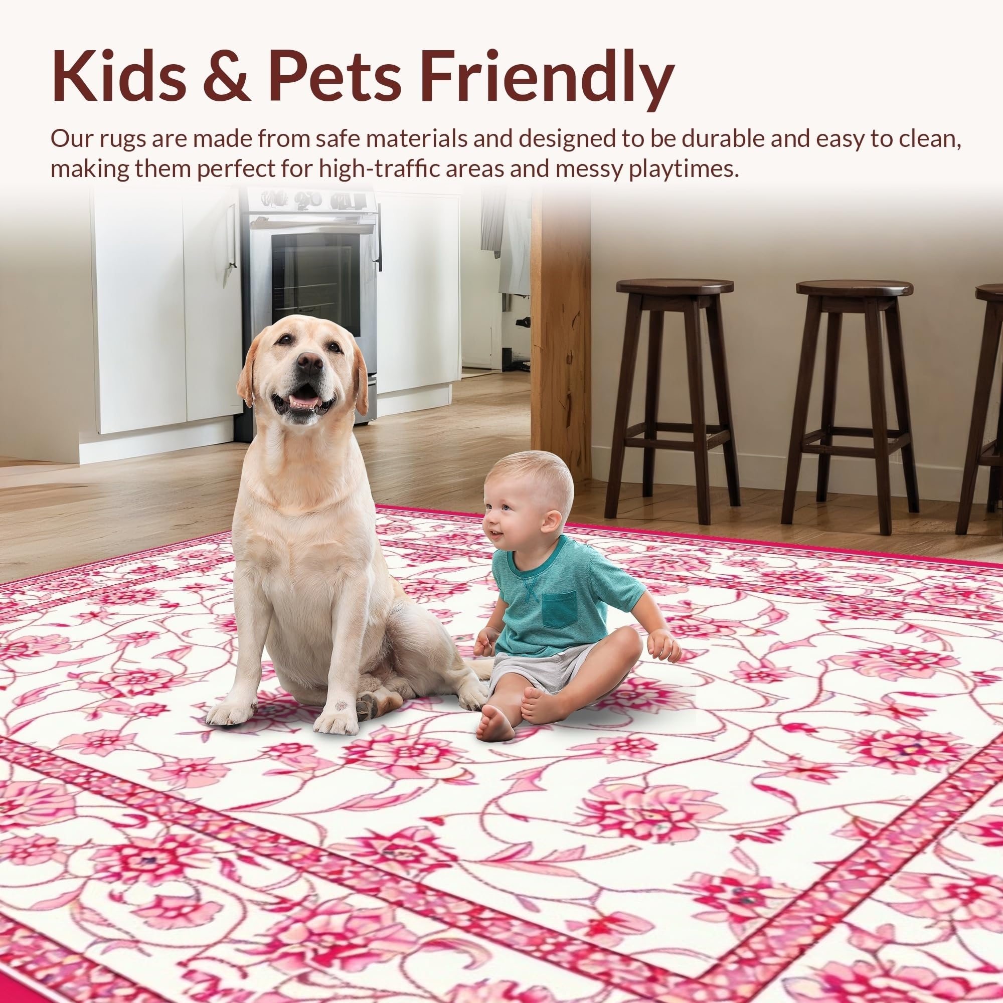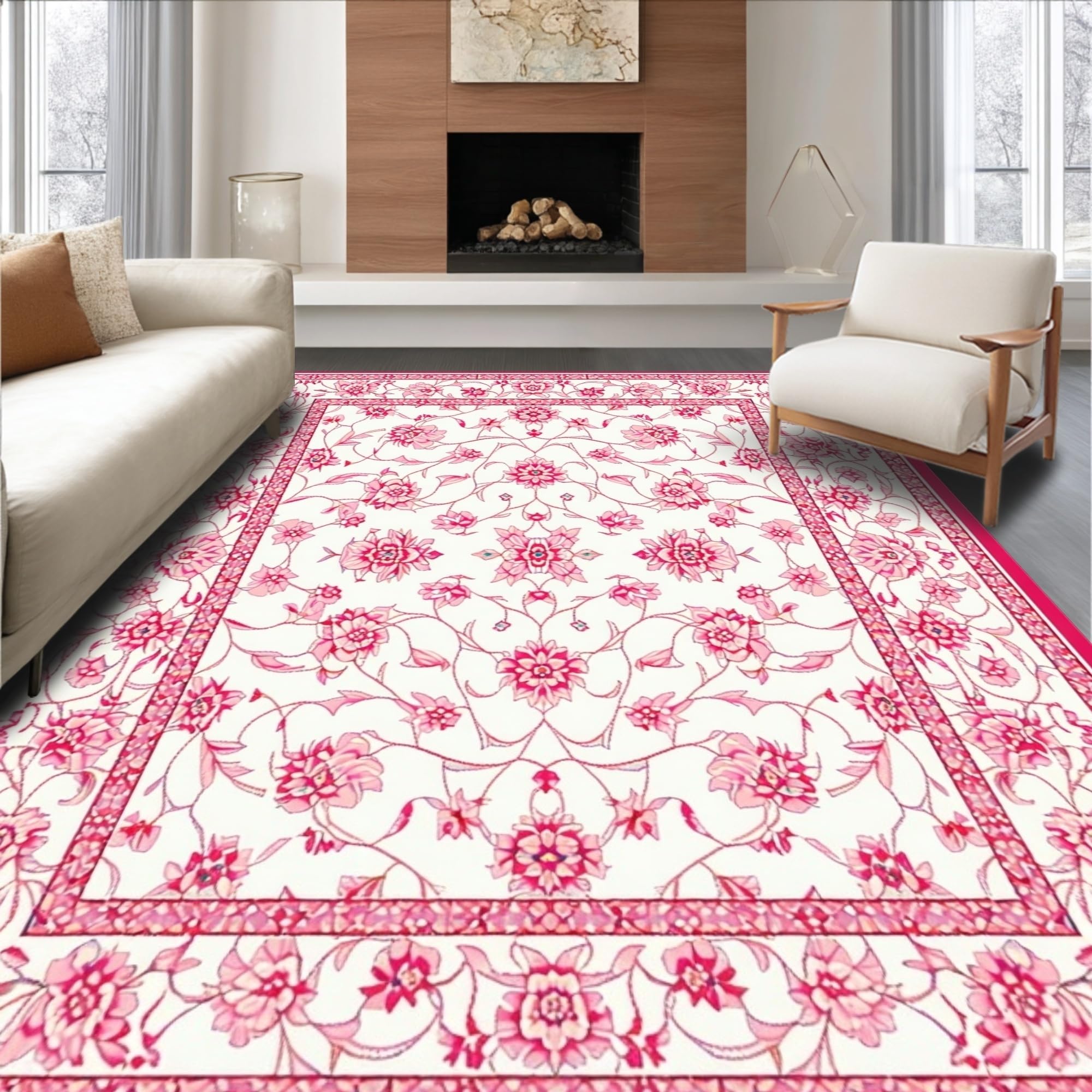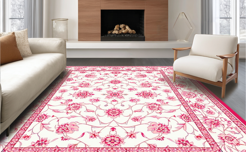 Ultra Soft Area Rug, Non Slip, Stain Resistant, Washable Area Rugs for Living Room, Bedroom, Rustic Elegant Cottage Motif(White) Overview: