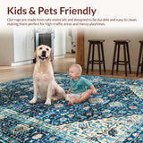 Ultra Soft Area Rug, Non Slip, Stain Resistant, Washable Area Rugs for Living Room, Bedroom, Rustic Ethnic Patterned Design(Blue) Overview: