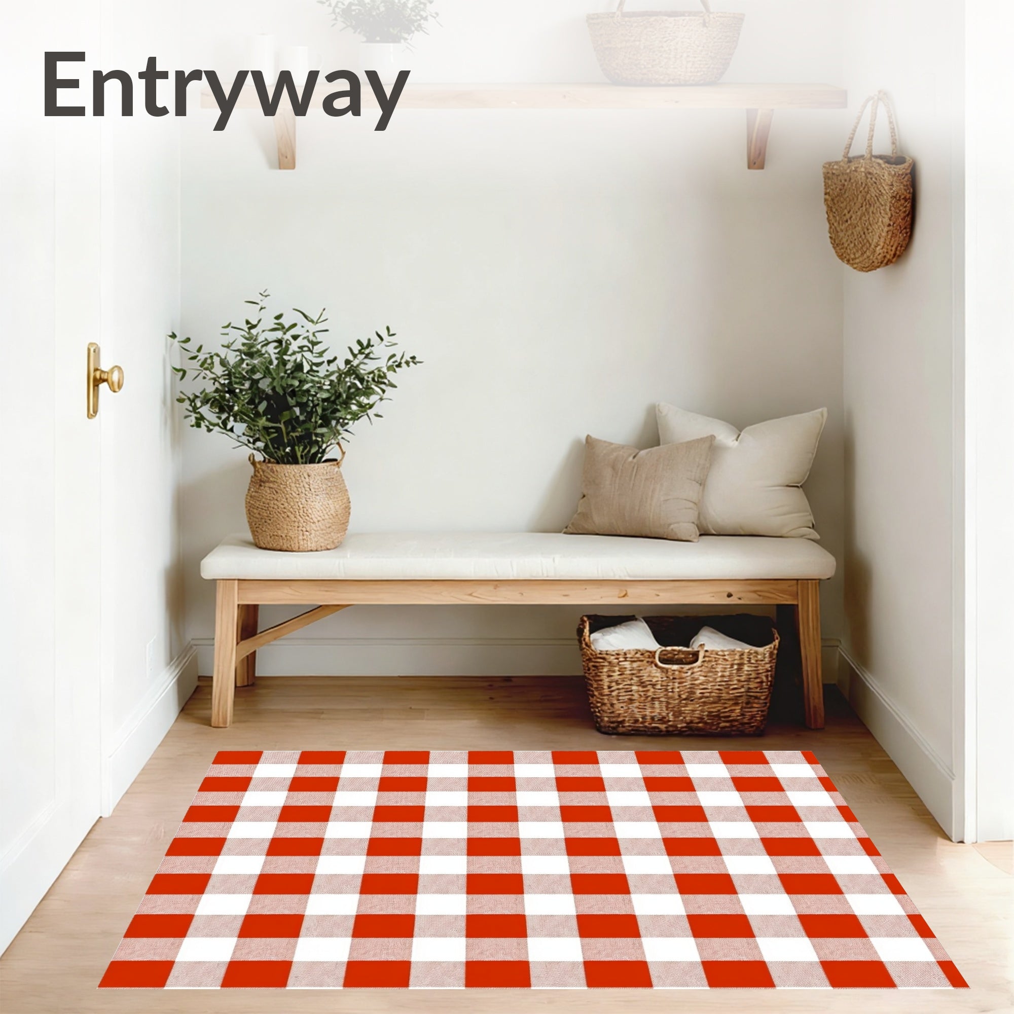 Ultra Soft Area Rug, Non Slip, Stain Resistant, Washable Area Rugs for Living Room, Bedroom, Rustic Farmhouse Buffalo Grid Decorative(Red) Overview: