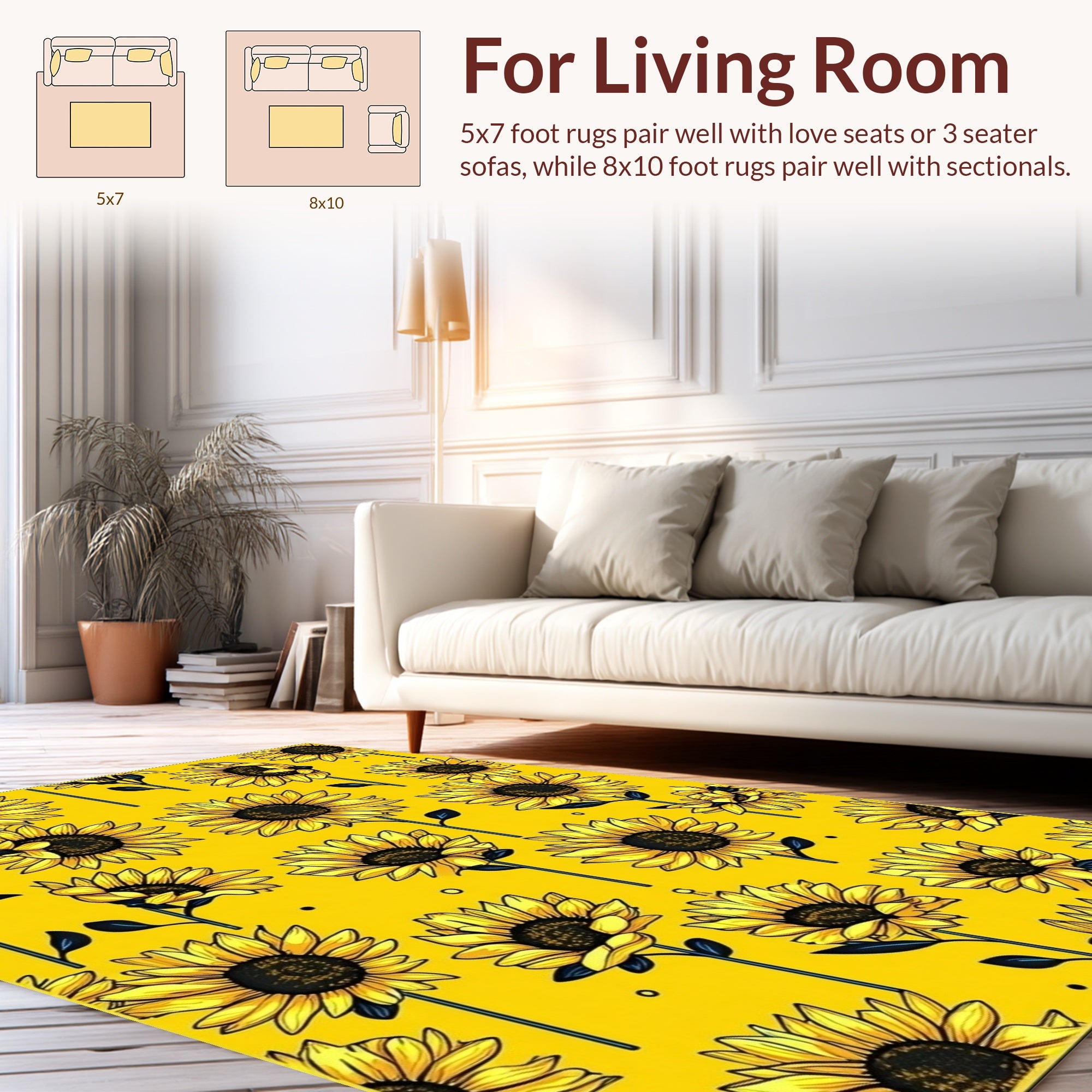 Flatwoven High Traffic Area Rug, Rustic Floral Medley Circular Theme, Non Slip, Stain Resistant, Washable Area Rugs for Living Room, Bedroom (Yellow) Overview: