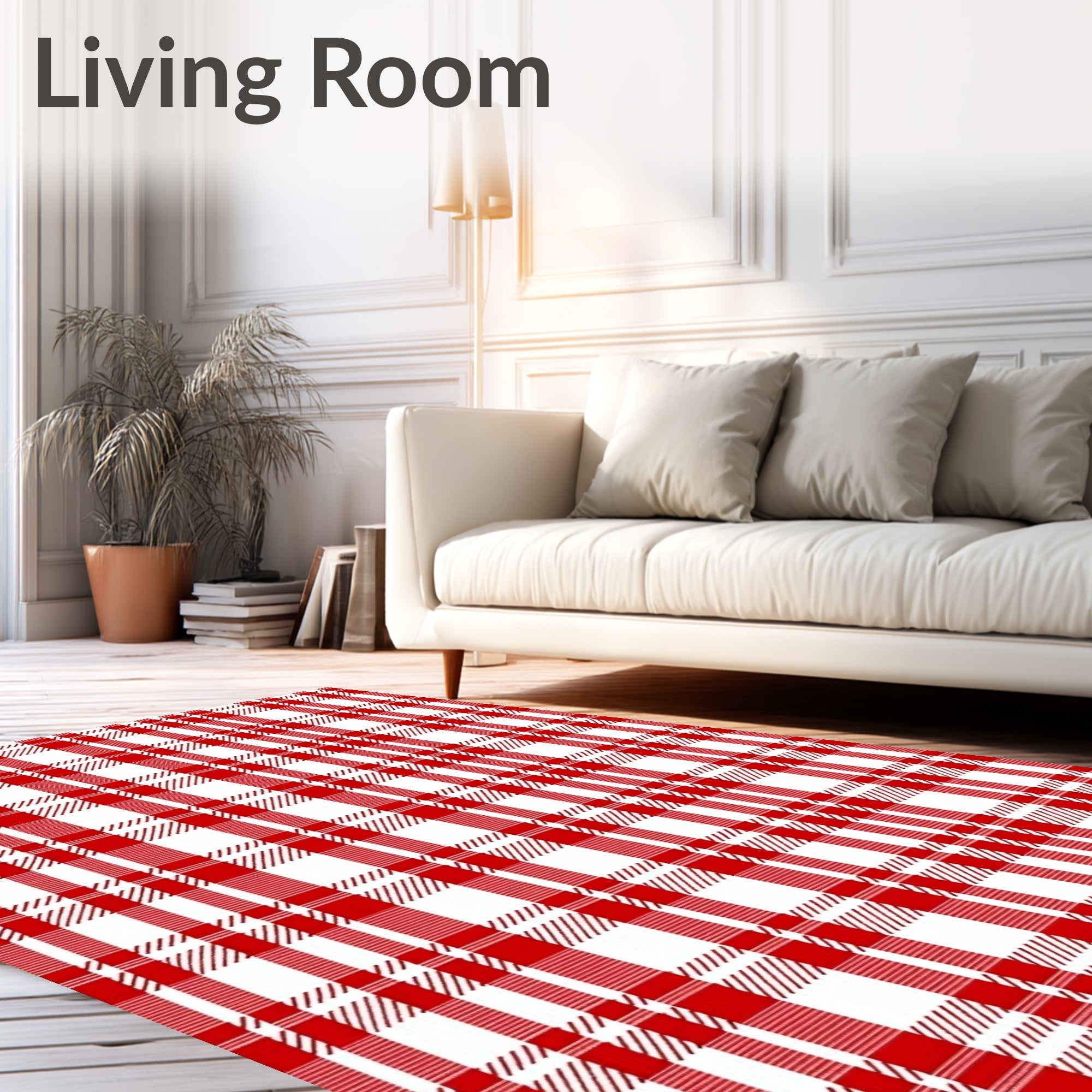 Ultra Soft Area Rug, Non Slip, Stain Resistant, Washable Area Rugs for Living Room, Bedroom, Rustic Gingham Design Showcasing Crisp Contrasting Squares(Red) Overview:
