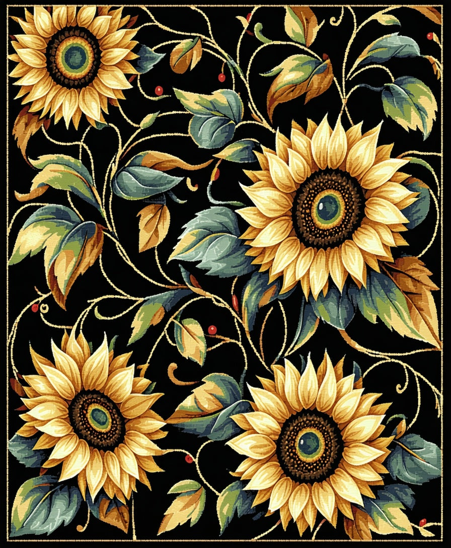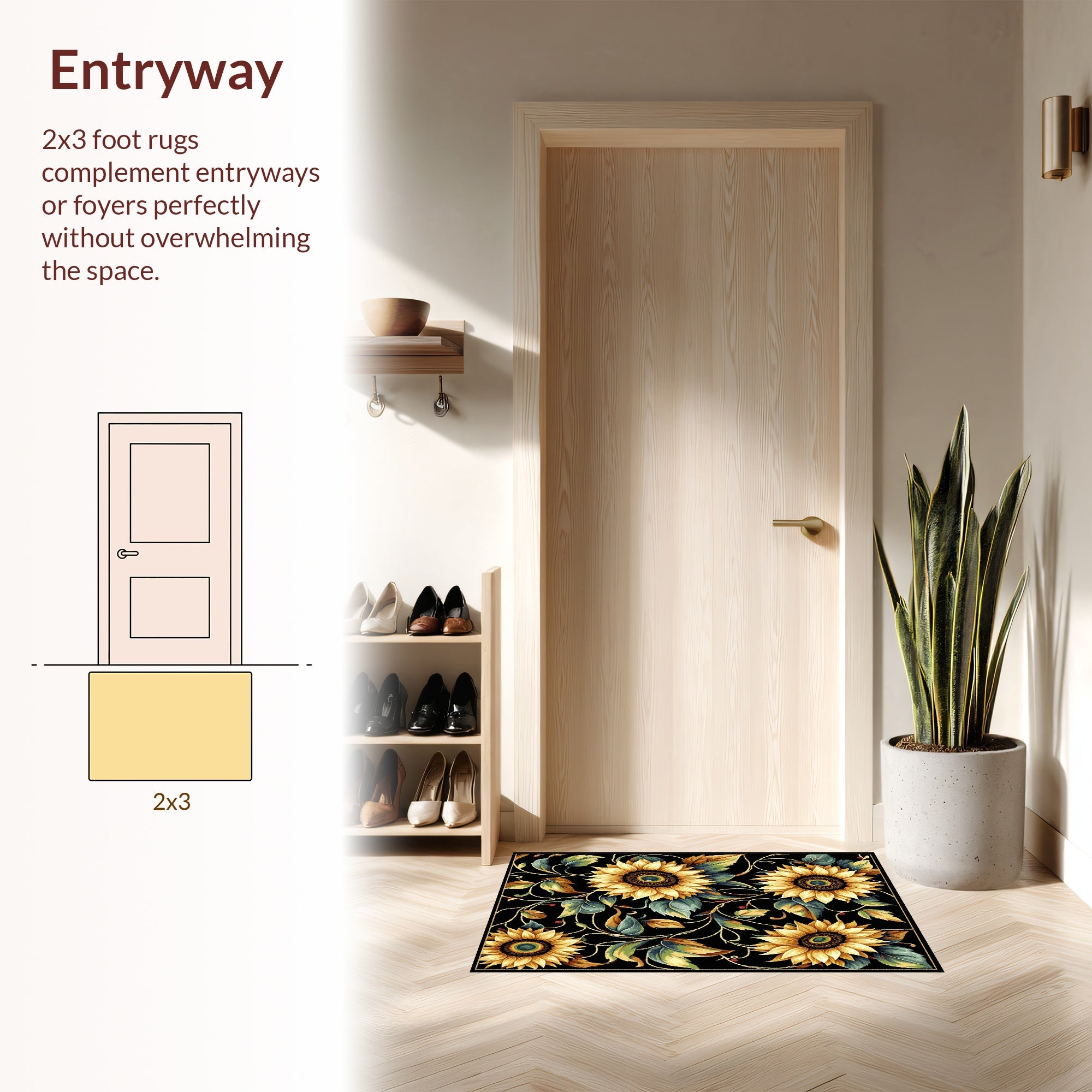 Flatwoven High Traffic Area Rug, Rustic Graphic Flower Arrangement, Non Slip, Stain Resistant, Washable Area Rugs for Living Room, Bedroom (Black) Overview: