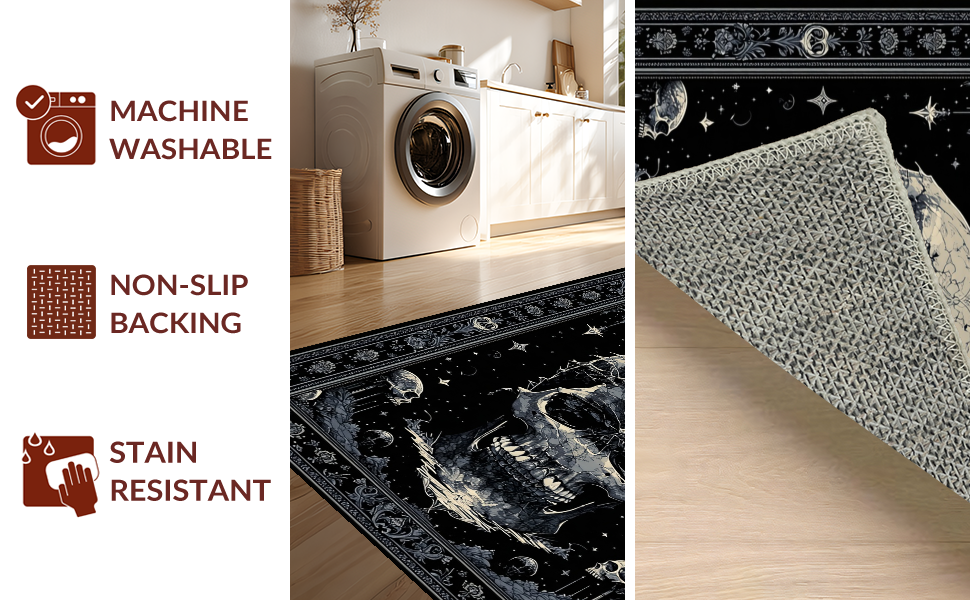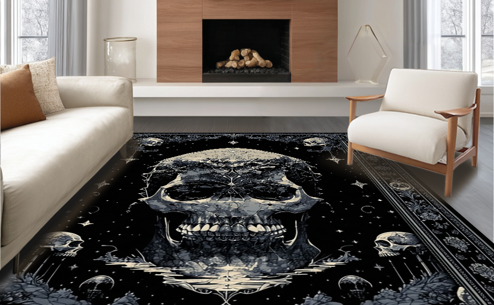 Ultra Soft Area Rug, Non Slip, Stain Resistant, Washable Area Rugs for Living Room, Bedroom, Rustic Grey Skull Arrangement(Black) Overview:
