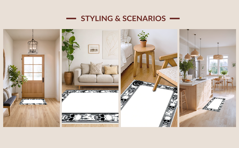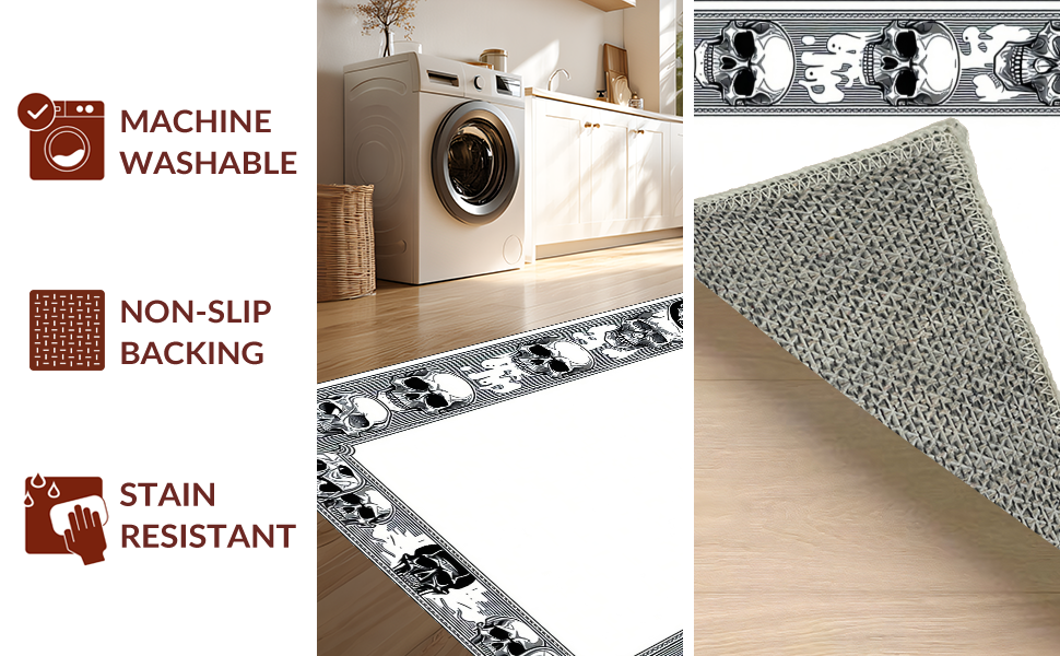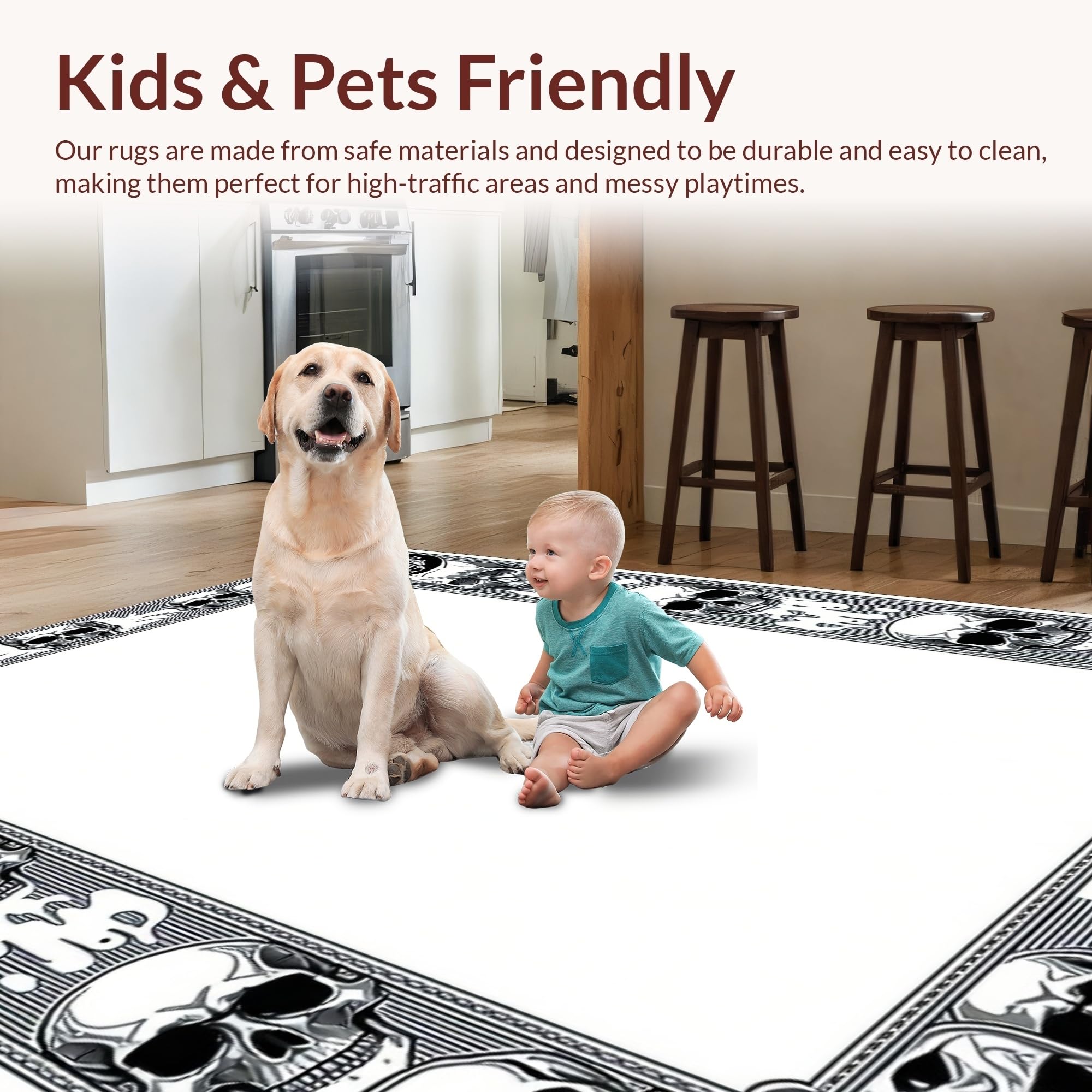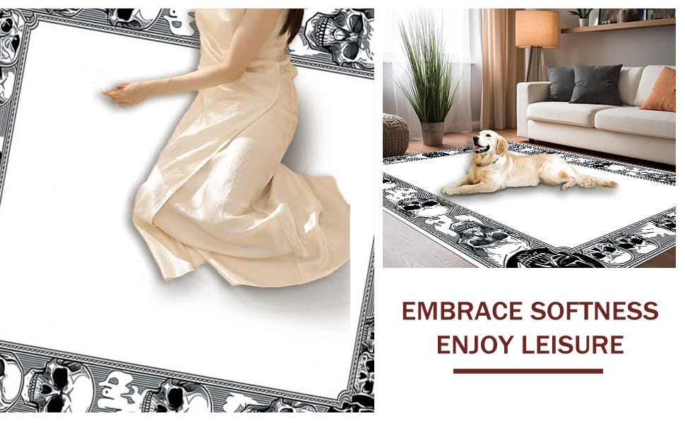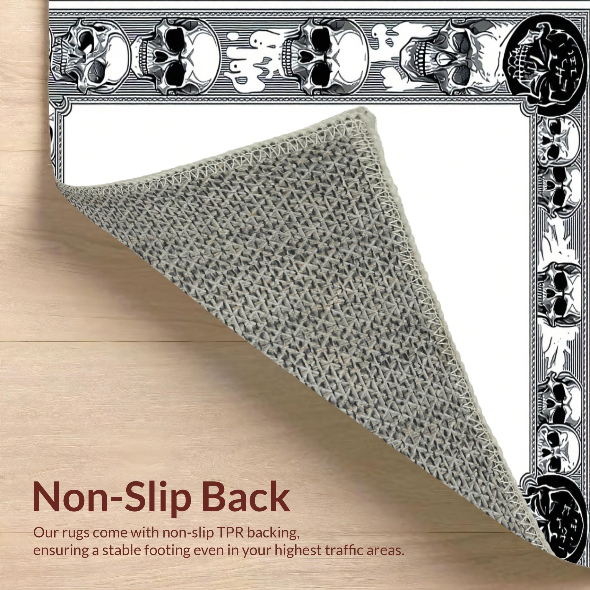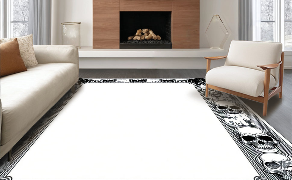 Ultra Soft Area Rug, Non Slip, Stain Resistant, Washable Area Rugs for Living Room, Bedroom, Rustic Halloween Gothic Flourish(Black) Overview: