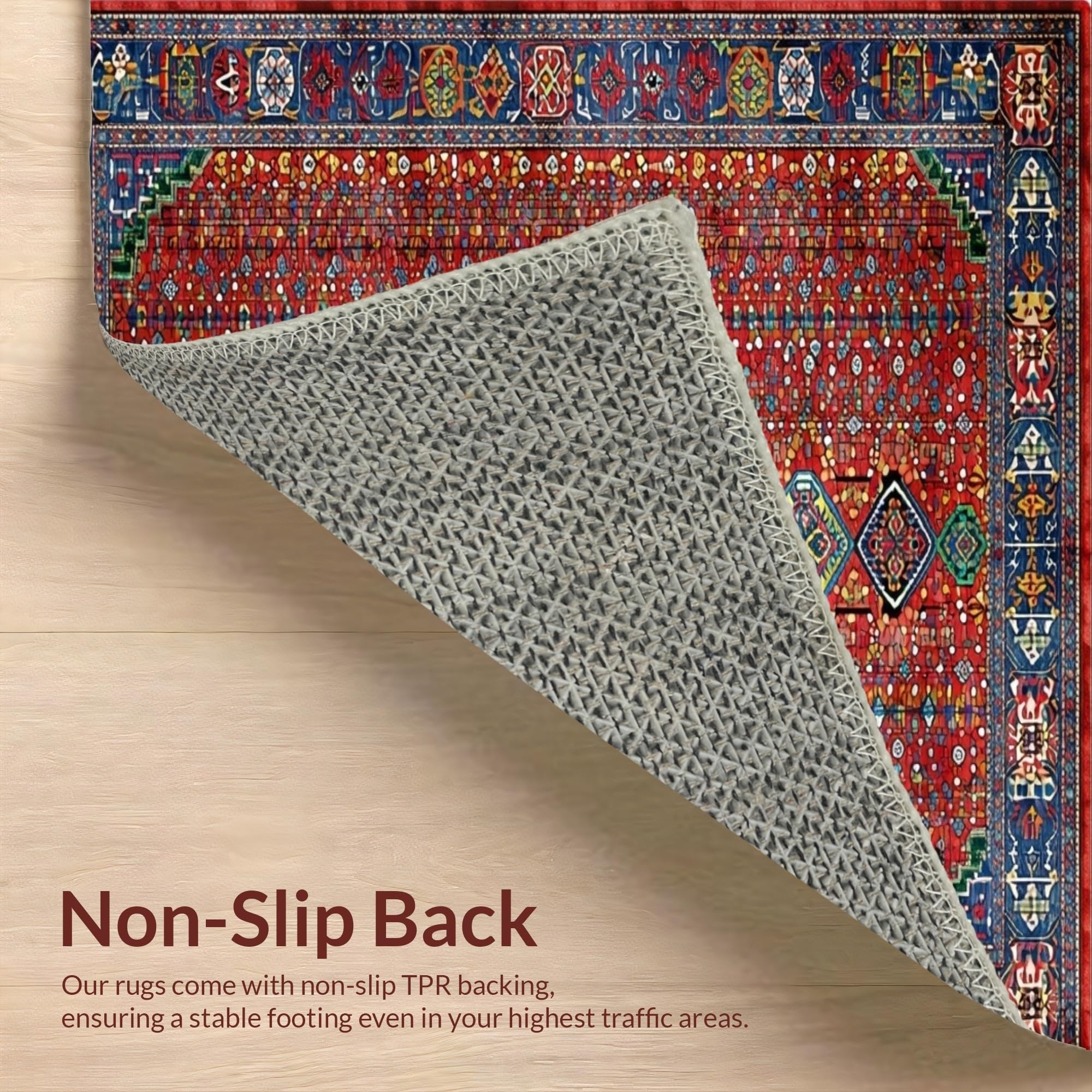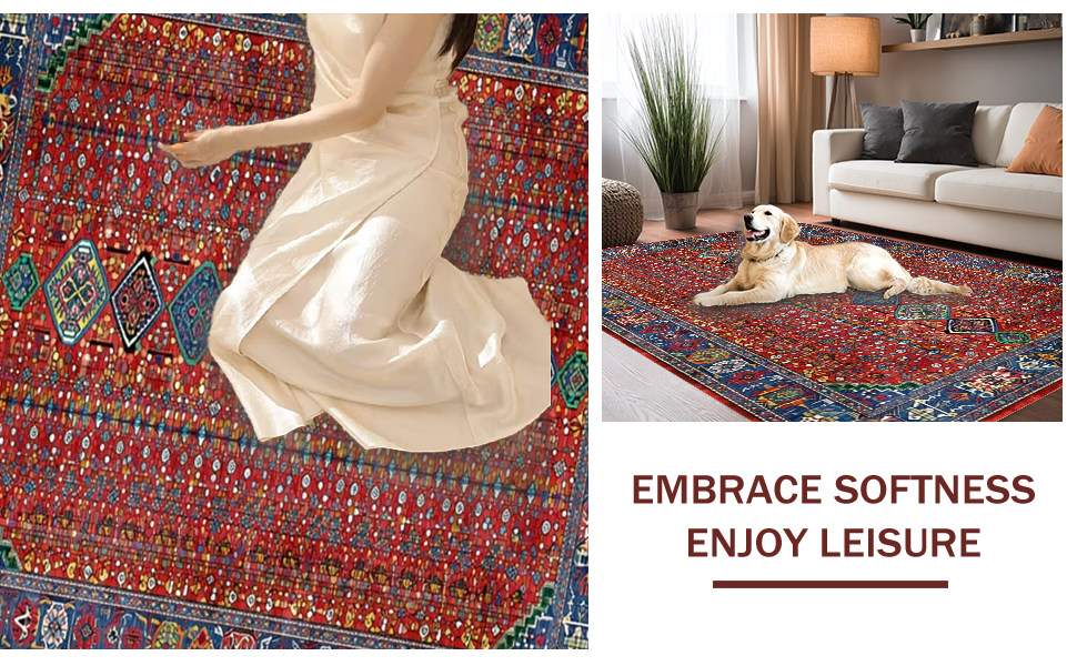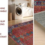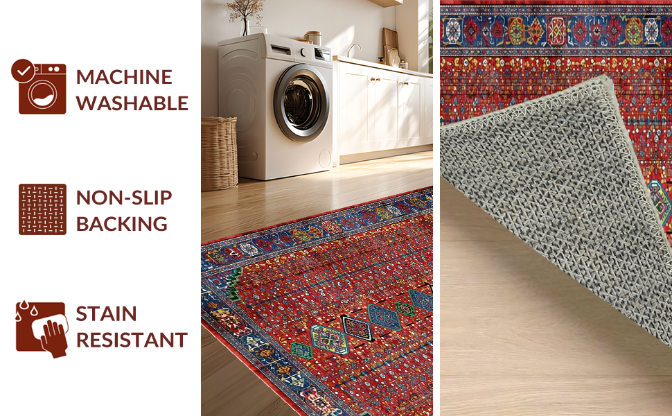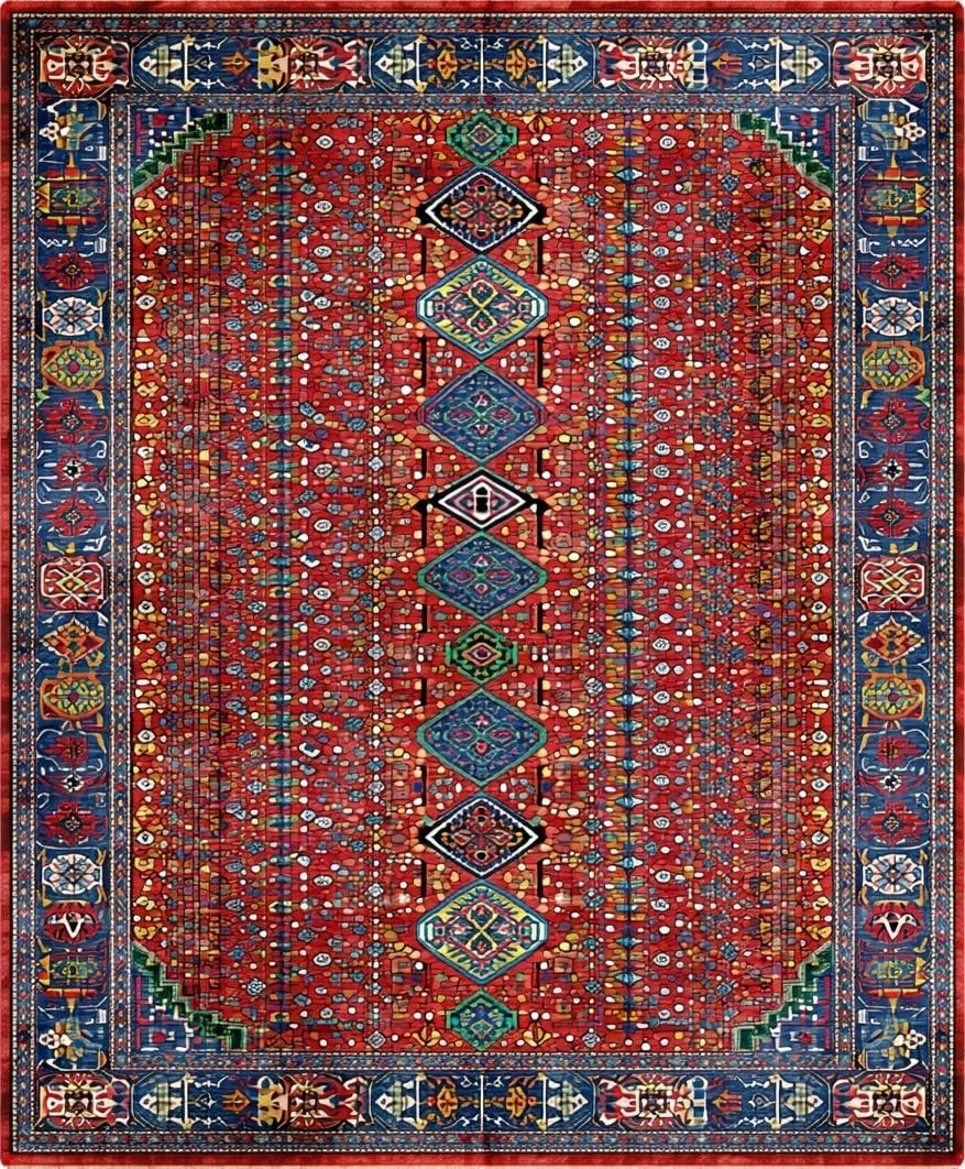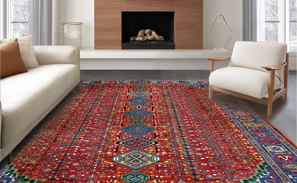 Ultra Soft Area Rug, Non Slip, Stain Resistant, Washable Area Rugs for Living Room, Bedroom, Rustic Handcrafted Colorful Motif(Red) Overview: