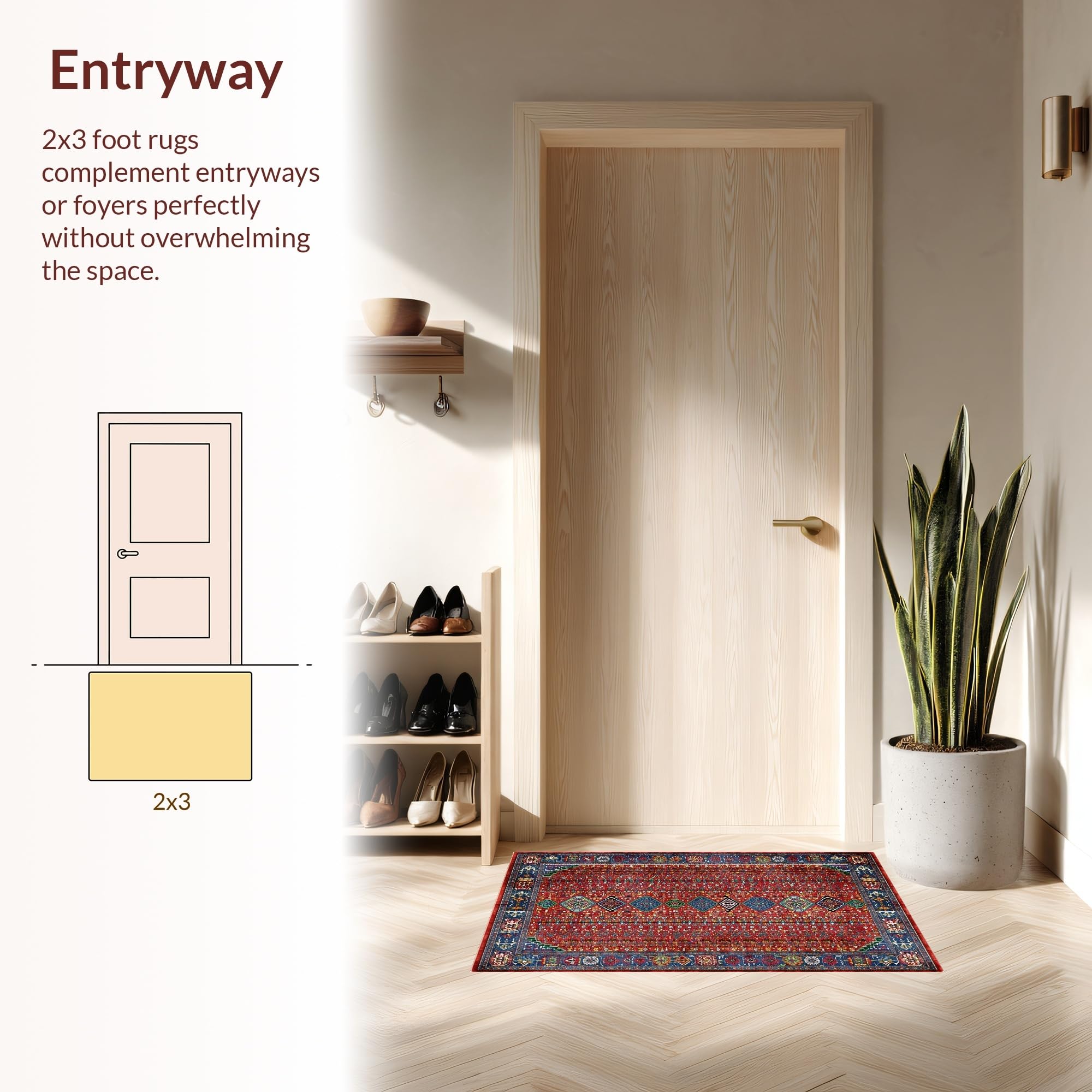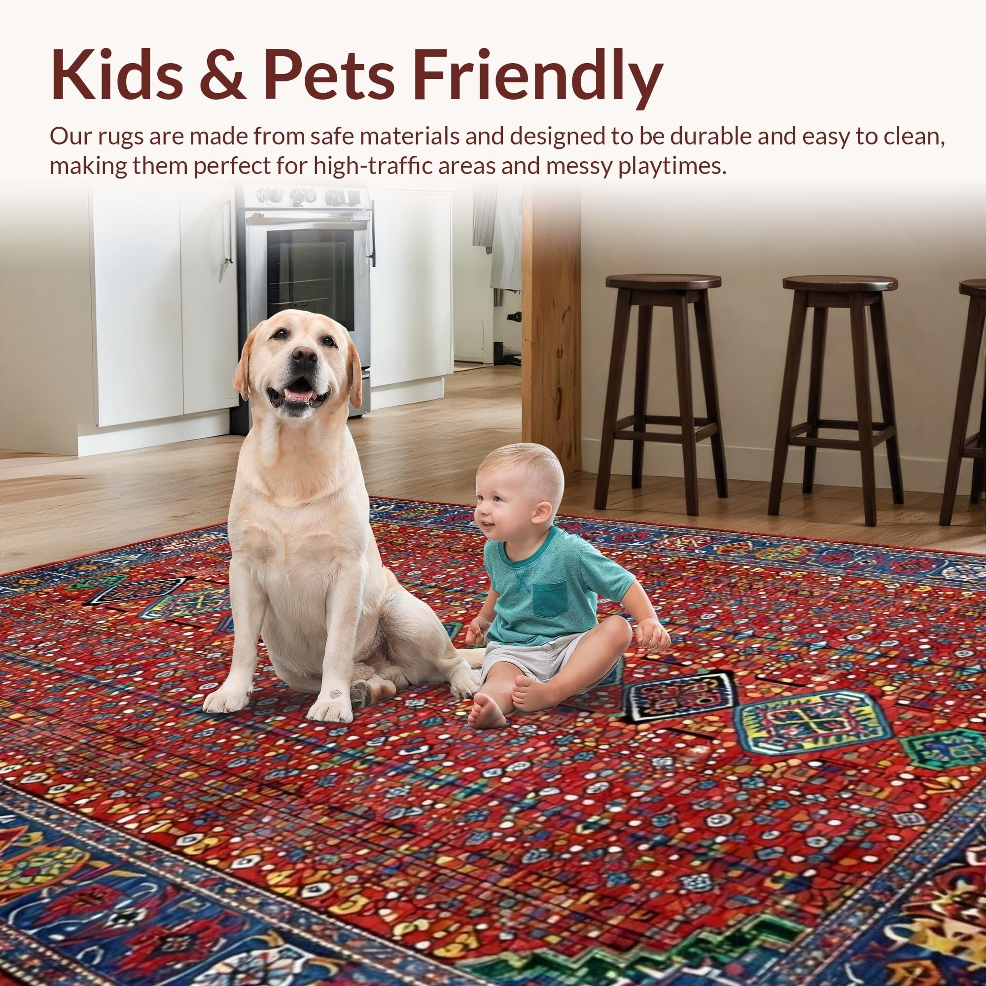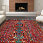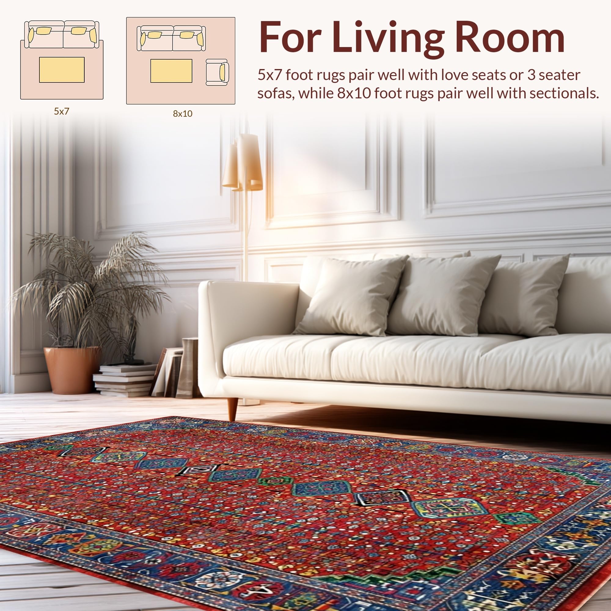 Ultra Soft Area Rug, Non Slip, Stain Resistant, Washable Area Rugs for Living Room, Bedroom, Rustic Handcrafted Colorful Motif(Red) Overview: