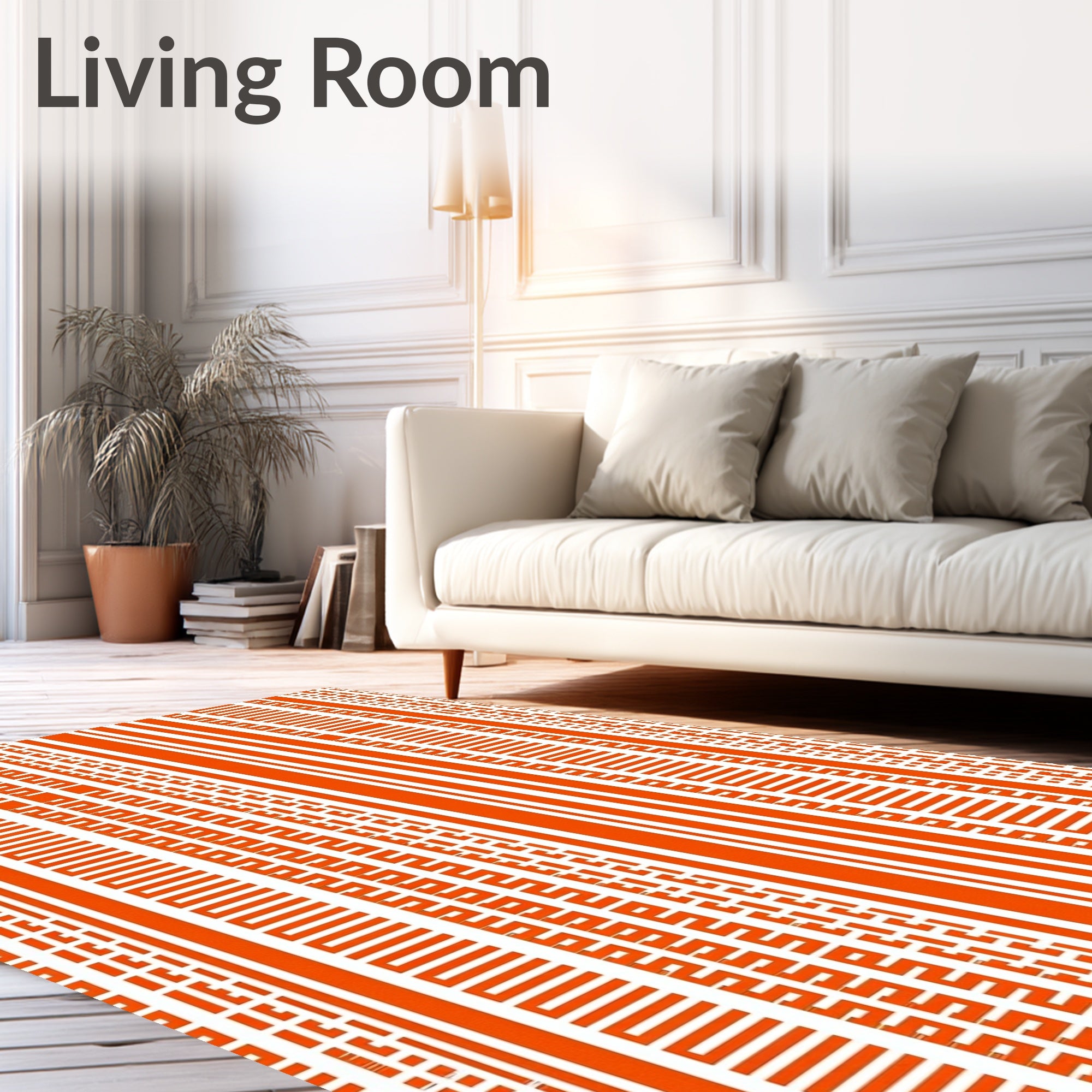 Ultra Soft Area Rug, Non Slip, Stain Resistant, Washable Area Rugs for Living Room, Bedroom, Rustic Harvest Grid Featuring Alternating Bold and Lines(Orange) Overview: