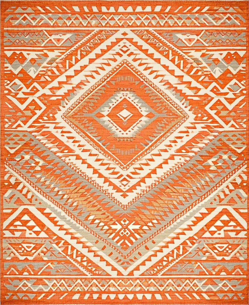 Flatwoven High Traffic Area Rug, Rustic Harvest with Interlaced and Zigzag, Non Slip, Stain Resistant, Washable Area Rugs for Living Room, Bedroom (Orange) Overview: