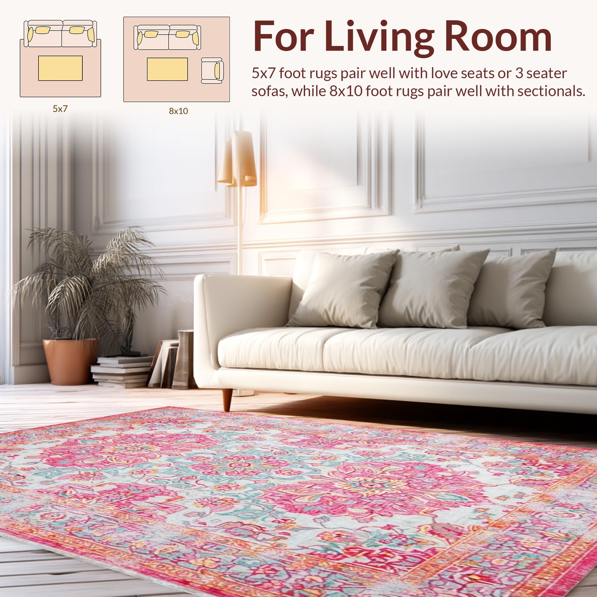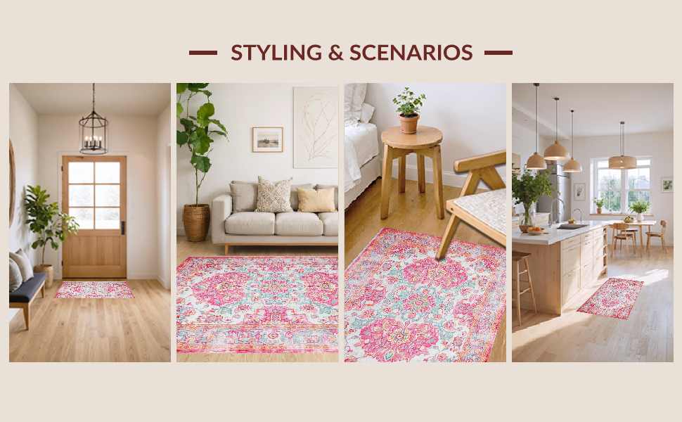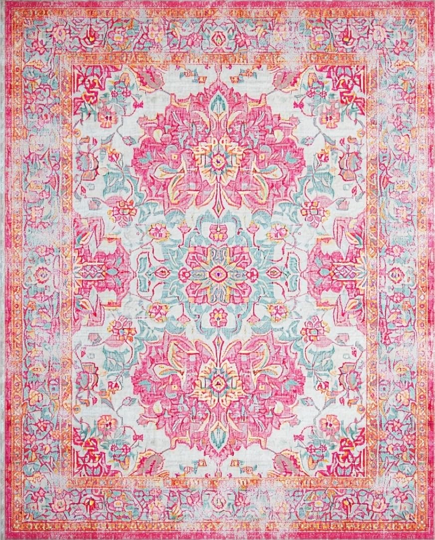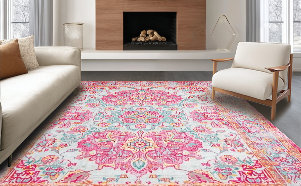 Ultra Soft Area Rug, Non Slip, Stain Resistant, Washable Area Rugs for Living Room, Bedroom, Rustic Lagoon Floral Patterned Elegance(Pink) Overview: