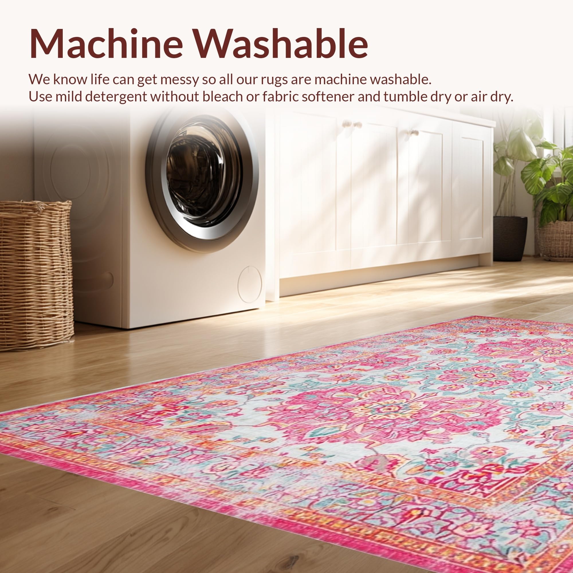 - Machine Washable: Our rugs can be easily thrown in the wash machine.