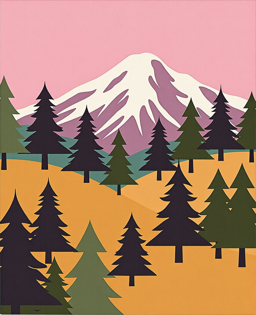 Rustic Landscape Mountain Woodland Artistic(Pink)