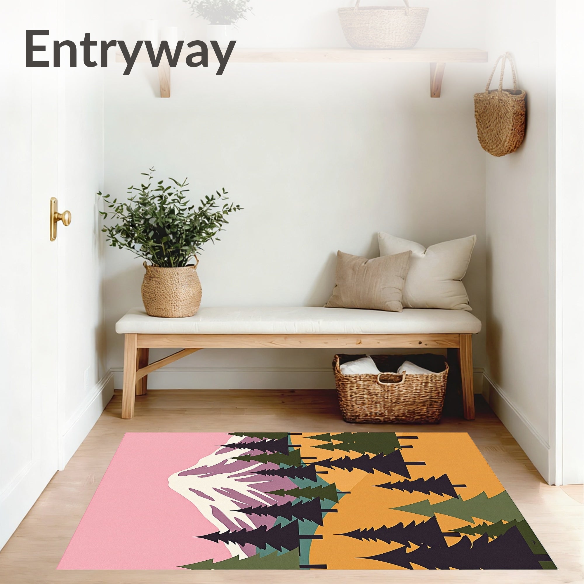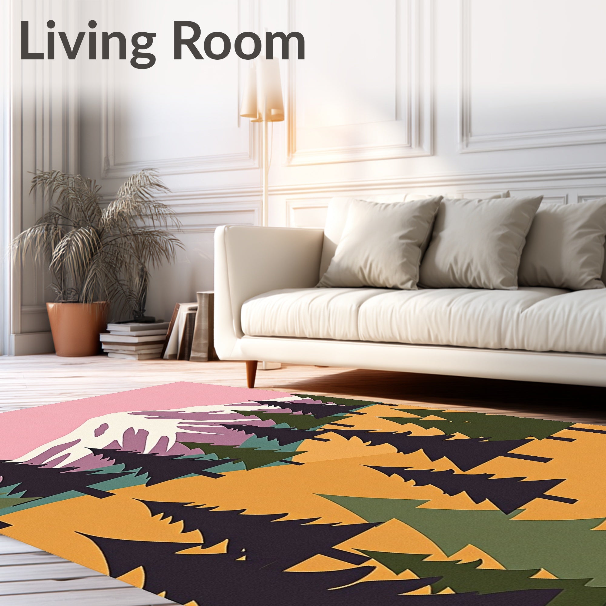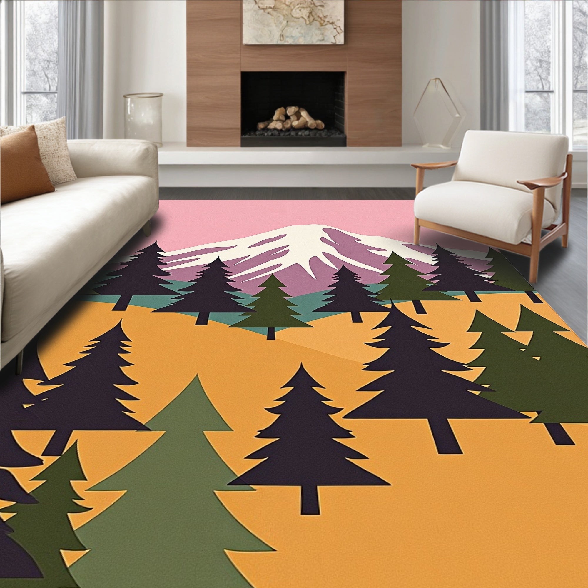 Ultra Soft Area Rug, Non Slip, Stain Resistant, Washable Area Rugs for Living Room, Bedroom, Rustic Landscape Mountain Woodland Artistic(Pink) Overview: