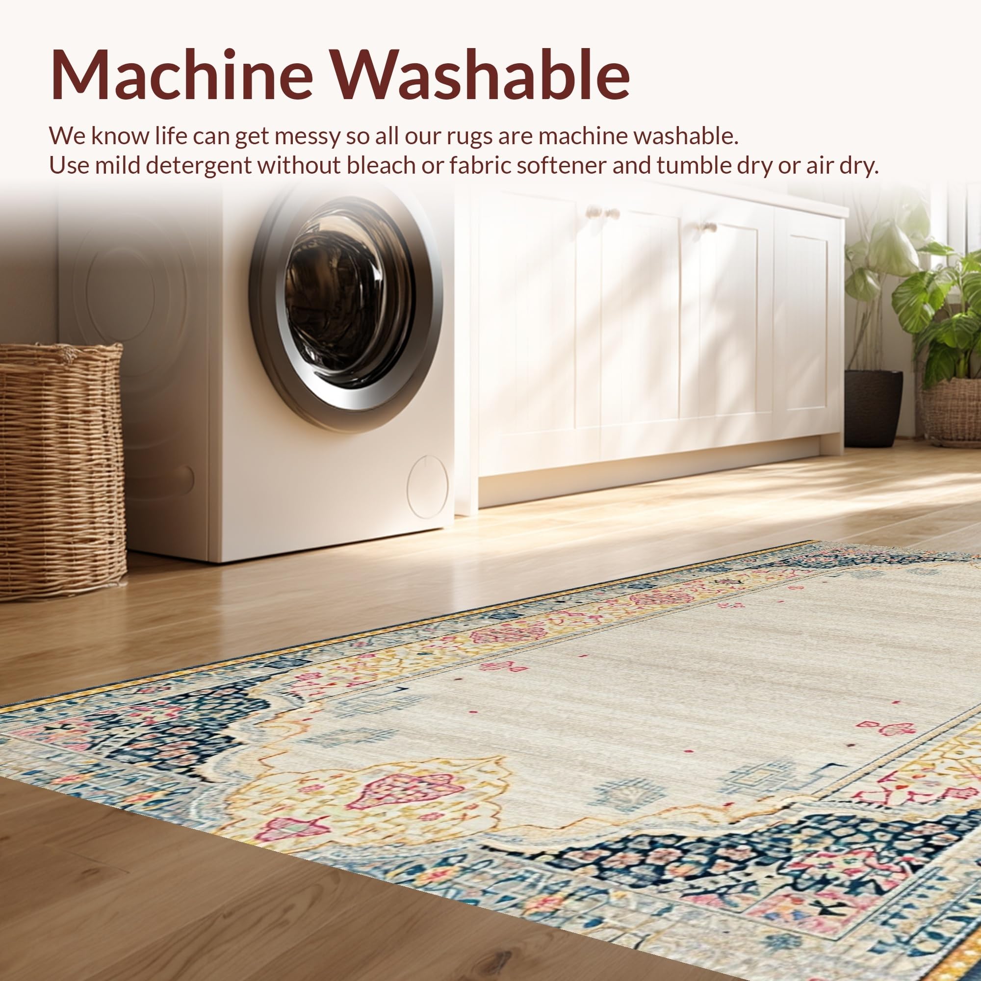 - Machine Washable: Our rugs can be easily thrown in the wash machine.