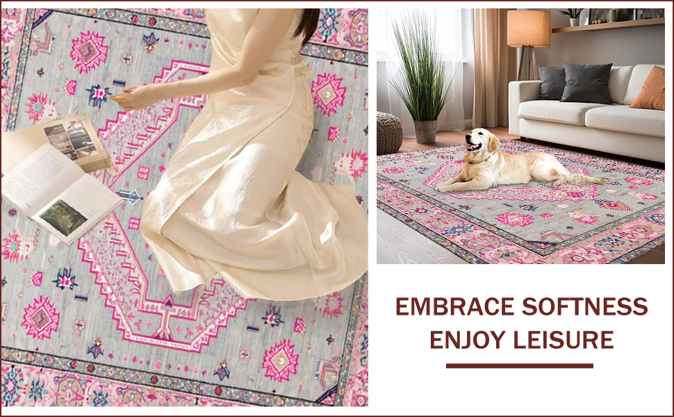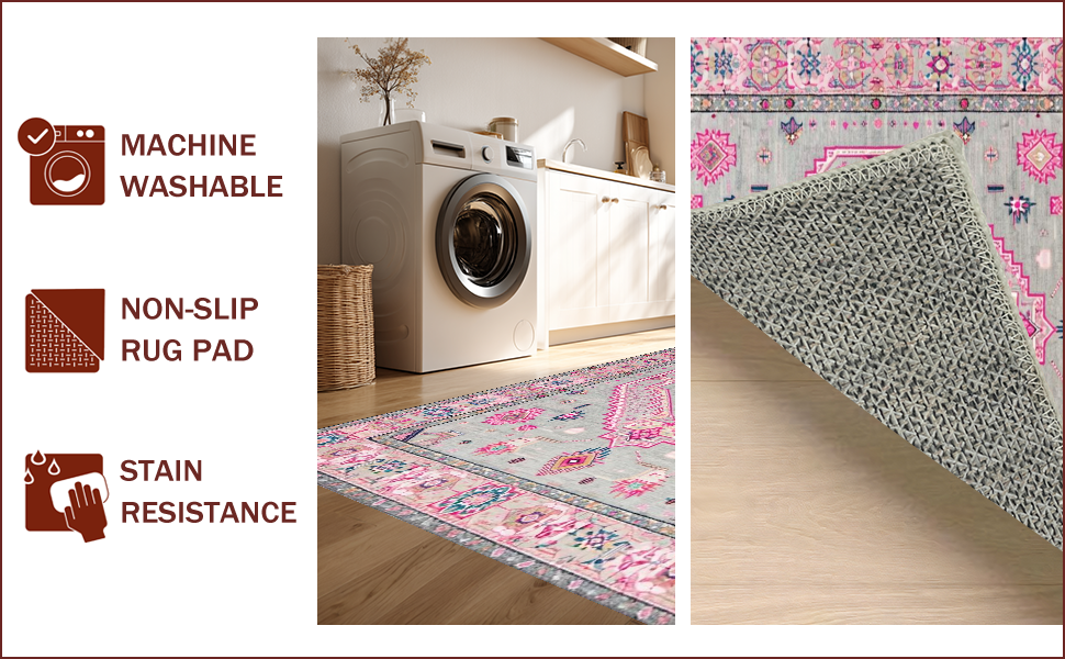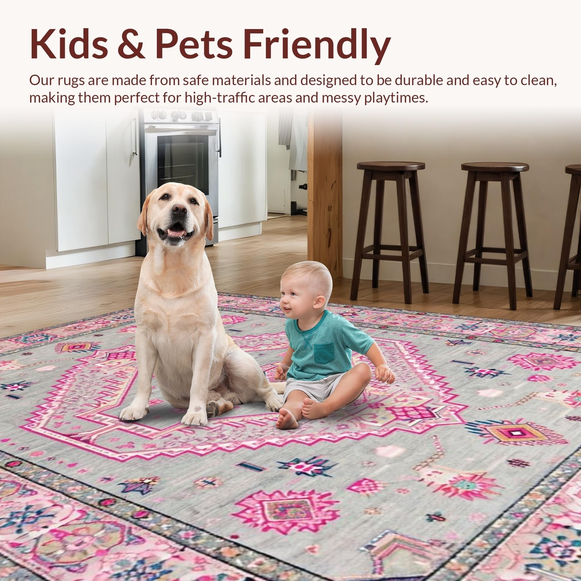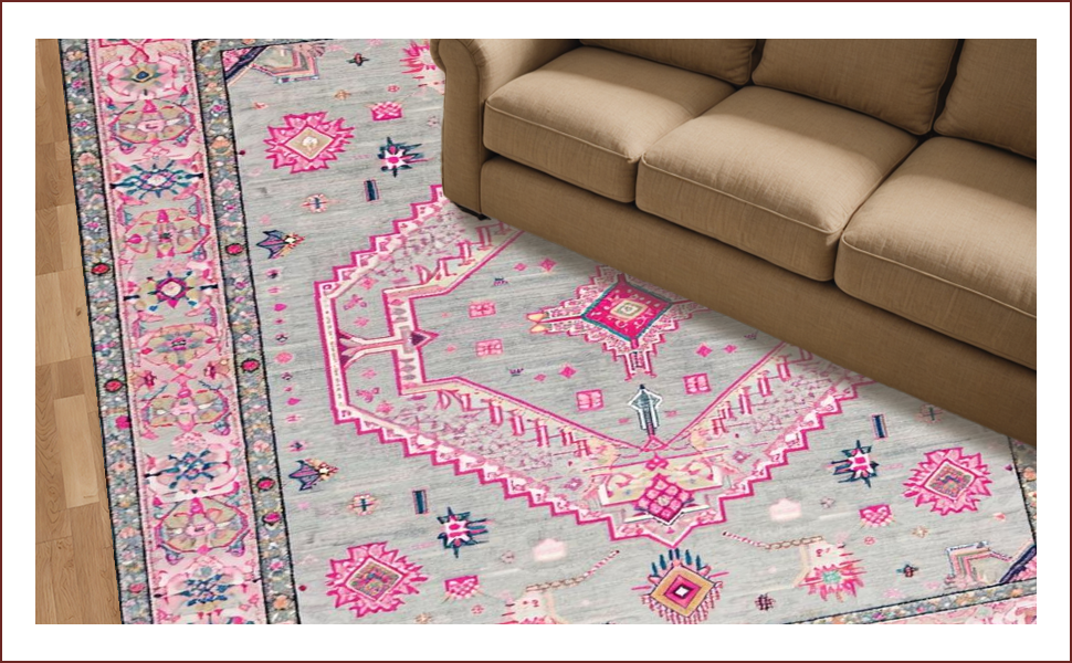 Ultra Soft Area Rug, Non Slip, Stain Resistant, Washable Area Rugs for Living Room, Bedroom, Rustic Light Grey Pink Palette(Gray) Overview: